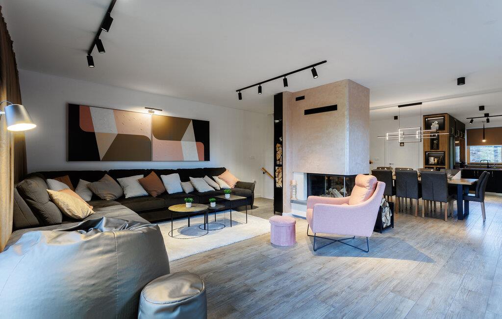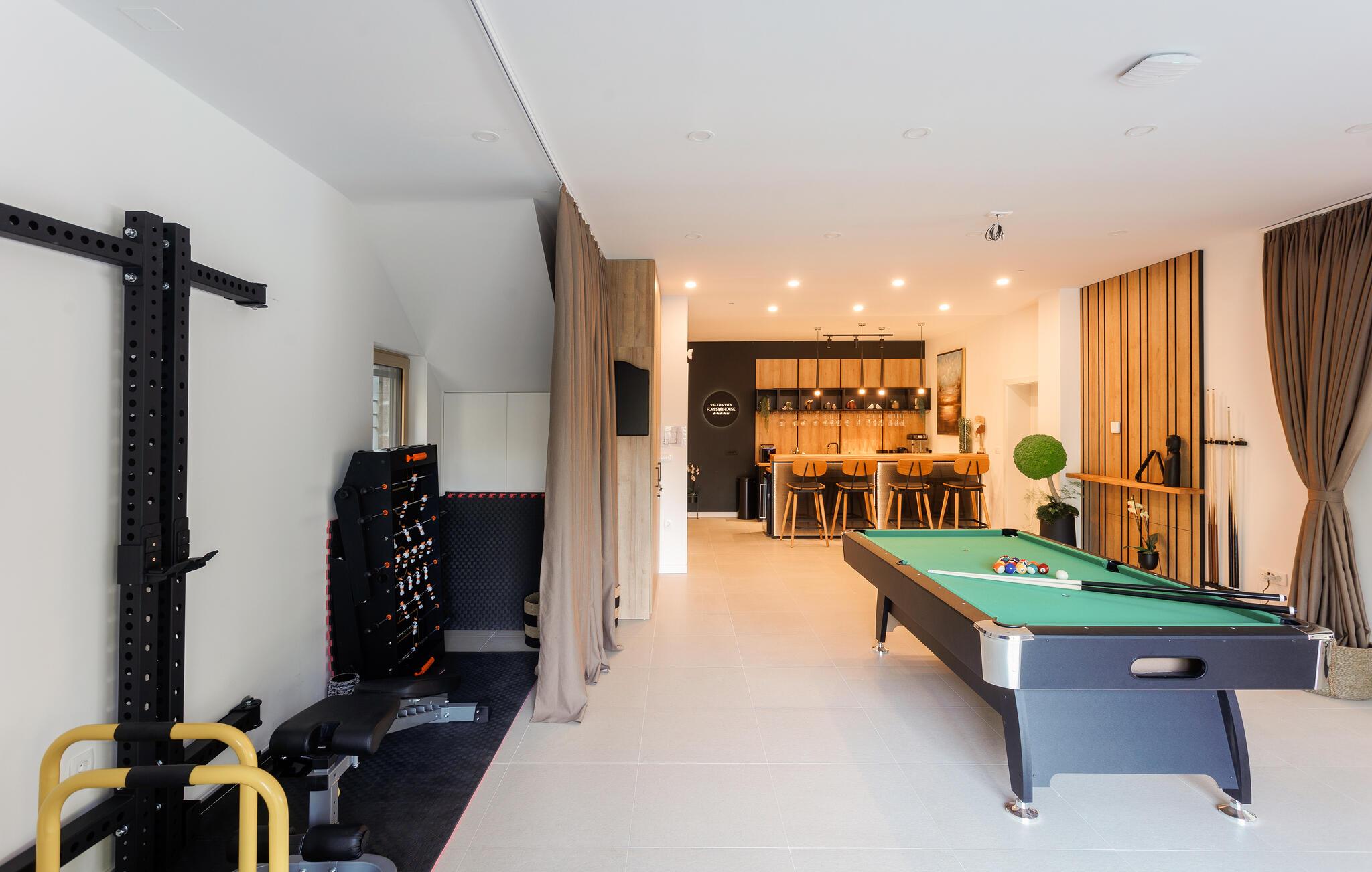 Dette sensationelle feriehus lader intet tilbage at ønske. I en rolig, idyllisk beliggenhed kan I nyde harmoniske måltider og hyggelige timer. Forkæl jer selv med afslappende øjeblikke i saunaen eller spabadet, hold jer i form på motionscyklen eller spil et spil billard eller bordfodbold. Snak over en cocktail i baren på stedet eller stream jeres yndlingsserie.