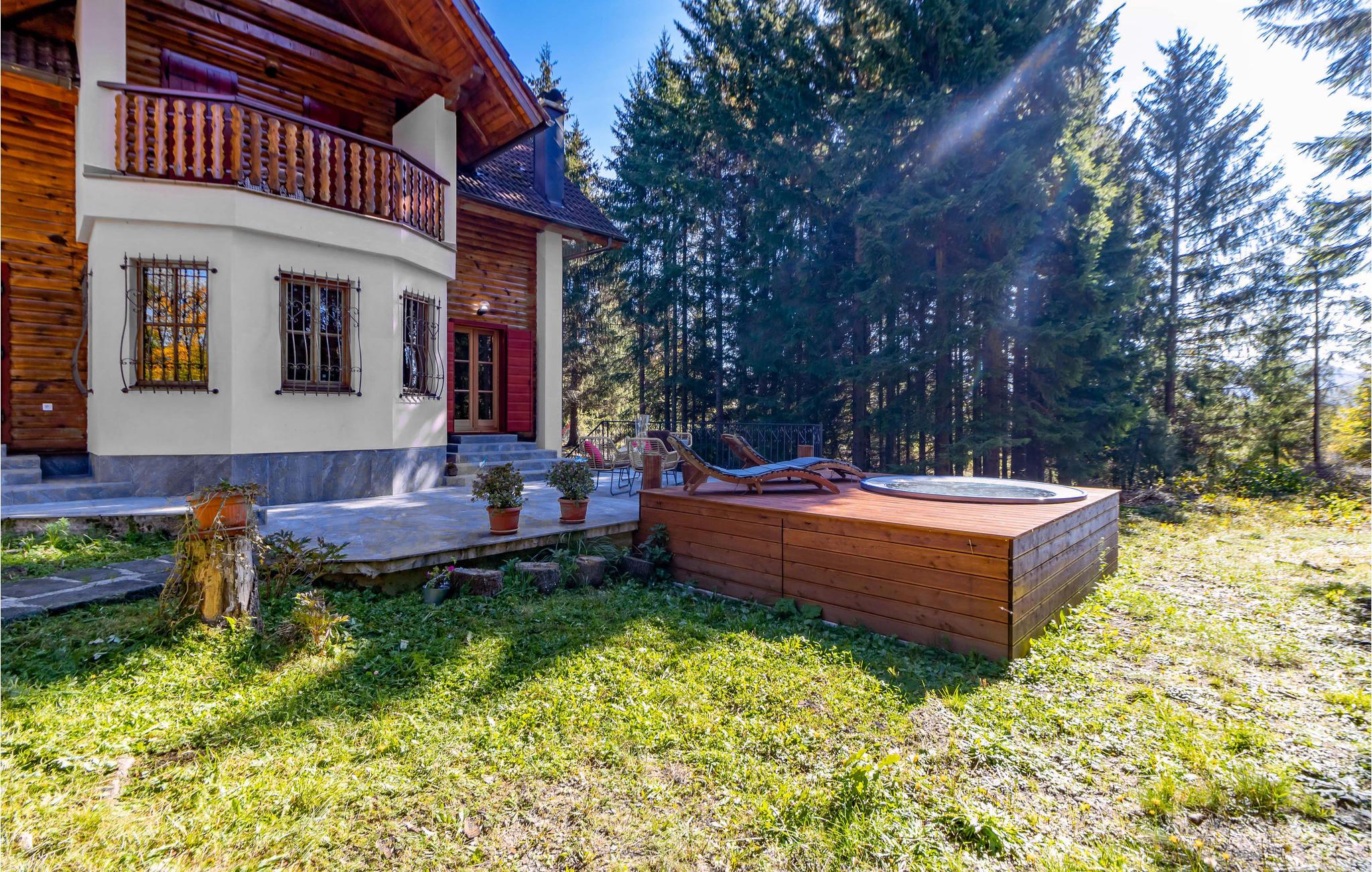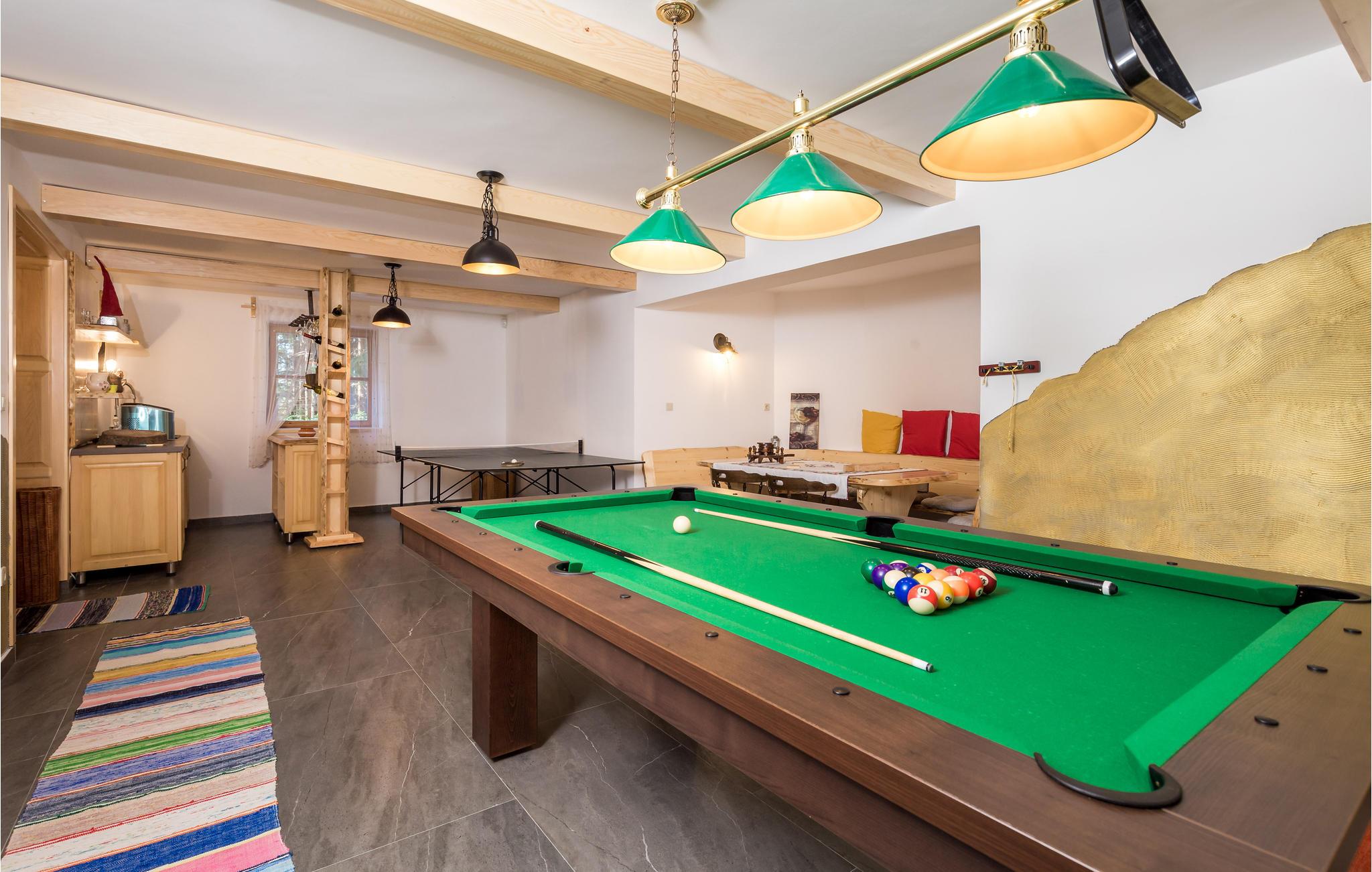 Tag familie eller venner med til dette fantastiske træhus og glæd jer til at tilbringe en behagelig tid i fred og ro. Oplev en all-round luksuriøs ferie med mange forskellige faciliteter. Indenfor finder I gulvvarme og brændeovn, som giver hyggelig varme i de koldere årstider. Alt efter vejret kan I bruge enten den udendørs eller indendørs jacuzzi til at forkæle jer selv med en rigtig spa-oplevelse. En sauna er også tilgængelig. Trænger I til noget mere aktivt, så brug billard- eller bordtennisbordet til en kamp. I havepavillonen finder I en grill til storslåede grillaftener.