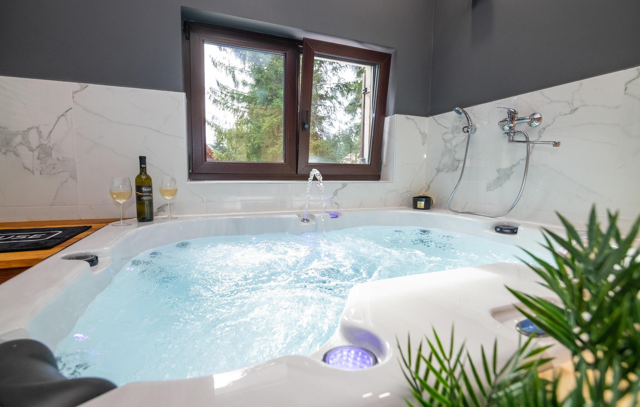 Nyd en vidunderlig ferie i dette idyllisk beliggende feriehus med pool og spabad.