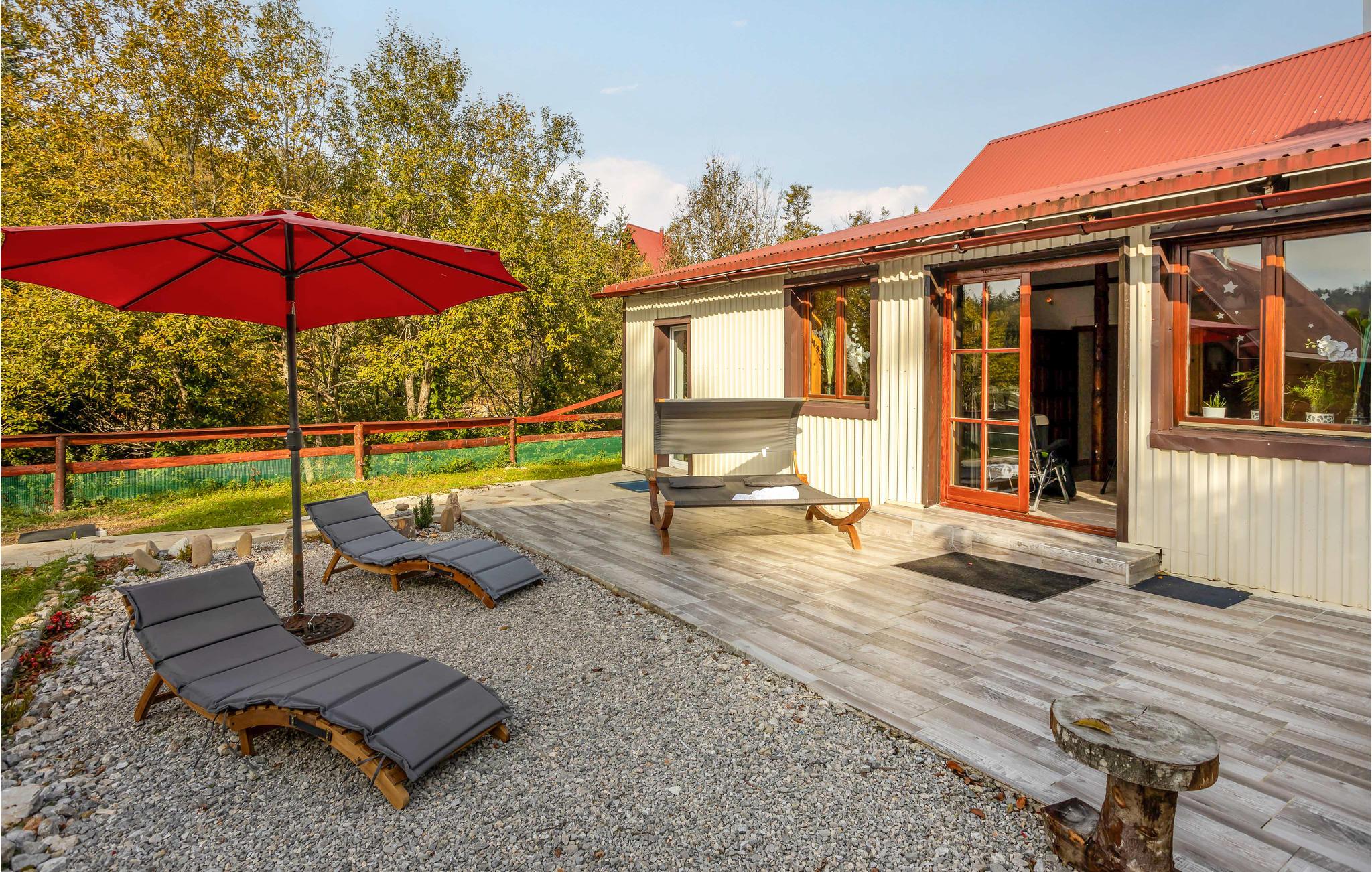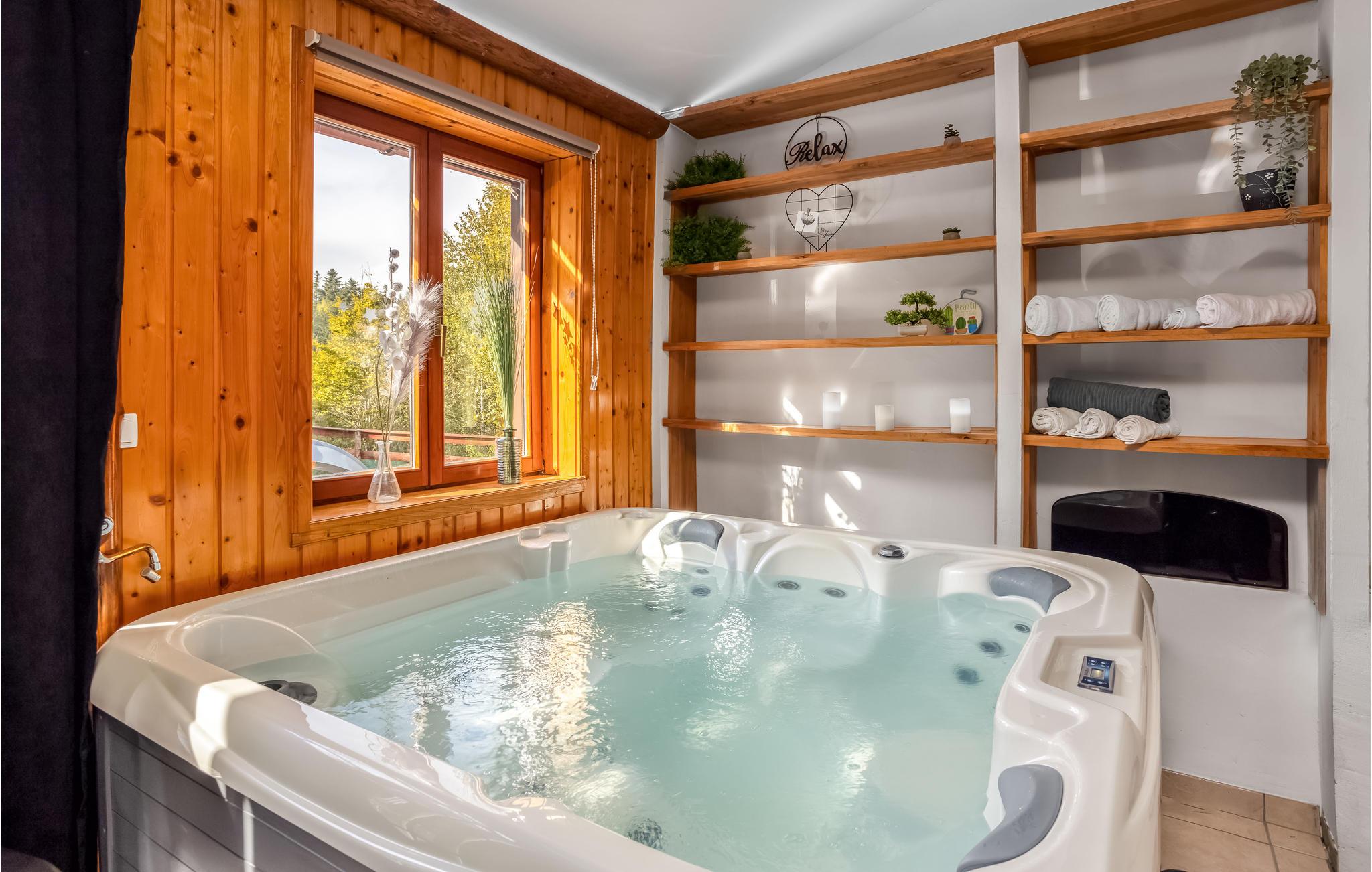 Det idylliske og rolige hus har en vidunderlig beliggenhed for at nyde en dejlig ferie tæt på naturen. Her kan I virkelig slappe af og nyde freden og den smukke udsigt over bjergene. Efter jeres udflugter kan I slappe af i spabadet og saunaen og tilbringe dejlige timer sammen i en rustik atmosfære.
