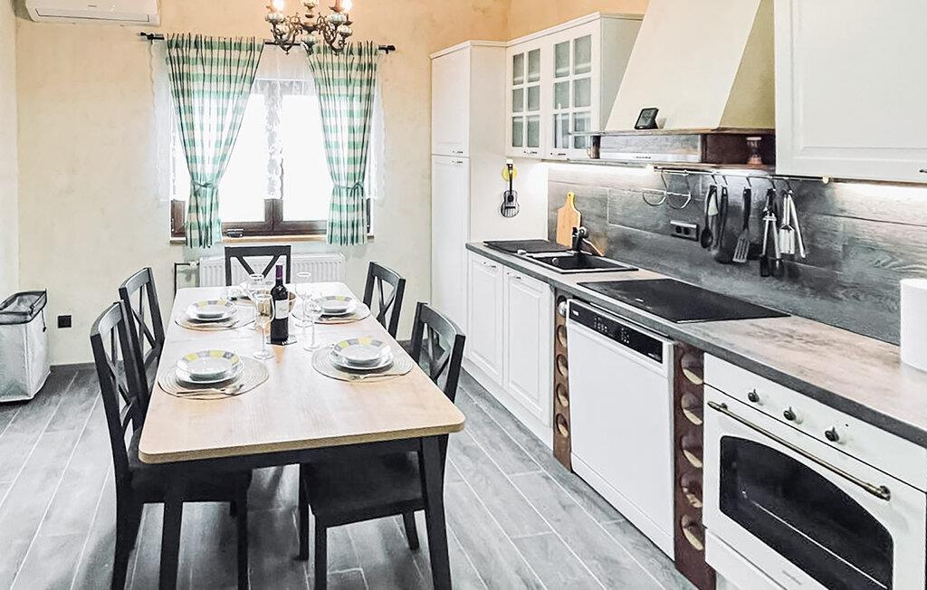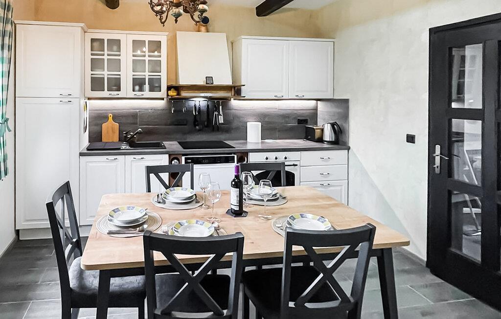 Tilbring en uforglemmelig ferie i dette indbydende hus sammen med jeres kære. De lyse og hyggeligt indrettede rum skaber de perfekte rammer for en dejlig tid sammen. Se frem til hyggelige aftener under de smukke trælofter, hvor hele familien kan samles omkring brændeovnen, som skaber en behagelig atmosfære.