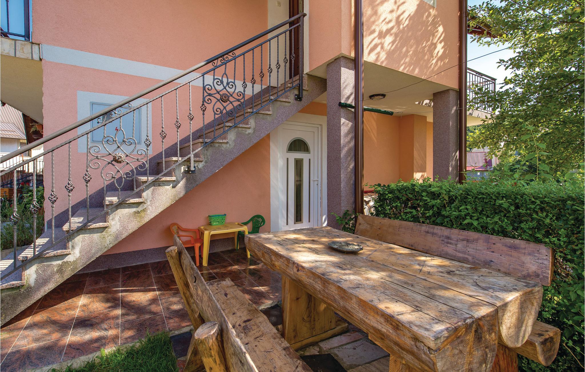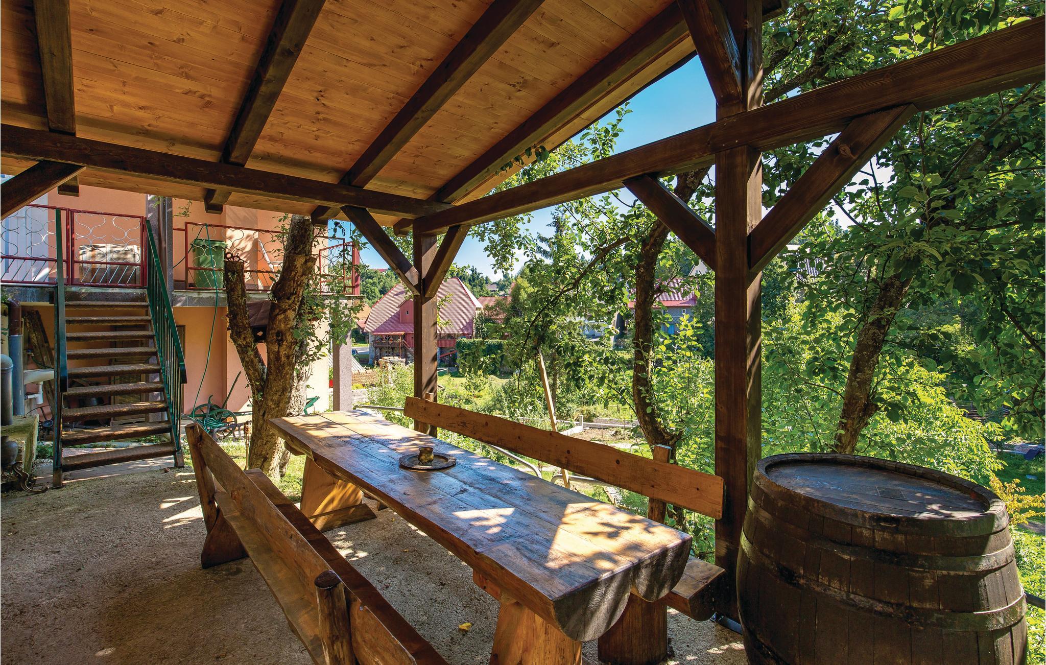 Dette dejlige feriehus ligger i Fužine, ikke langt fra en sø, men alligevel tæt på bymidten. Der er en halv time i bil til de nærmeste sandstrande ved havet, men som populært feriemål har Fužine flere aktiviteter for den aktive feriegæst. Landskabet har mange markerede vandre- og cykelstier, hvoraf stien rundt omkring Bajer søen hører til de mest benyttede på grund af udsigten. Fužine er kendt for sine gode spisesteder, hvor man kan nyde de lokale specialiteter. Husets ejer bor også på grunden.