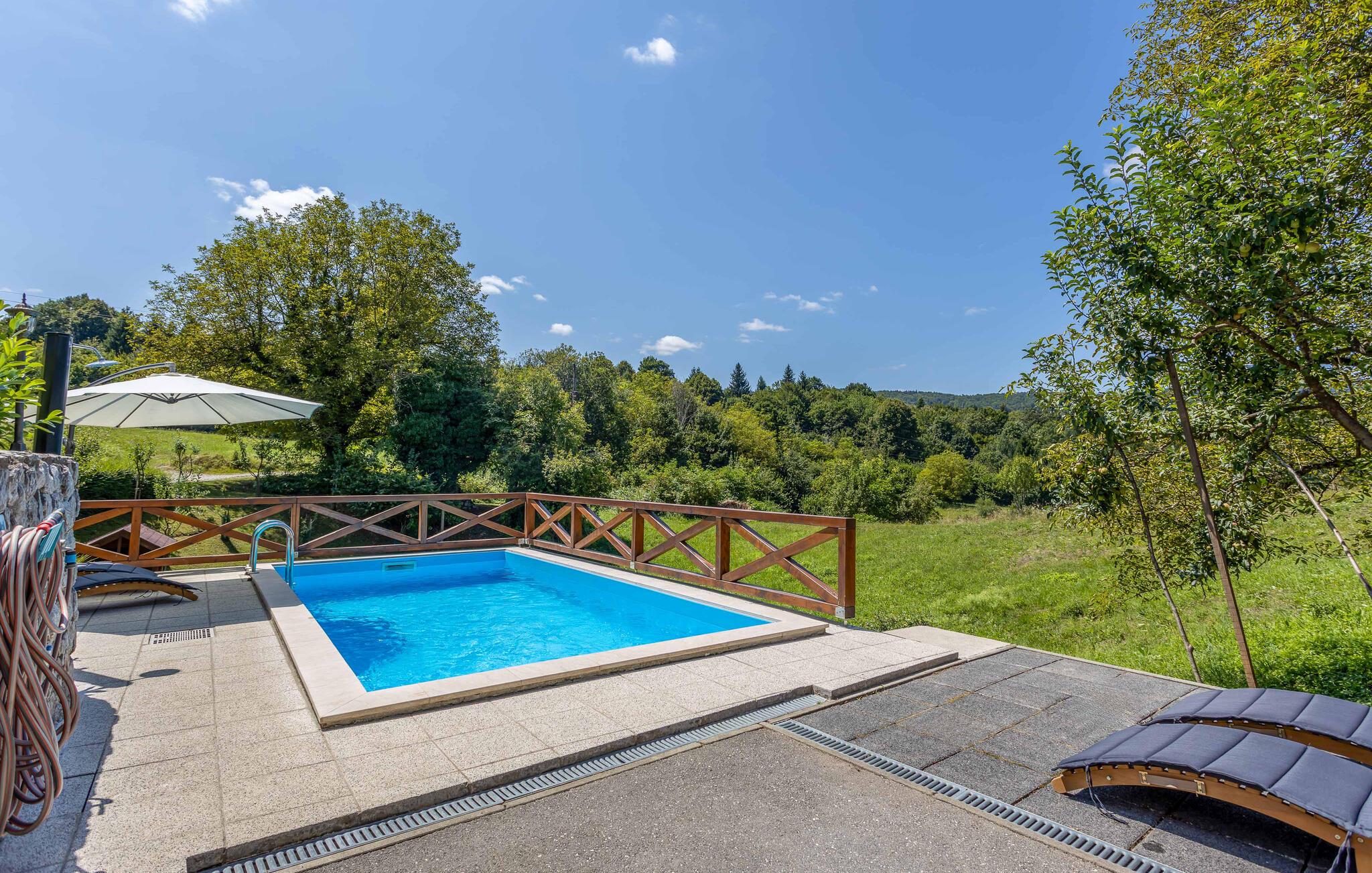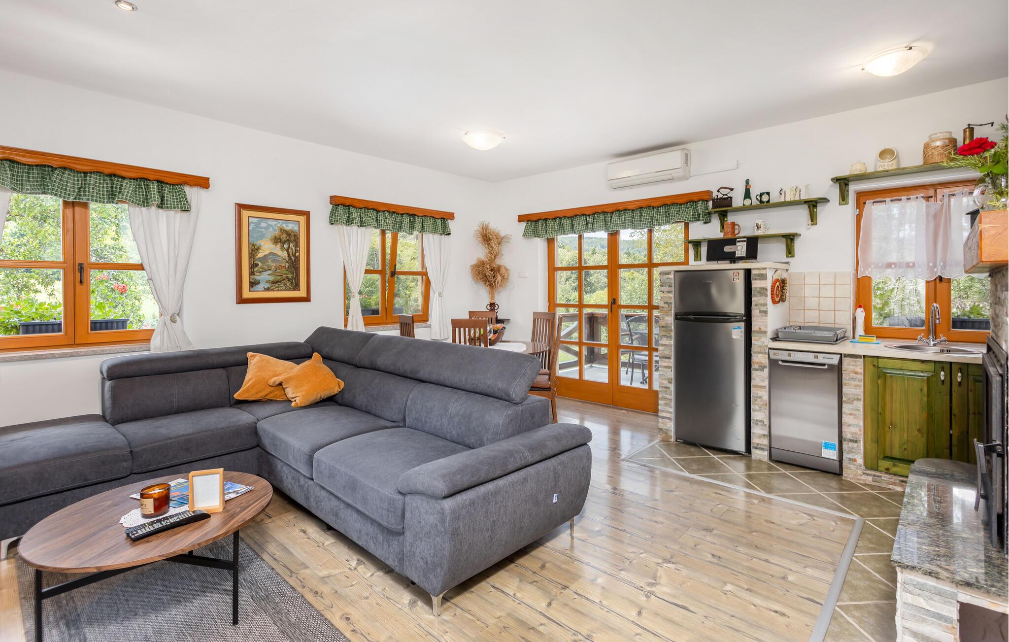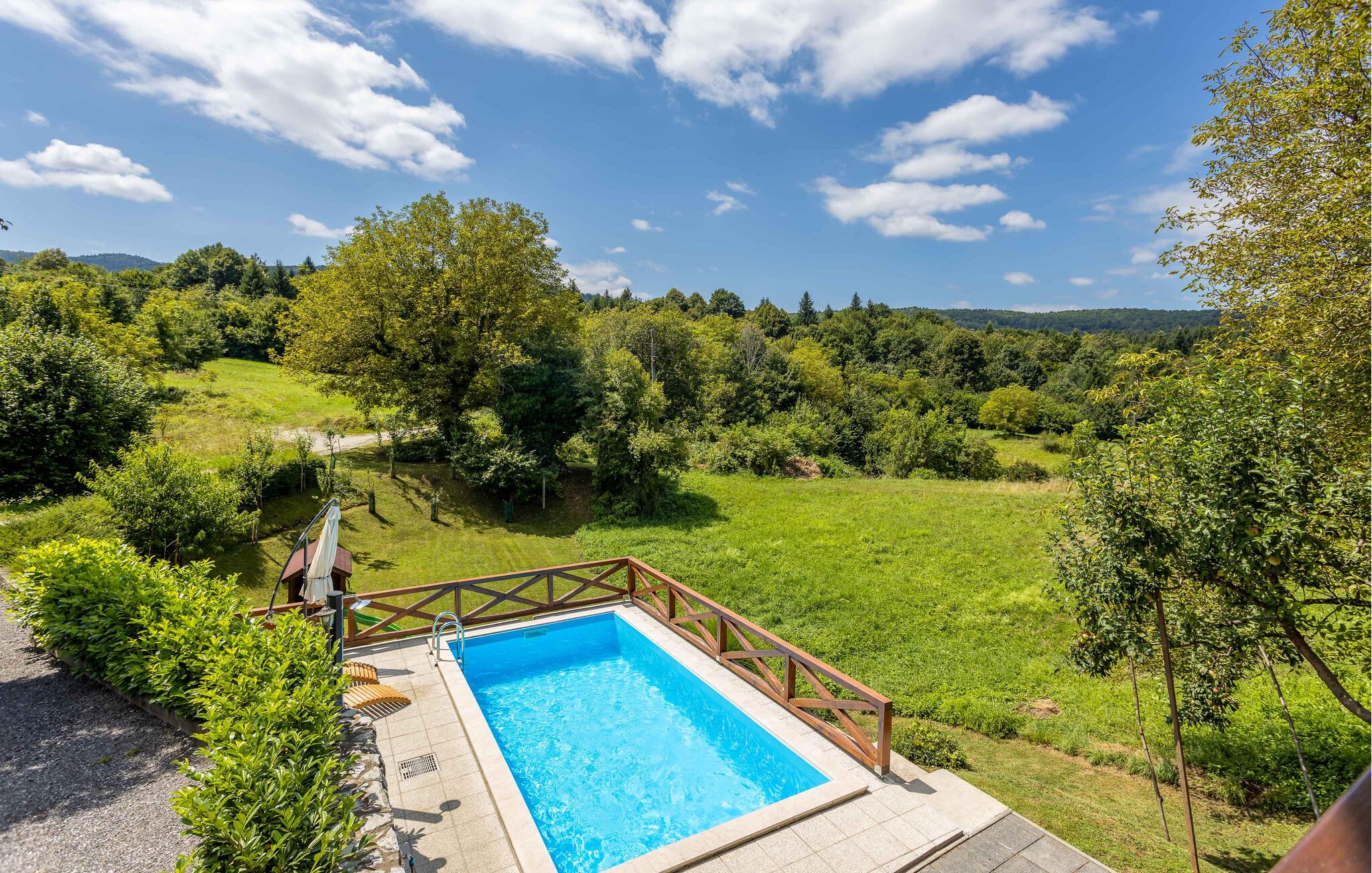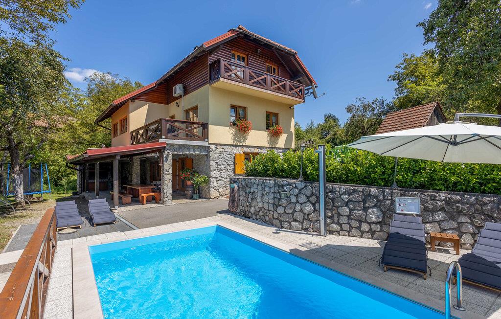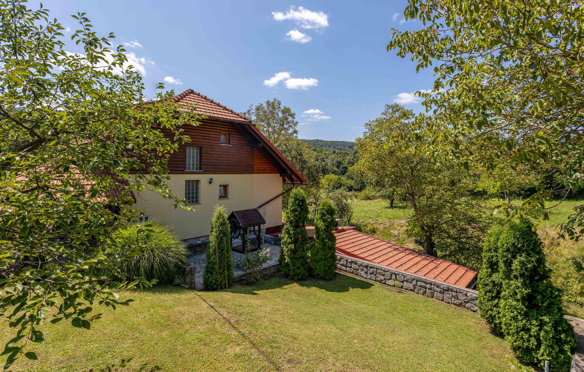 Dette charmerende feriehus, der er ideelt til naturelskere, ligger i hjertet af Gorski Kotar, i landsbyen Lukovdol. Den komfortable feriebolig strækker sig over stueetagen og førsrte sal, der er forbundet med indertrapper. Den rummelige dagligstue med pejs, køkkenet og et badeværelse ligger i stuen, mens der er yderligere tre soveværelser samt et badeværelse på første sal. Min. loftshøjde ca. 1,50 m. Dertil er der endnu en separat stue med pejs og egen indgang i stueetagen. I kan tilberede jeres yndlingsretter på grillen. Forfrisk jer i sommervarmen i den udendørs pool eller kør til floden Kupa i nærheden, hvor I kan leje kajakker. På ca. en times kørsel kommer I til kystbyerne Crikvenica og Opatija.