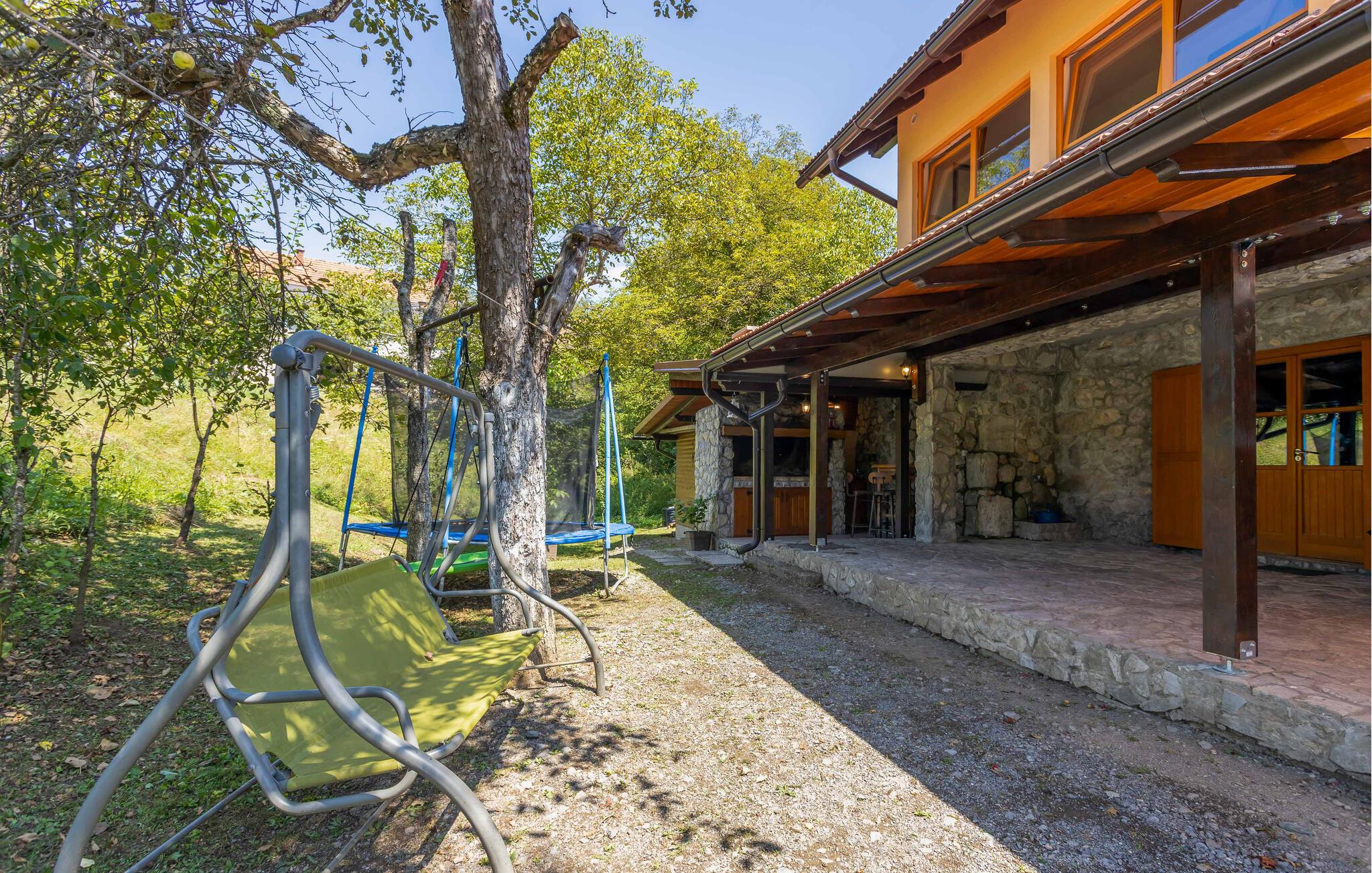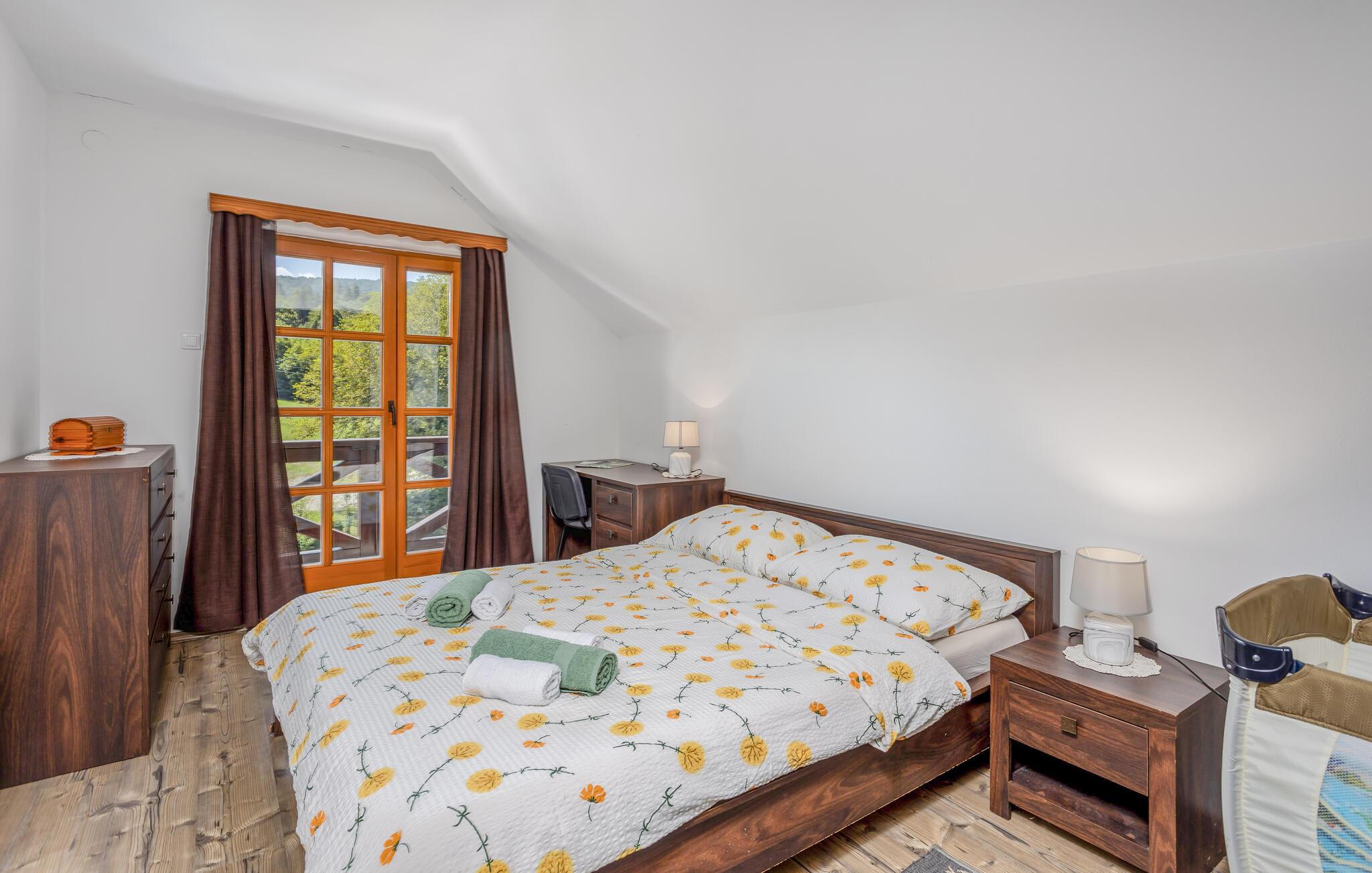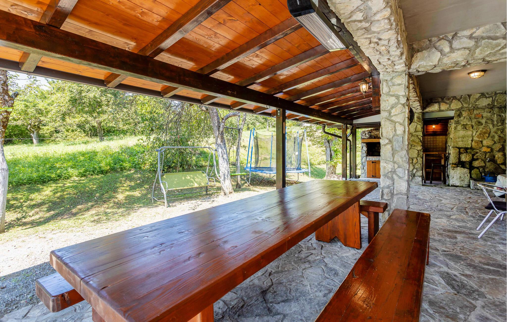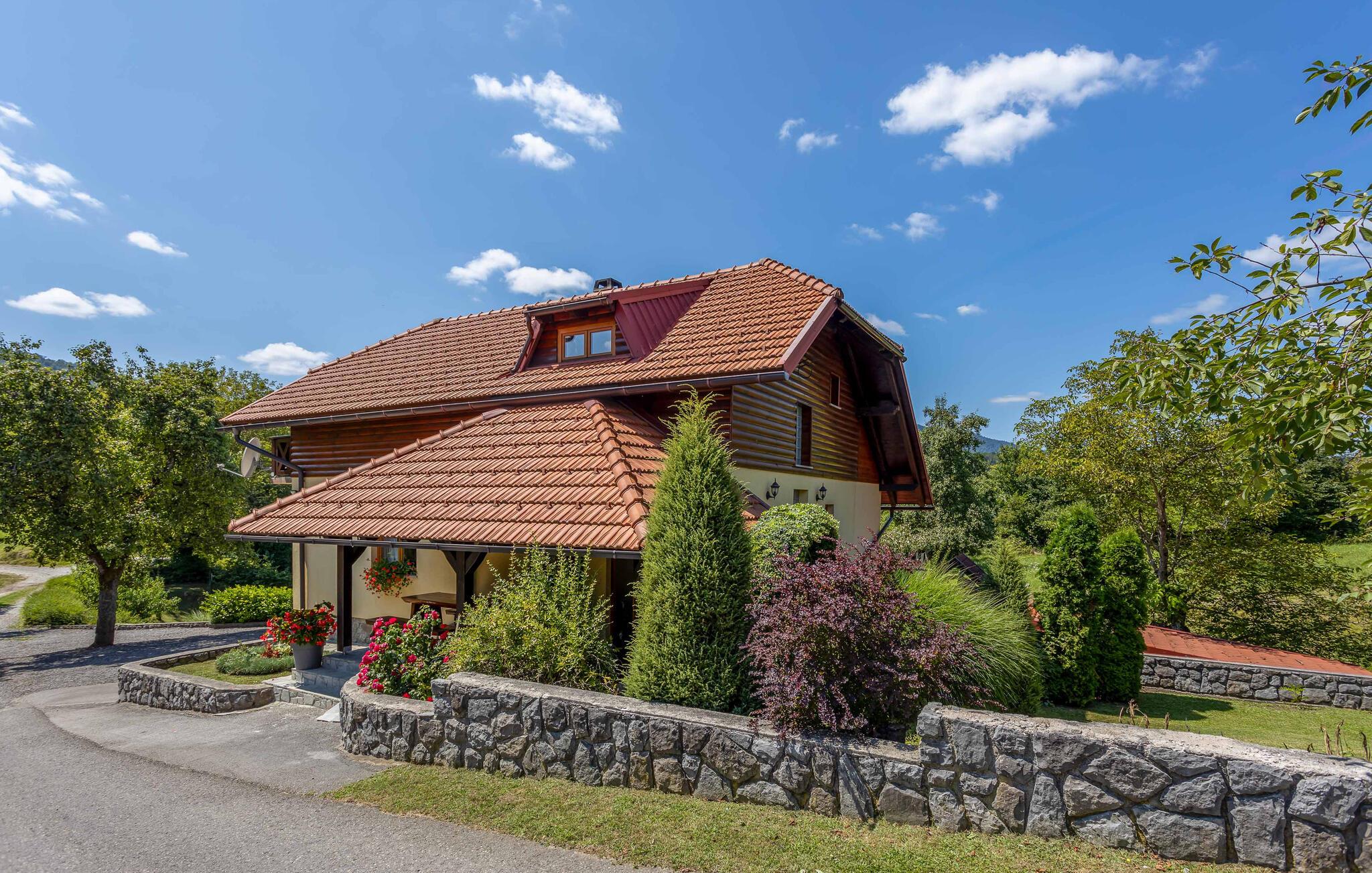 Dette charmerende feriehus, der er ideelt til naturelskere, ligger i hjertet af Gorski Kotar, i landsbyen Lukovdol. Den komfortable feriebolig strækker sig over stueetagen og førsrte sal, der er forbundet med indertrapper. Den rummelige dagligstue med pejs, køkkenet og et badeværelse ligger i stuen, mens der er yderligere tre soveværelser samt et badeværelse på første sal. Min. loftshøjde ca. 1,50 m. Dertil er der endnu en separat stue med pejs og egen indgang i stueetagen. I kan tilberede jeres yndlingsretter på grillen. Forfrisk jer i sommervarmen i den udendørs pool eller kør til floden Kupa i nærheden, hvor I kan leje kajakker. På ca. en times kørsel kommer I til kystbyerne Crikvenica og Opatija.