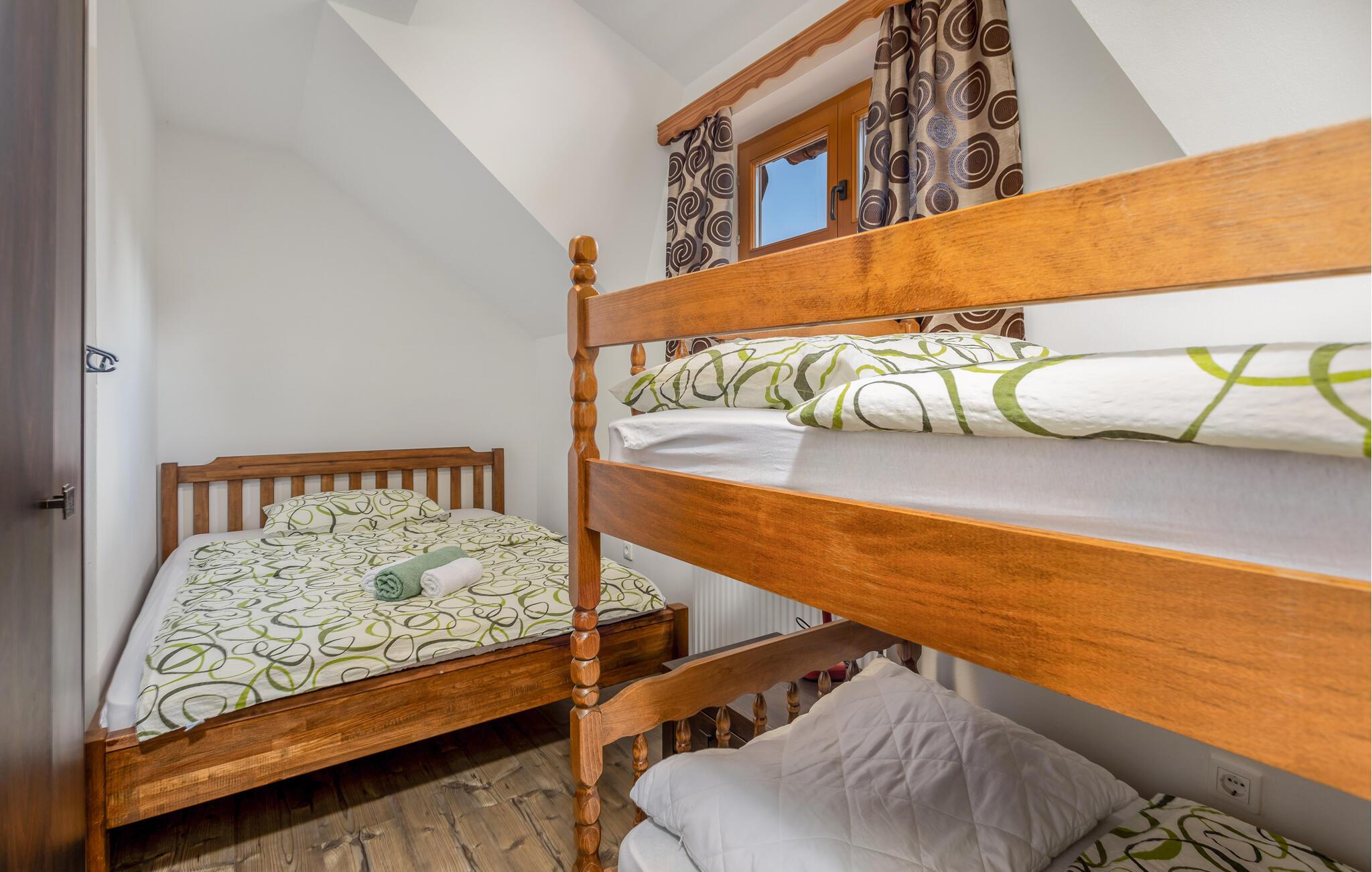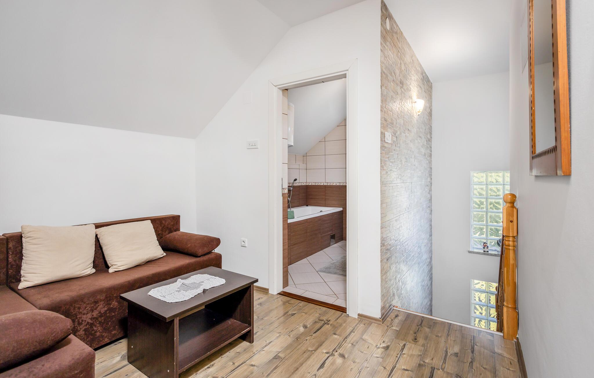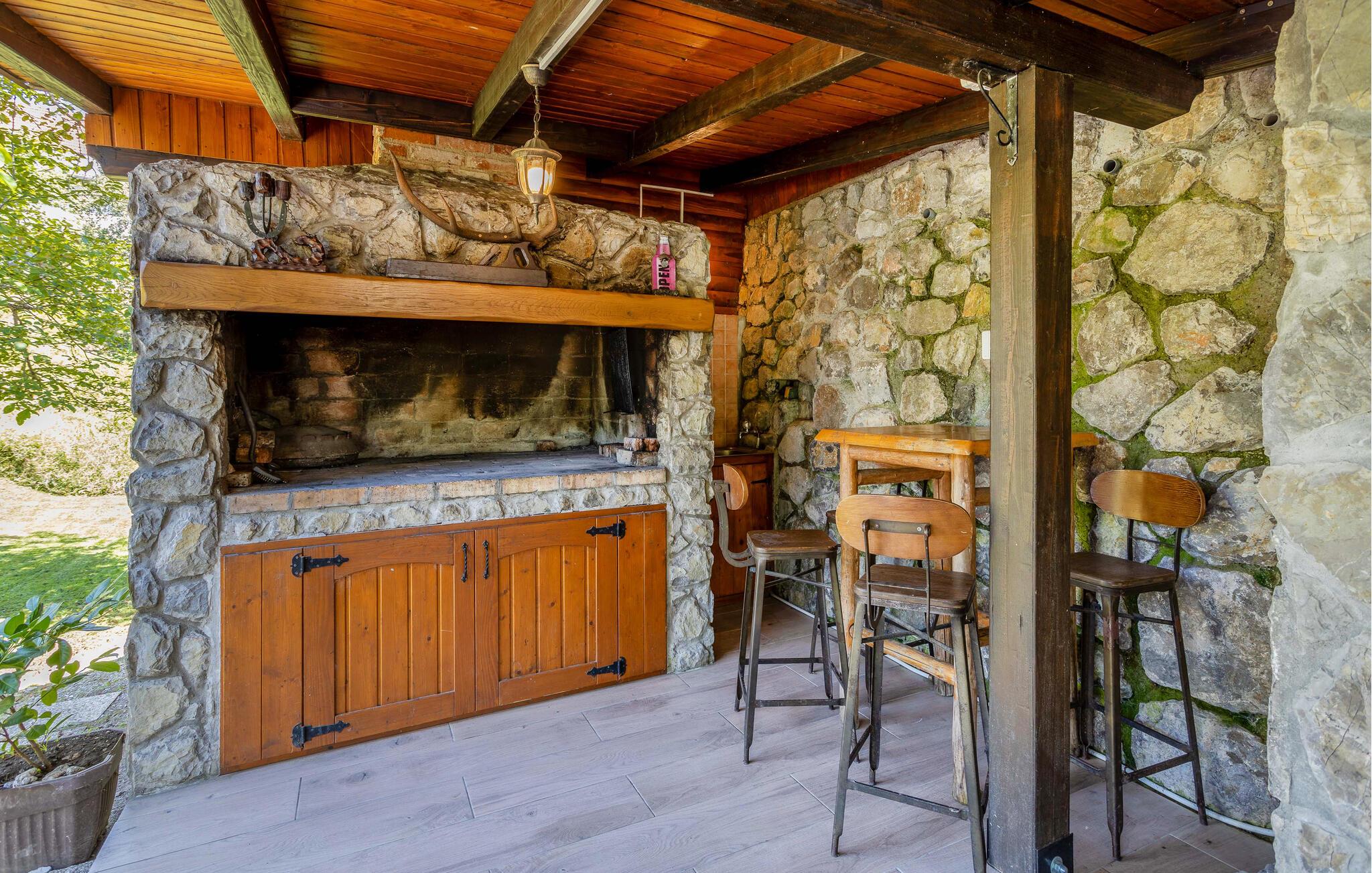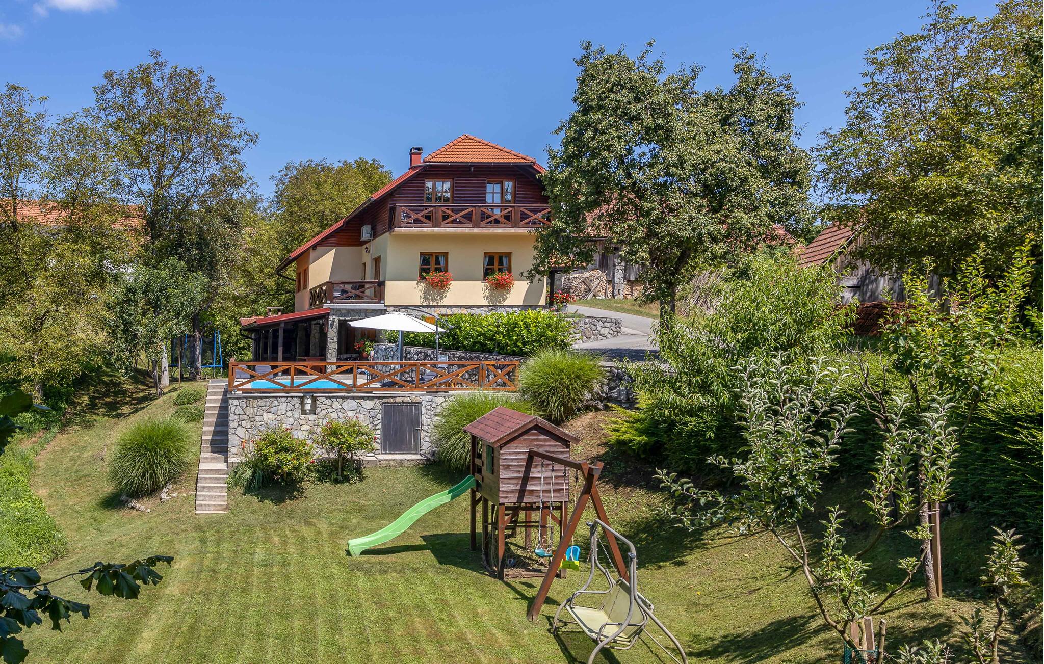 Dette charmerende feriehus, der er ideelt til naturelskere, ligger i hjertet af Gorski Kotar, i landsbyen Lukovdol. Den komfortable feriebolig strækker sig over stueetagen og førsrte sal, der er forbundet med indertrapper. Den rummelige dagligstue med pejs, køkkenet og et badeværelse ligger i stuen, mens der er yderligere tre soveværelser samt et badeværelse på første sal. Min. loftshøjde ca. 1,50 m. Dertil er der endnu en separat stue med pejs og egen indgang i stueetagen. I kan tilberede jeres yndlingsretter på grillen. Forfrisk jer i sommervarmen i den udendørs pool eller kør til floden Kupa i nærheden, hvor I kan leje kajakker. På ca. en times kørsel kommer I til kystbyerne Crikvenica og Opatija.