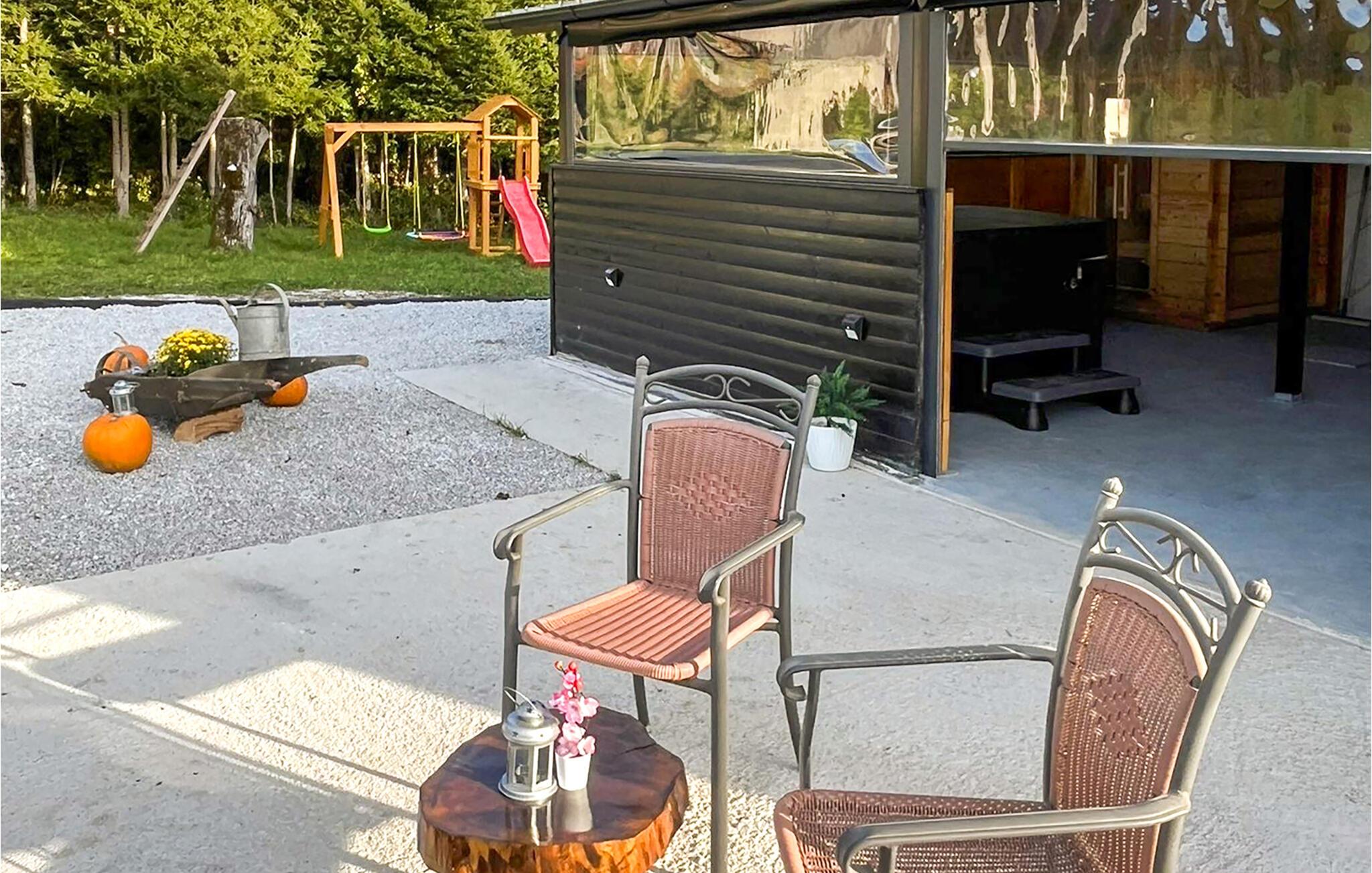 Dette komfortable og kærligt møblerede feriehus er ideelt til en afslappende ferie med venner eller familie. Glæd jer til hyggelige måltider omkring det rustikke træbord, planlæg spændende udflugter og læn jer tilbage i den infrarøde sauna eller spabadet. Saml jer til sjove spilleaftener eller stream en film i den indbydende stue.