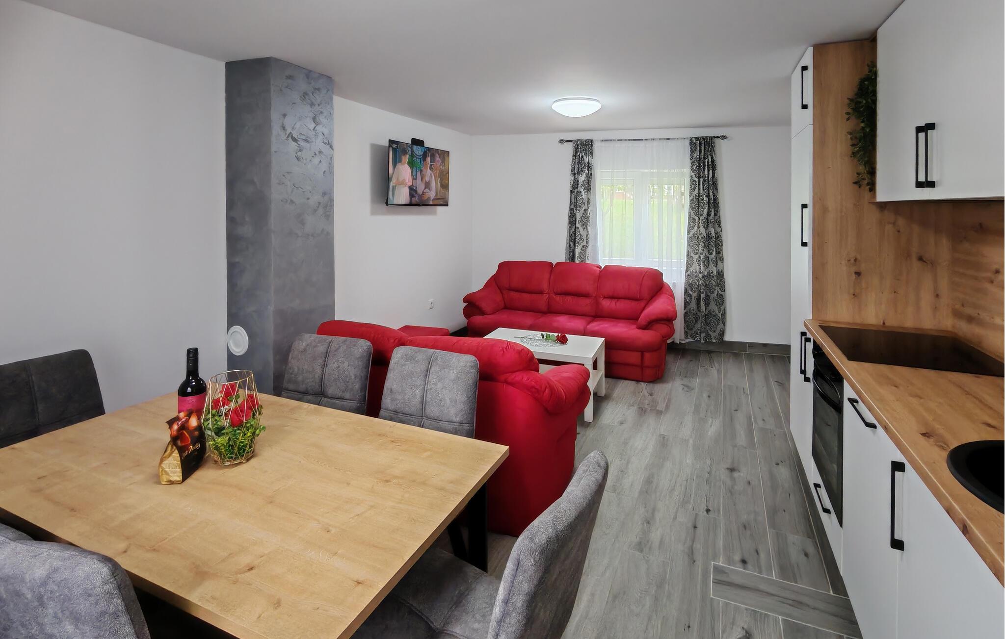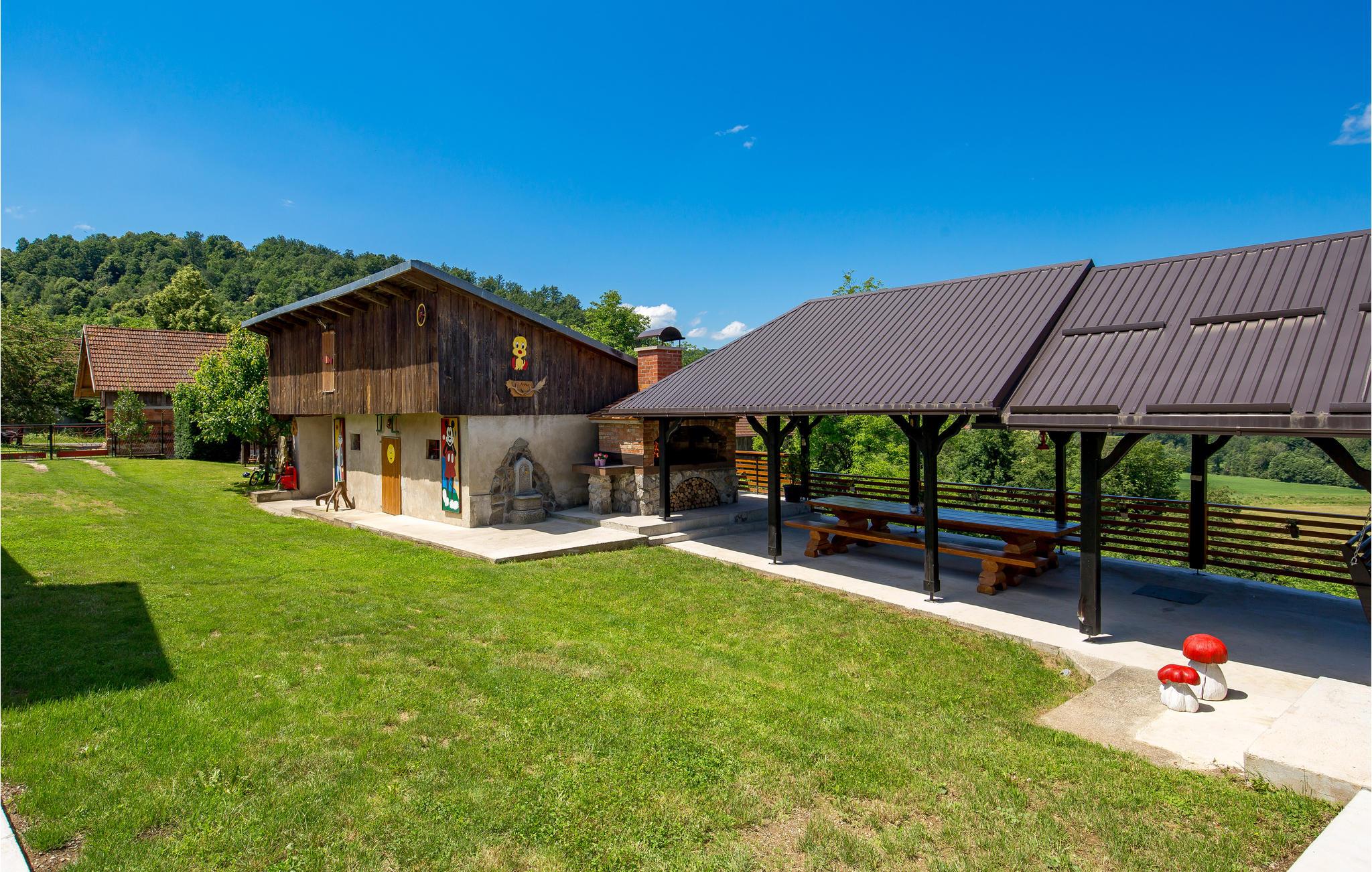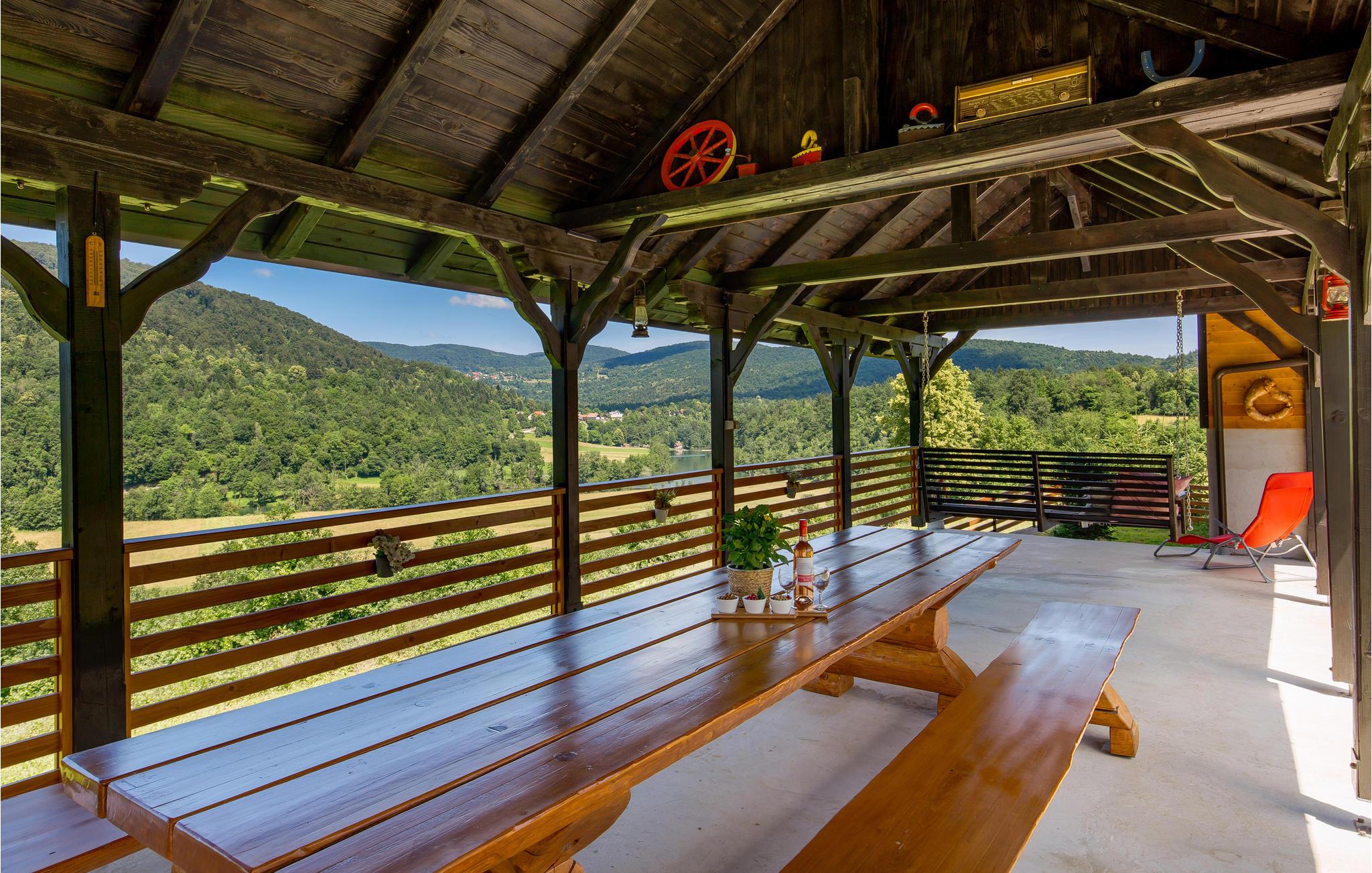 Hold en dejlig ferie i det behagelige klima i bjergene. Huset råder over tre soveværelser, et badeværelse og køkken med stue i kombination. Der er en separat afdeling med spa og sauna, hvor I kan slappe af og nyde udsigten til skoven og Kupa-floden. På græsplænen foran huset kan børnene lege frit. Her ligger der også en stor terrasse med grill, som inviterer til at læse en god bog og til at tilbringe dejlige aftener med lækker mad i hyggeligt selskab.