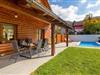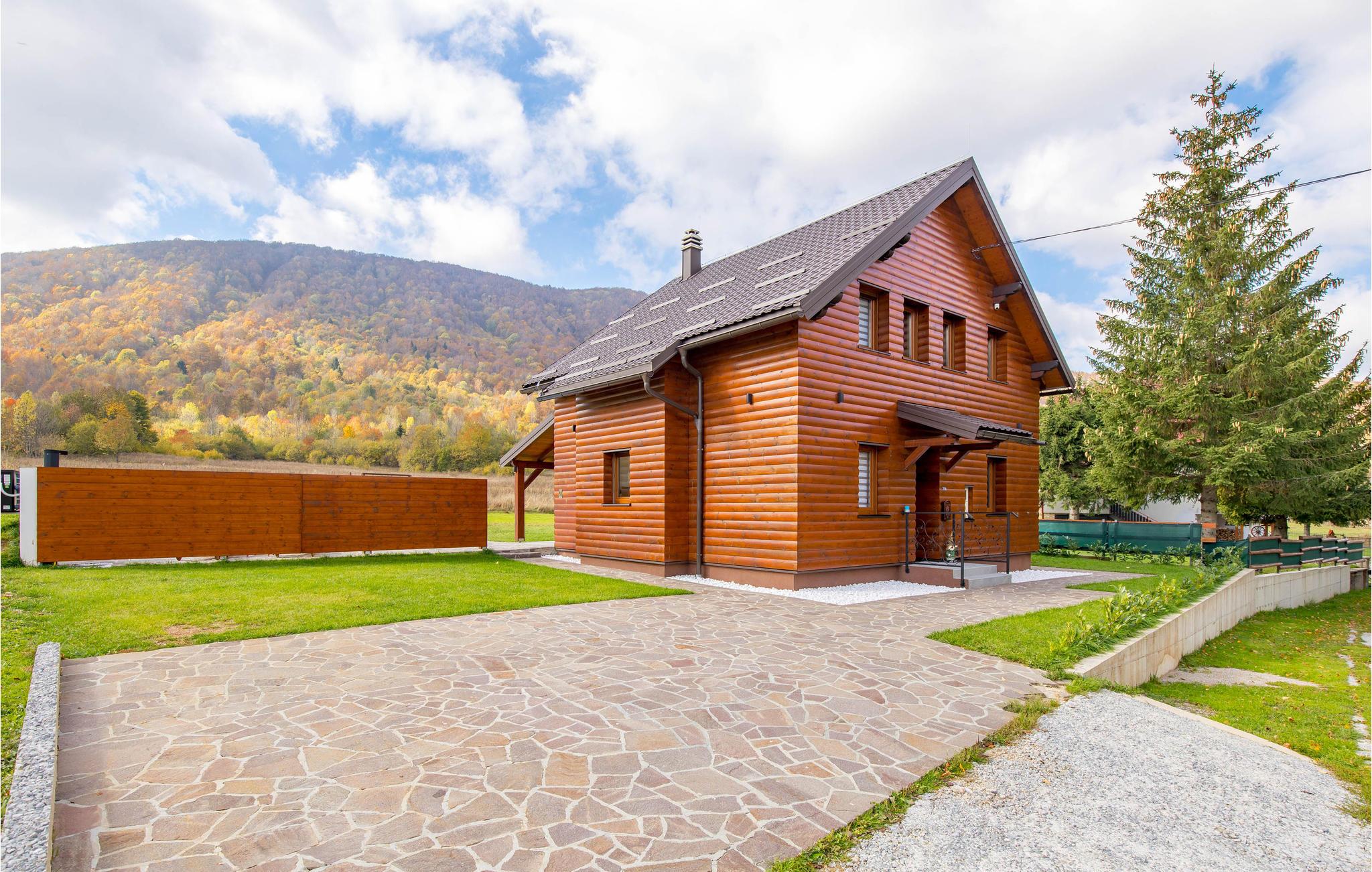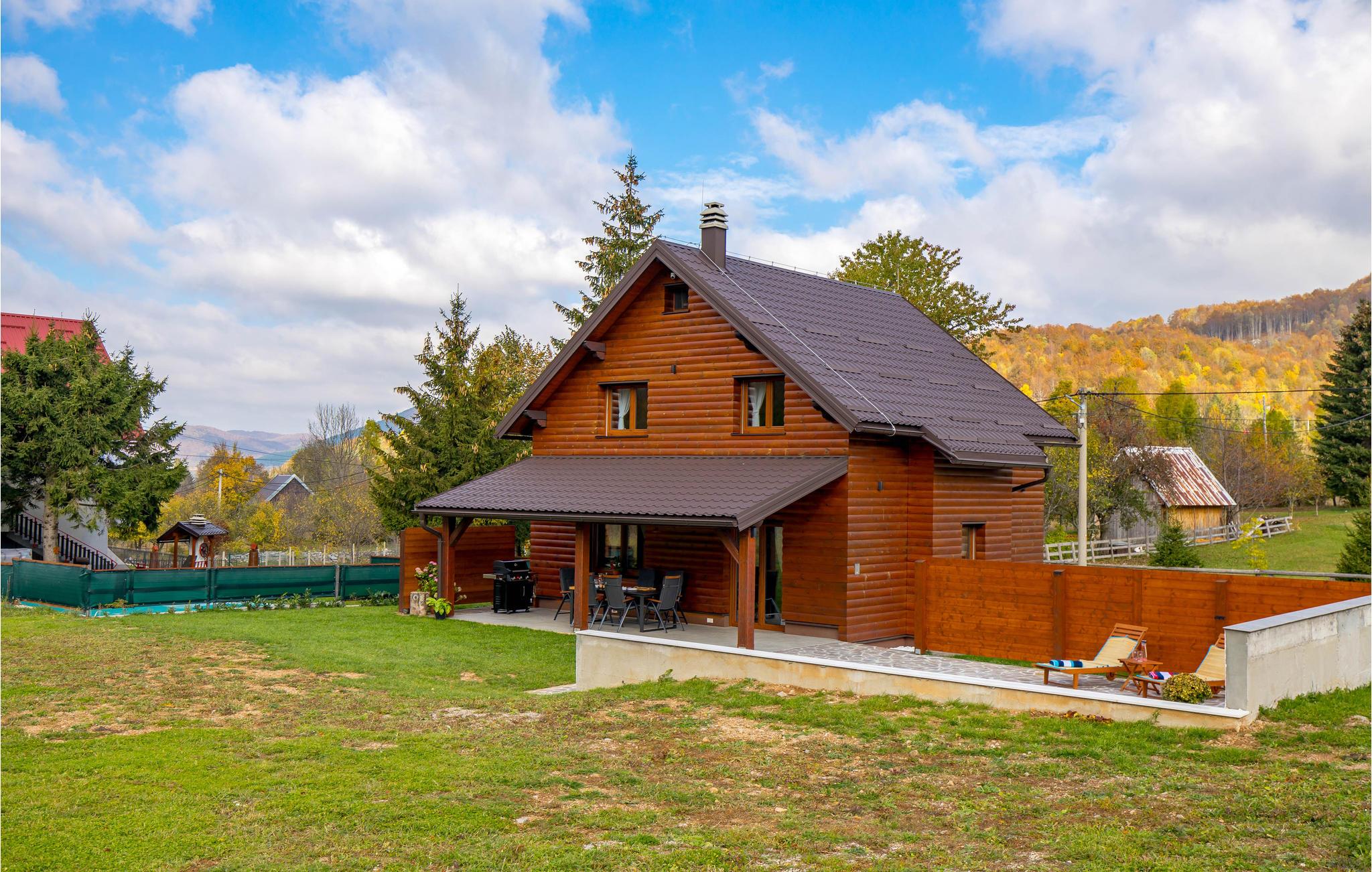 Velkommen til denne traditionelle bjælkehytte med moderne indretning.