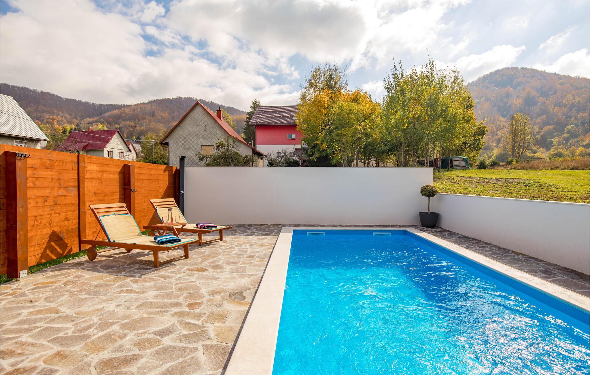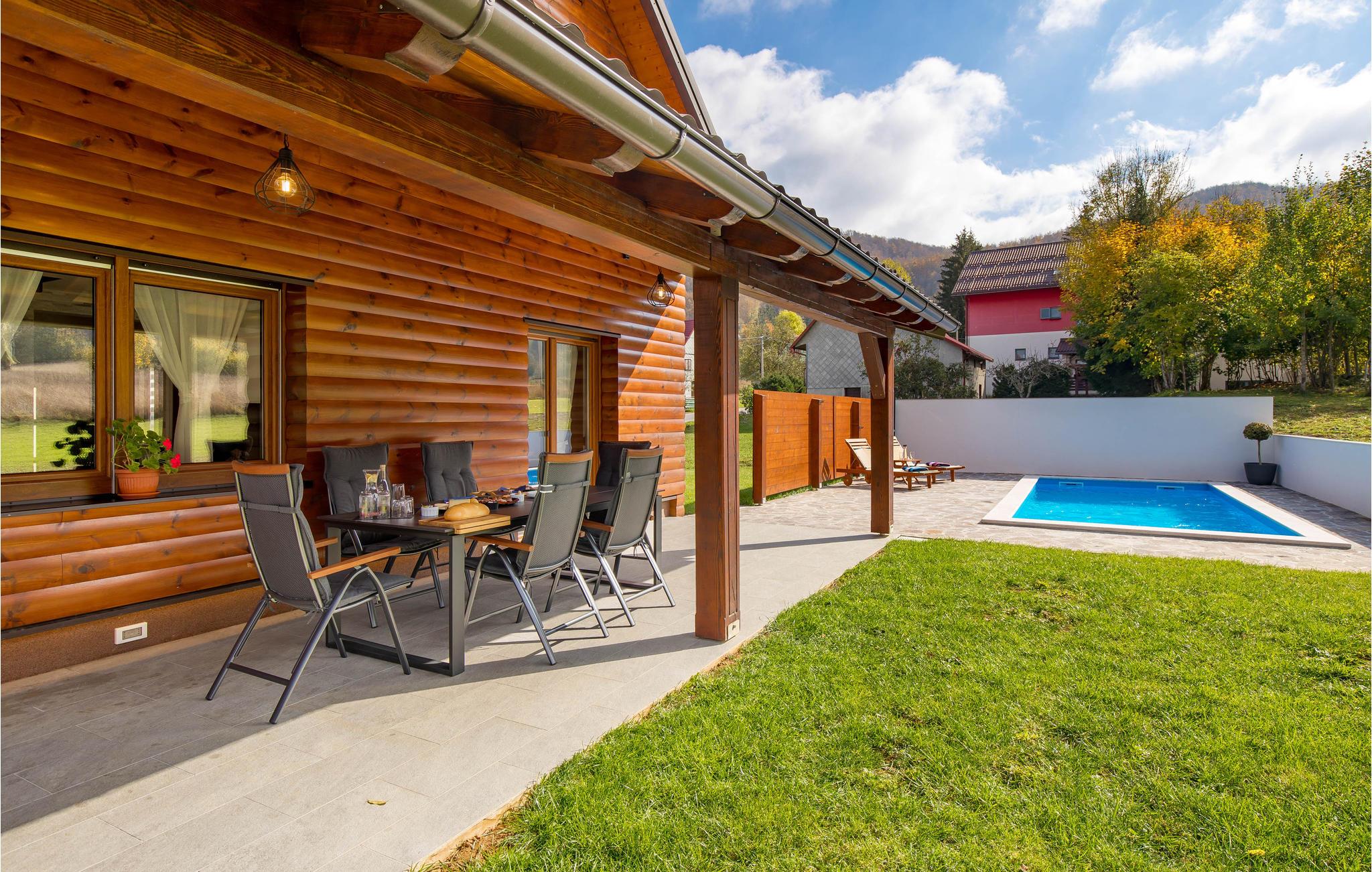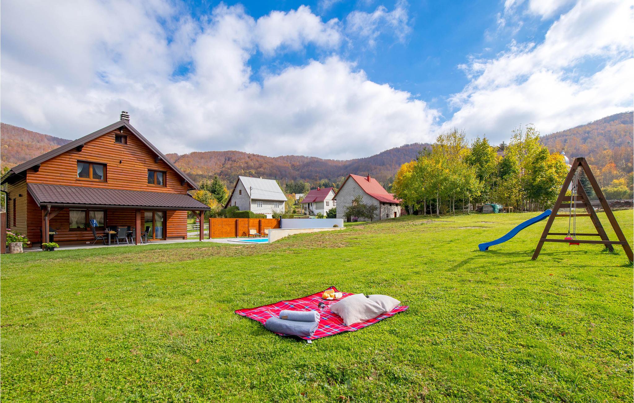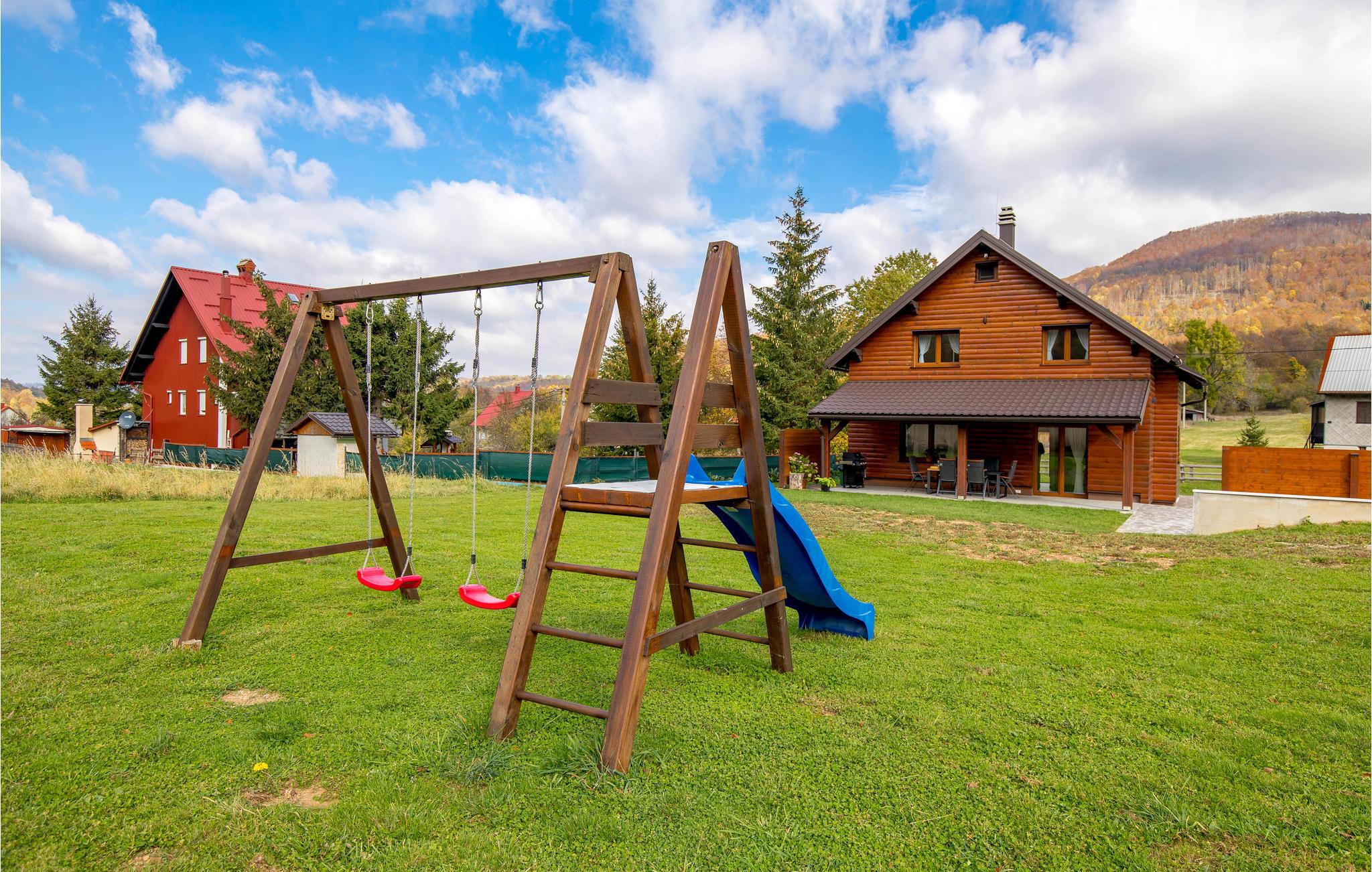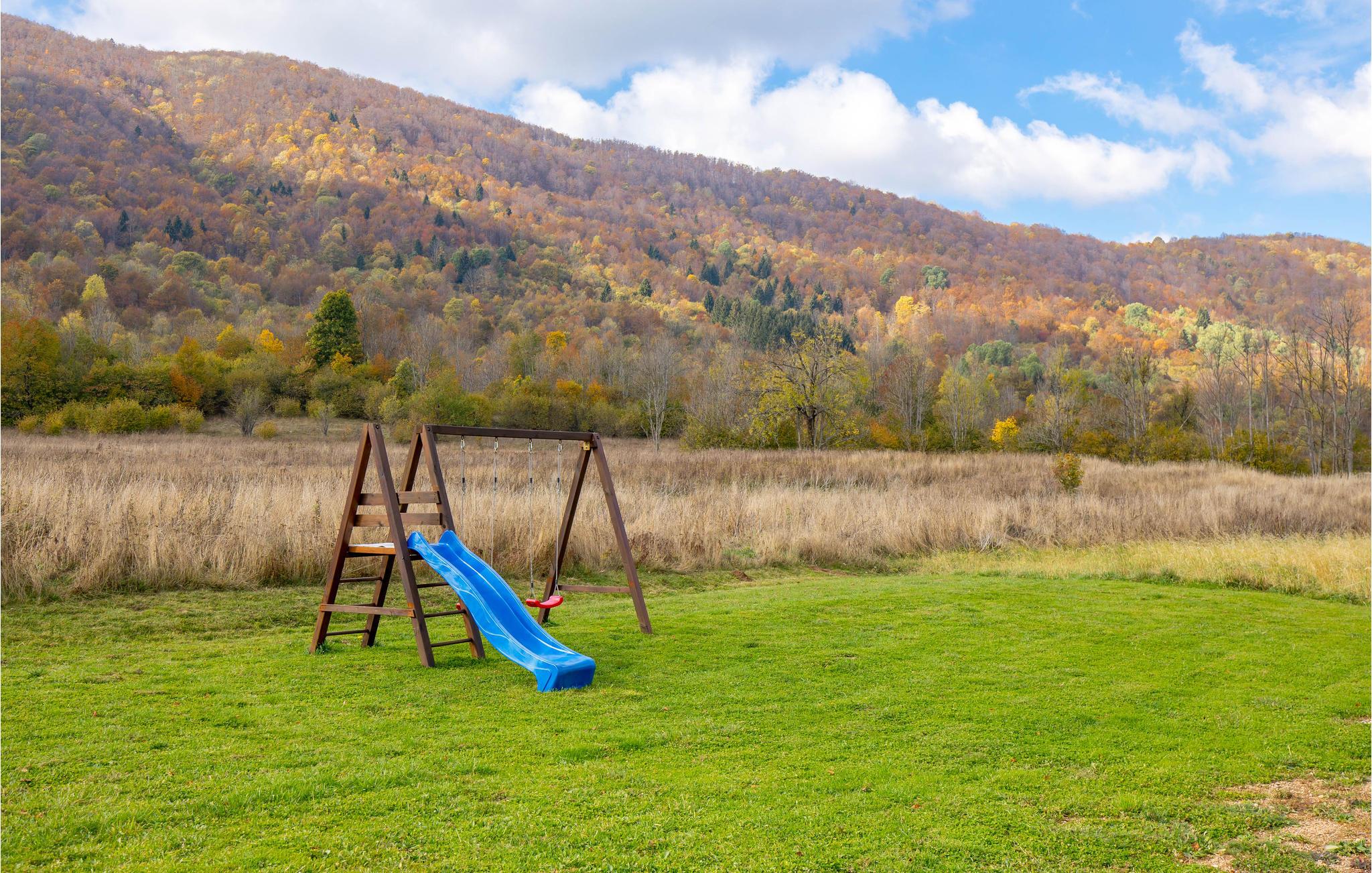 Fra huset træder I ud på en stor, skyggefuld terrasse, hvor I kan tilberede jeres yndlingsretter på grillen og nyde måltiderne sammen. Der er både pool og legestativer til børnene, så alle får det sjovt. Som prikken over i'et er der en fantastisk udsigt til de grønne bjerge længere ude.