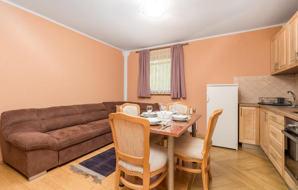 Denne velholdte ferielejlighed byder jer velkommen på en stor naturgrund, langt fra travlheden. Indenfor venter en behagelig atmosfære, hvor I kan lave mad, spise og slappe af med familien. Fremtryl lækre retter med lokale råvarer og afrund en begivenhedsrig dag med en hyggelig spilleaften.