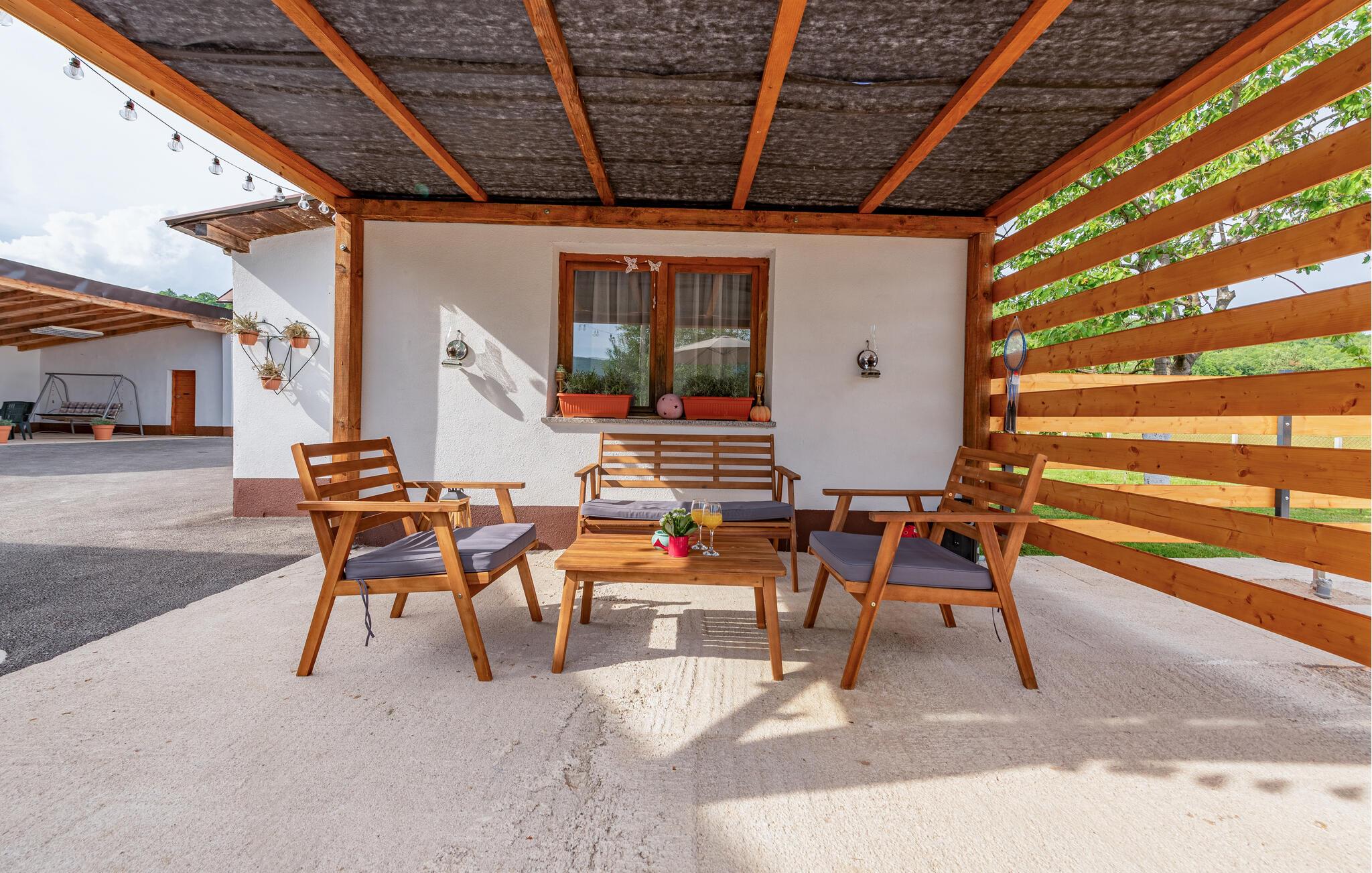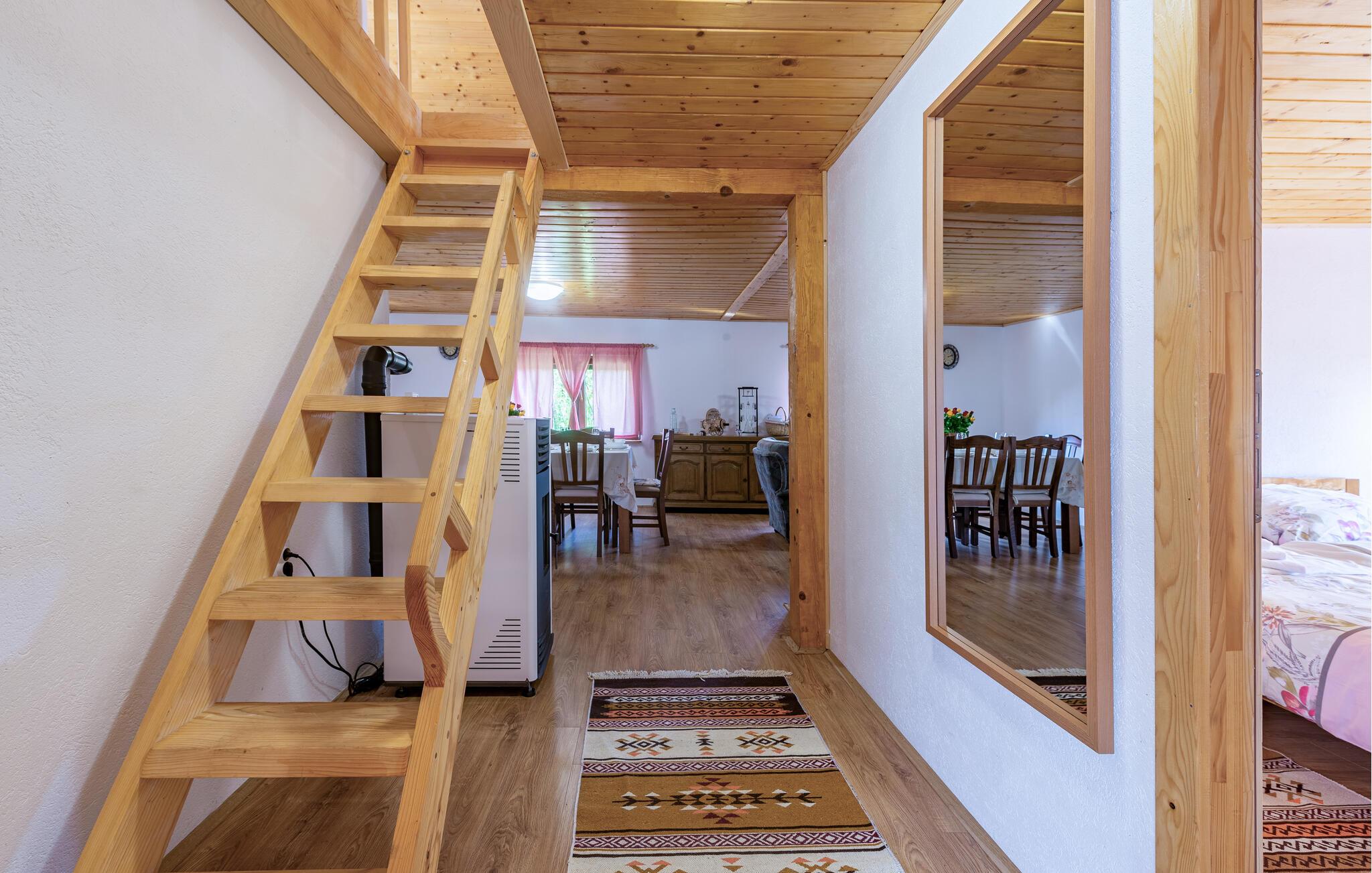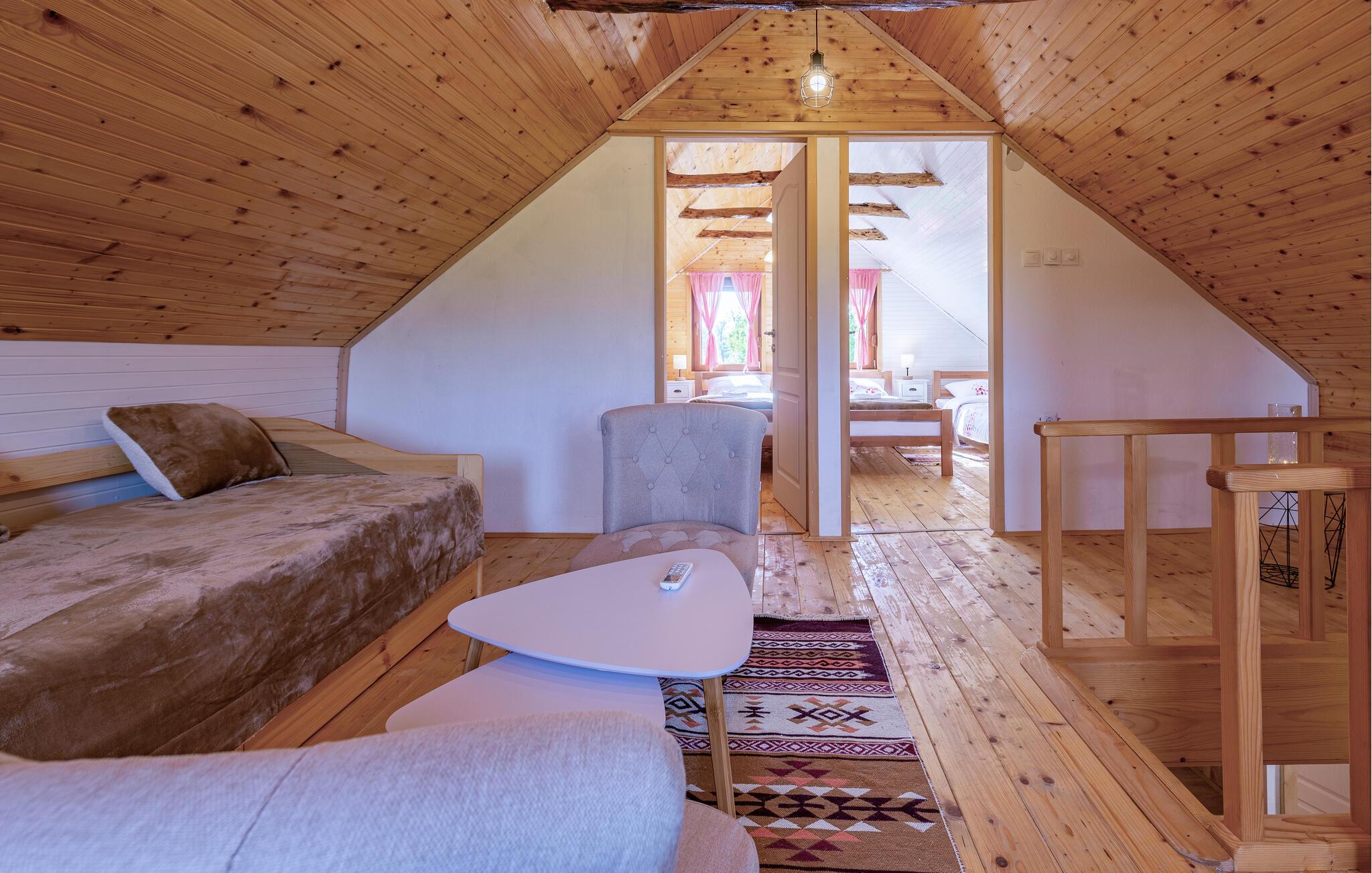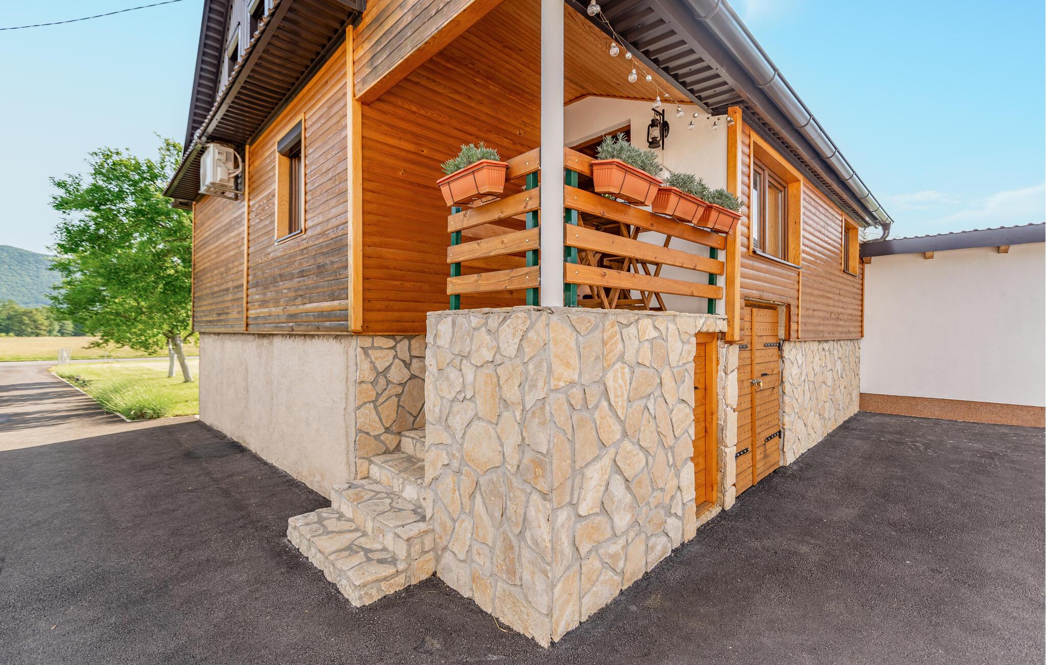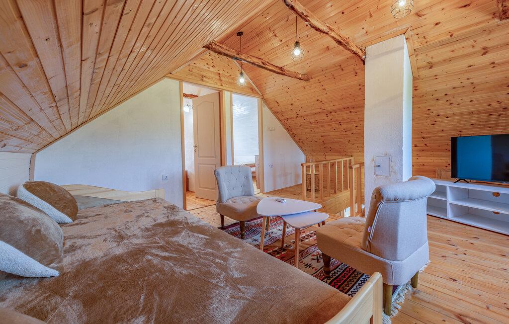 Velkommen til dette charmerende hus, der ligger i idylliske omgivelser i Aleksinica nær Gospic, og hvor I får den ideelle base til en ferie med fred, ro og masser af smuk natur. Indretningen fremtræder pænt og indbydende med en vellykket kombination af det rustikke og det moderne. Stuerne er hyggelige, køkkenet er veludstyret, så I får her med andre ord alt det, I behøver, for at kunne slappe dejligt af og forkæle jer selv med god mad efter en herlig dag på farten.