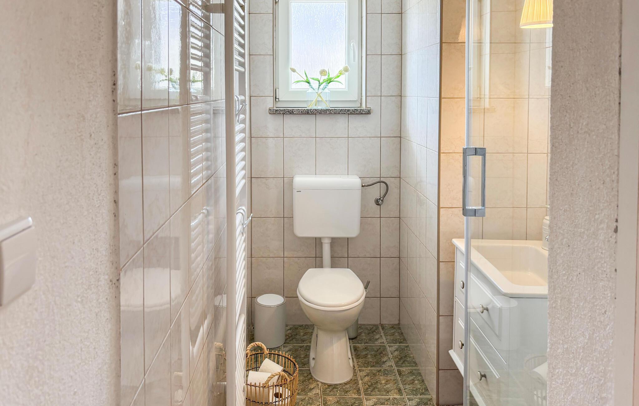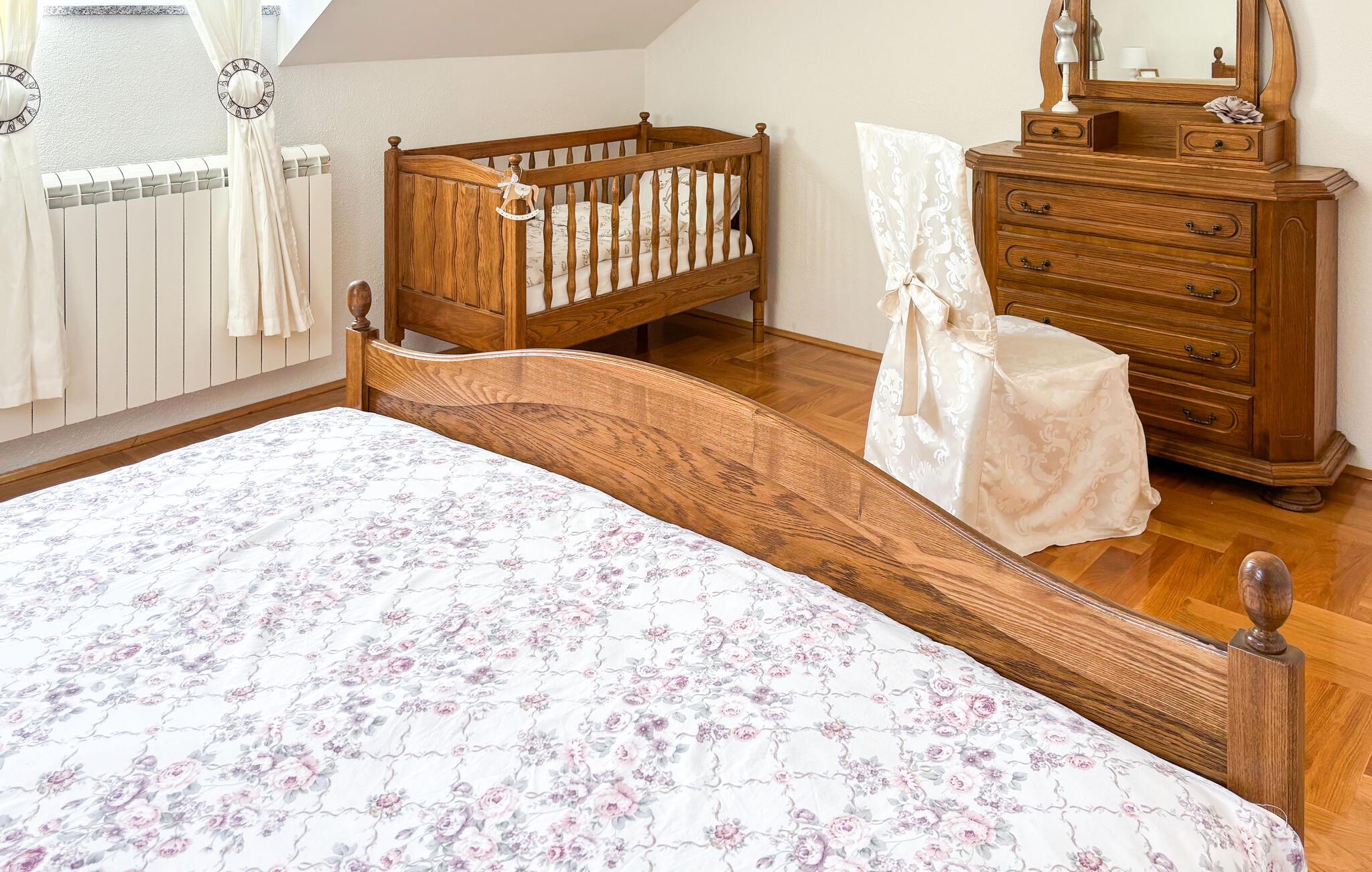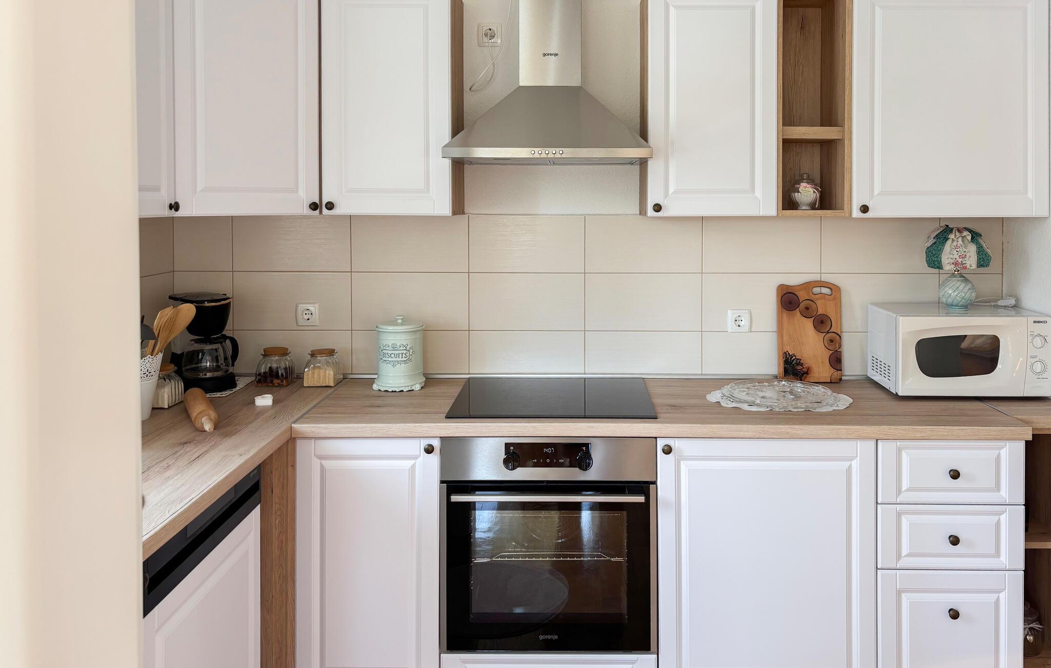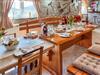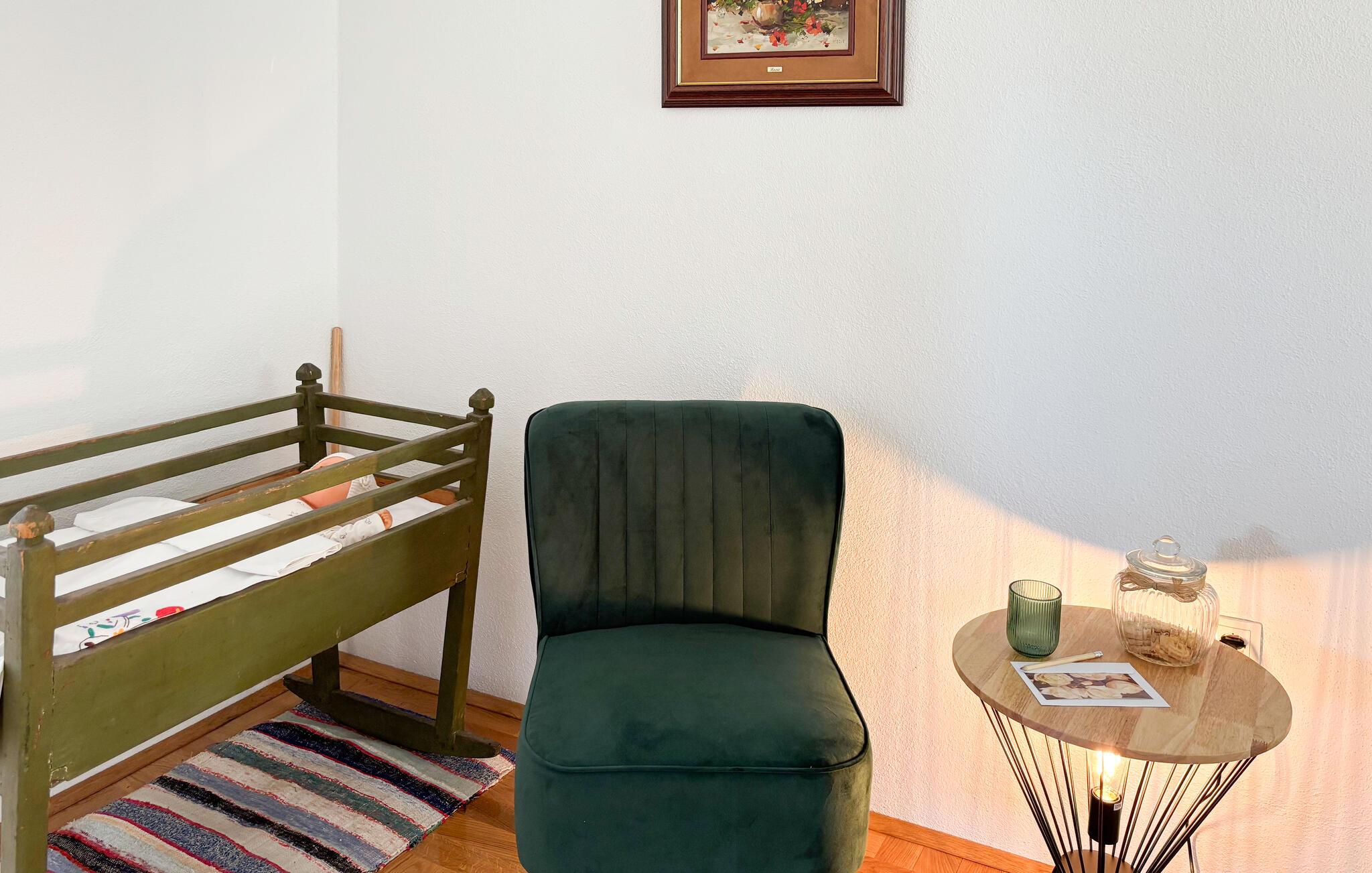 Nyd det hyggelige interiør med klassiske møbler og smukke træelementer. Tag plads i stuen med brændeovn, eller saml jer omkring det store spisebord i en rustik atmosfære. Køkkenet er funktionelt udstyret og har alt, hvad du skal bruge til fælles måltider. Lyse rum og store vinduer skaber en behagelig, afslappet atmosfære for dit ophold.