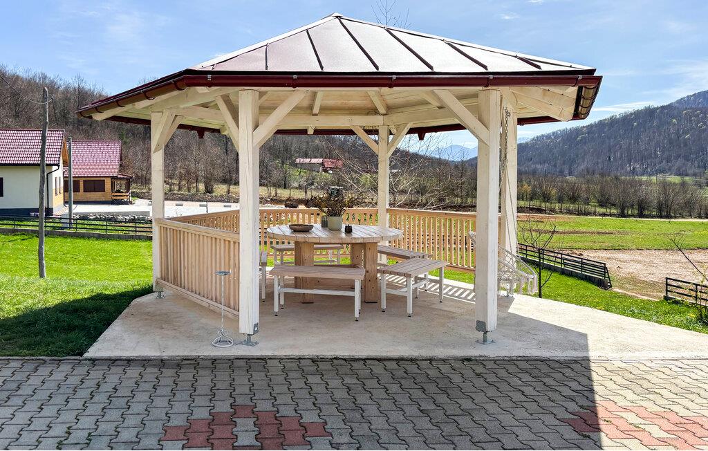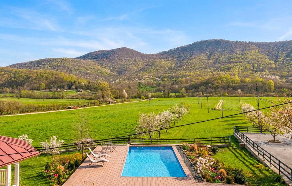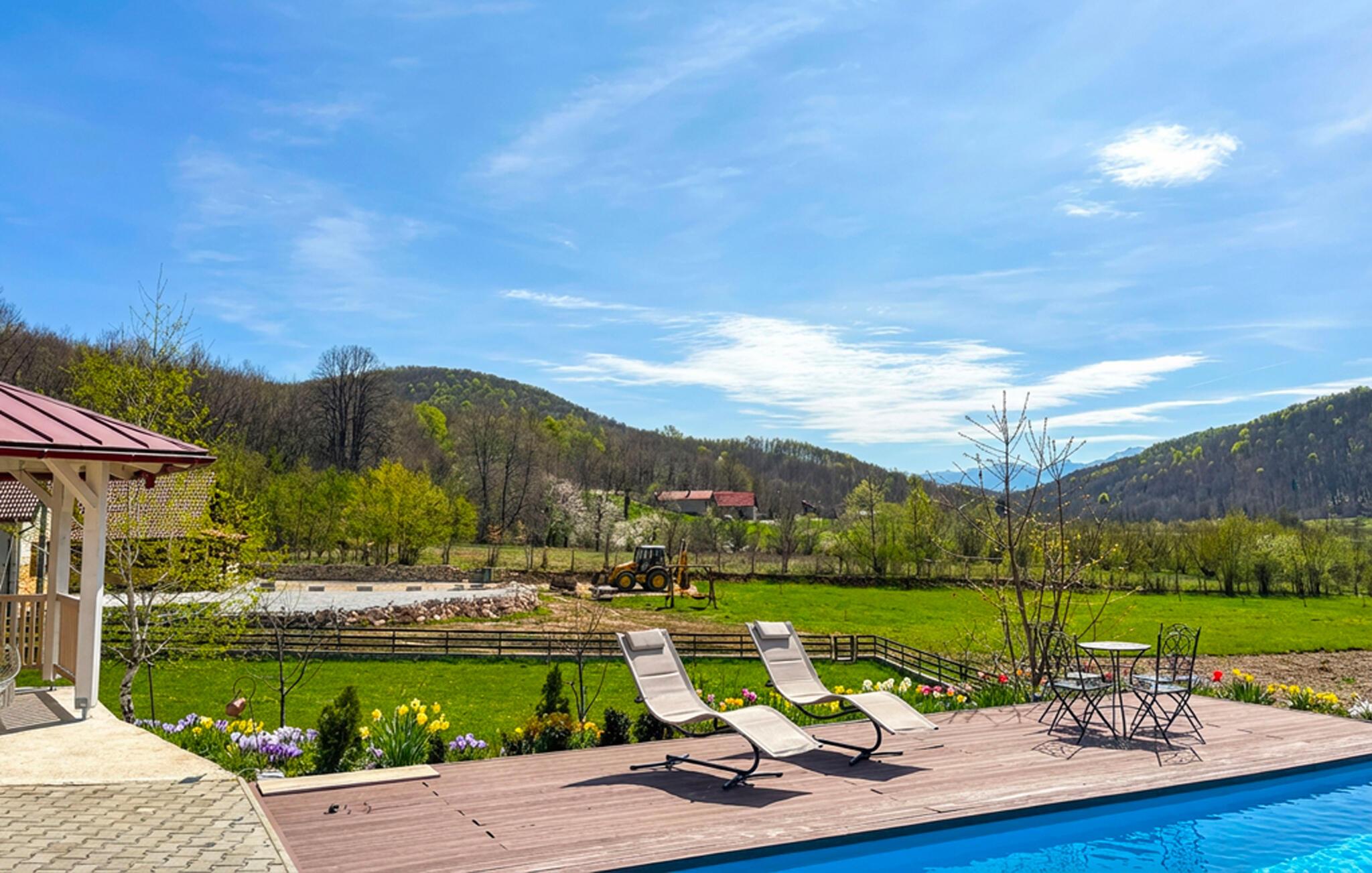 Tilbring tid i det rummelige udendørs område med pool og udsigt over enge og bakker. Tag en dukkert i vandet, eller slap af på liggestolene i solen. Brug den overdækkede pavillon til at spise i det fri.