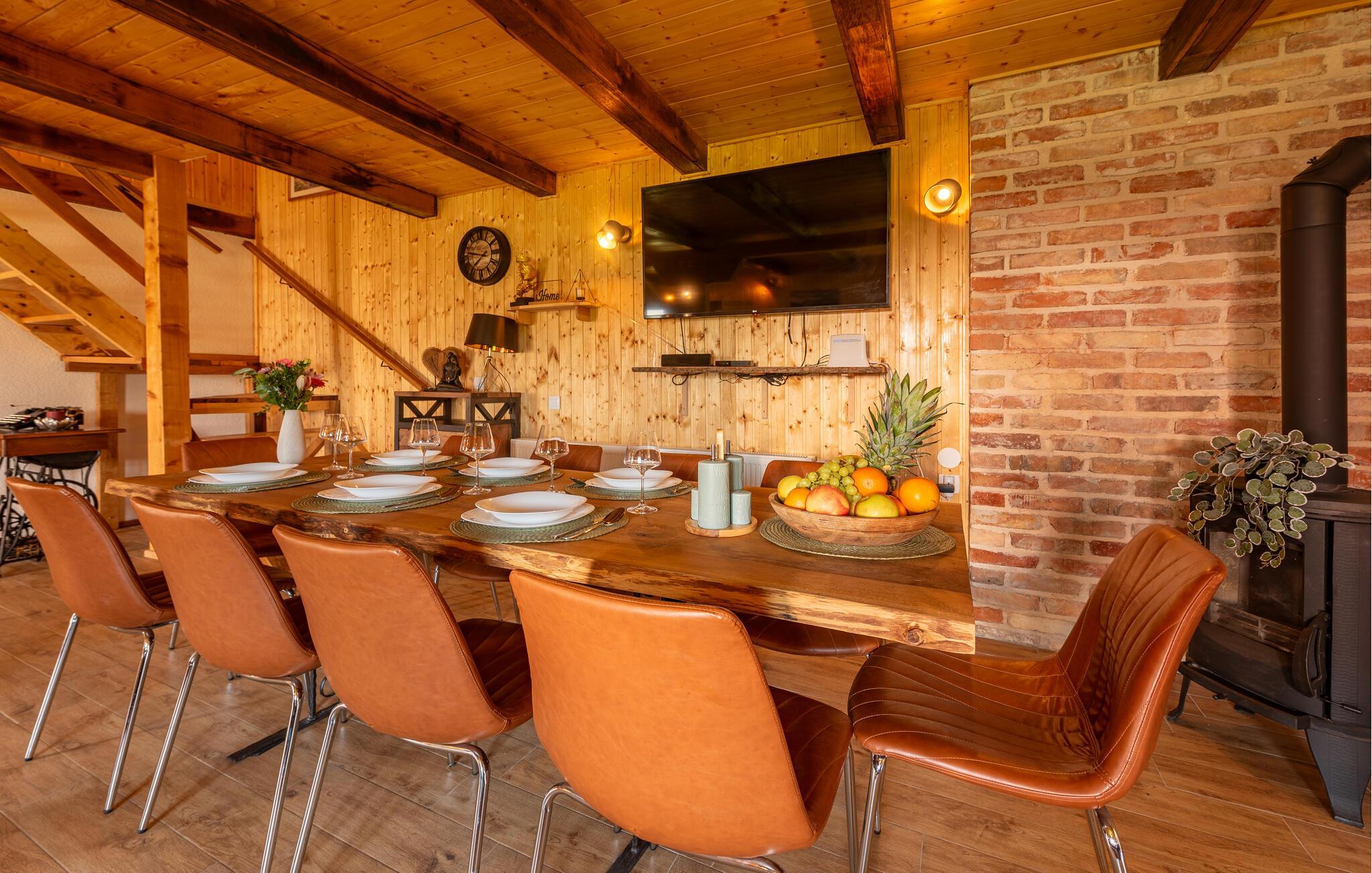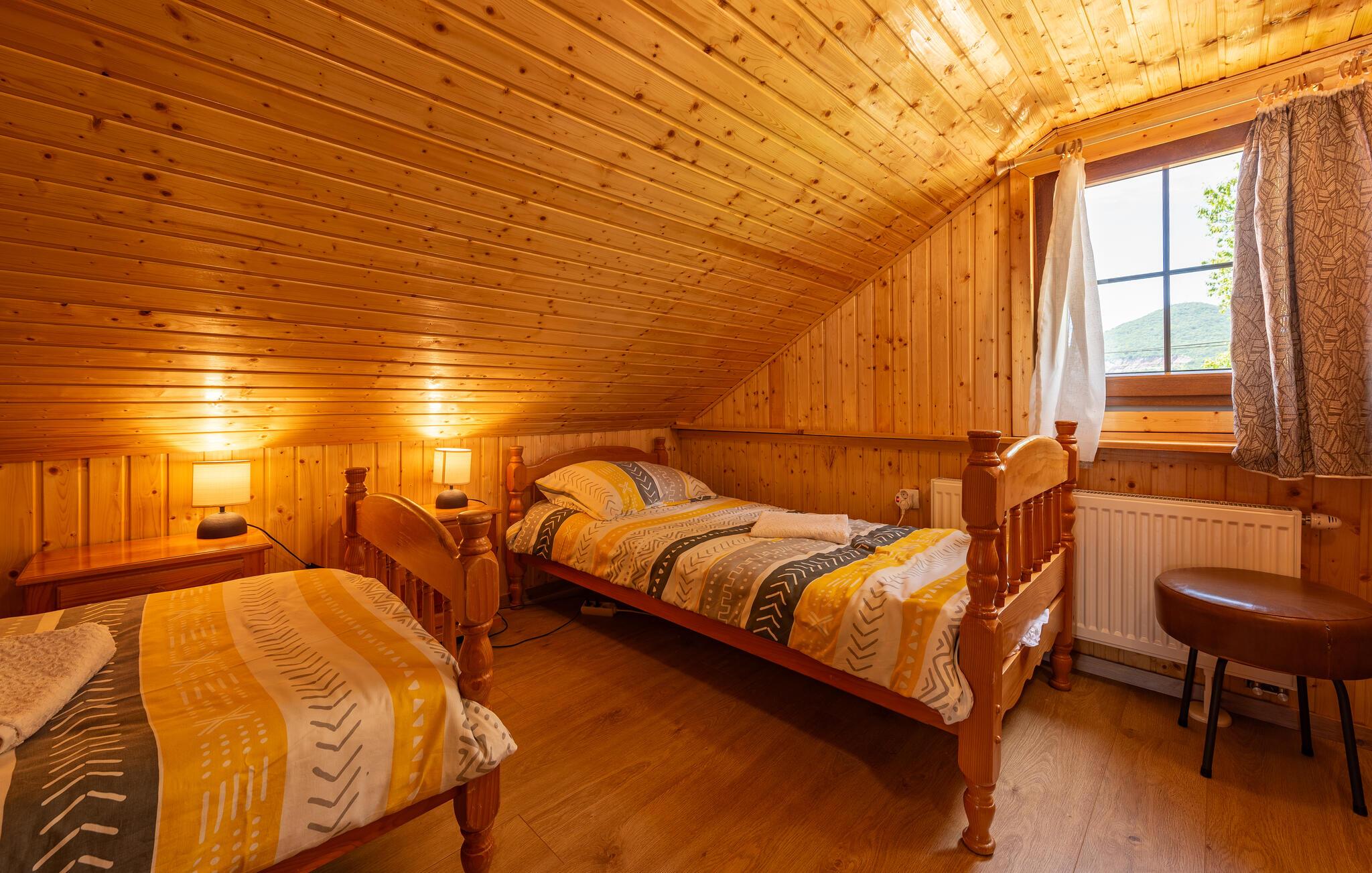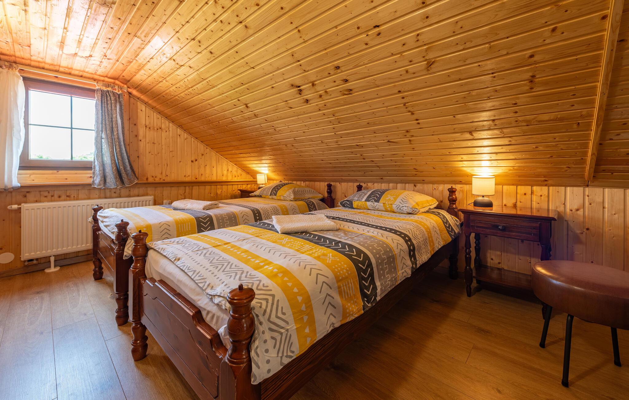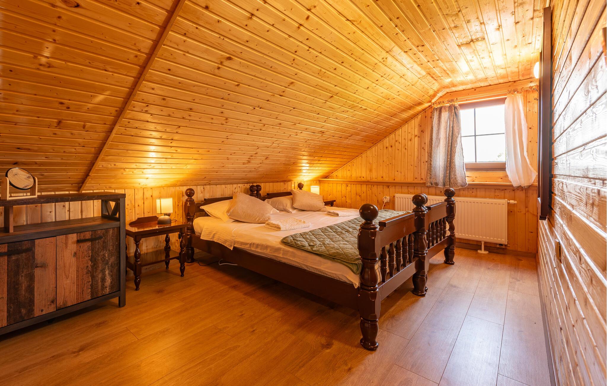 Dette fine detaljerede træhus venter på jer, gemt i det idylliske kroatiske landskab. Med moderne design, stilfulde værelser og smagfuld indretning er det det perfekte tilflugtssted. Den hyggelige stue med pejs lægger op til afslappende aftener, mens det veludstyrede køkken er ideelt til madlavningsaftener sammen.