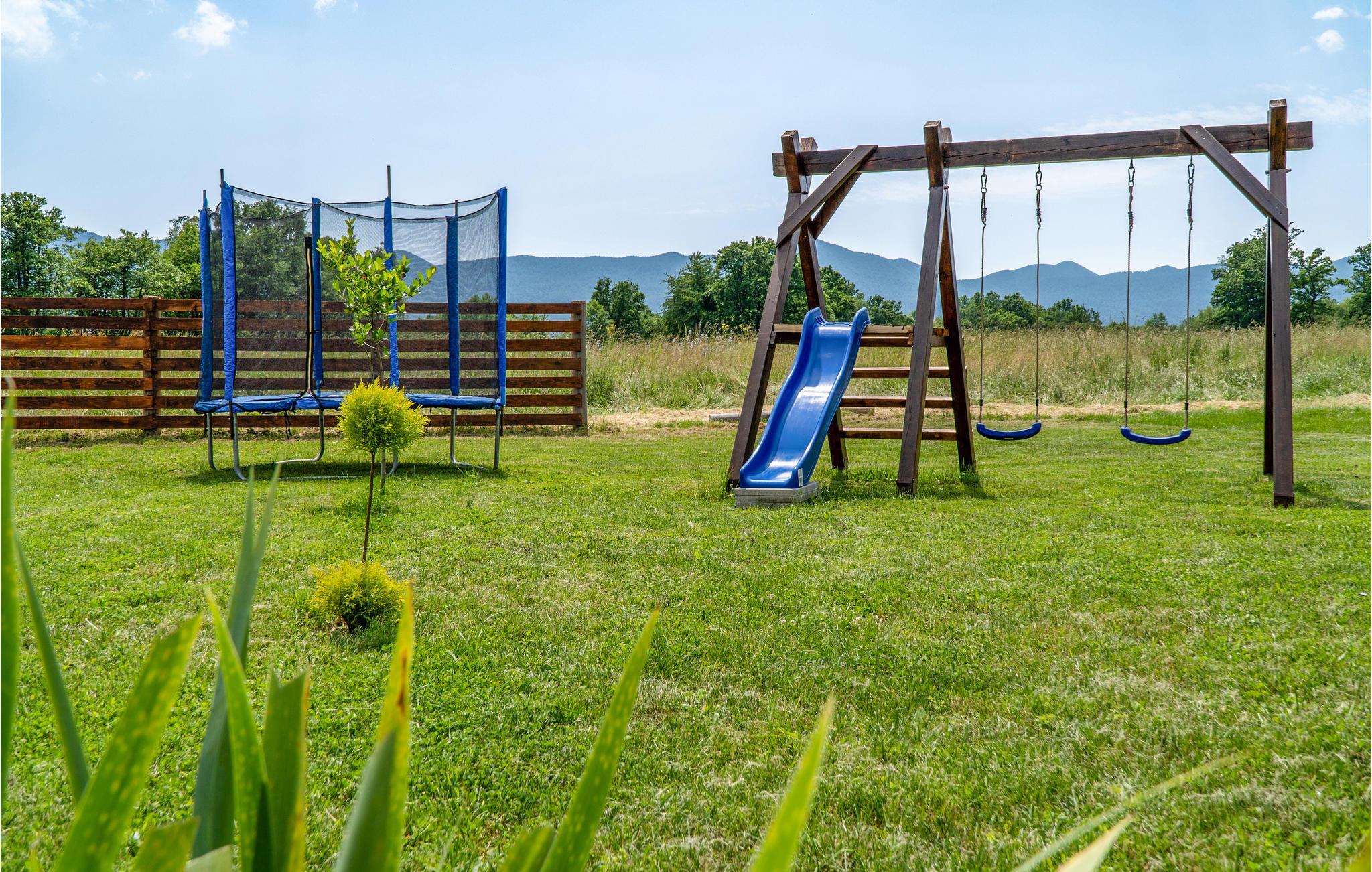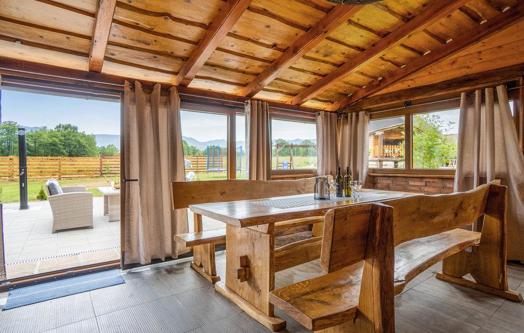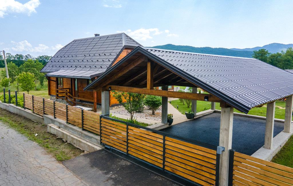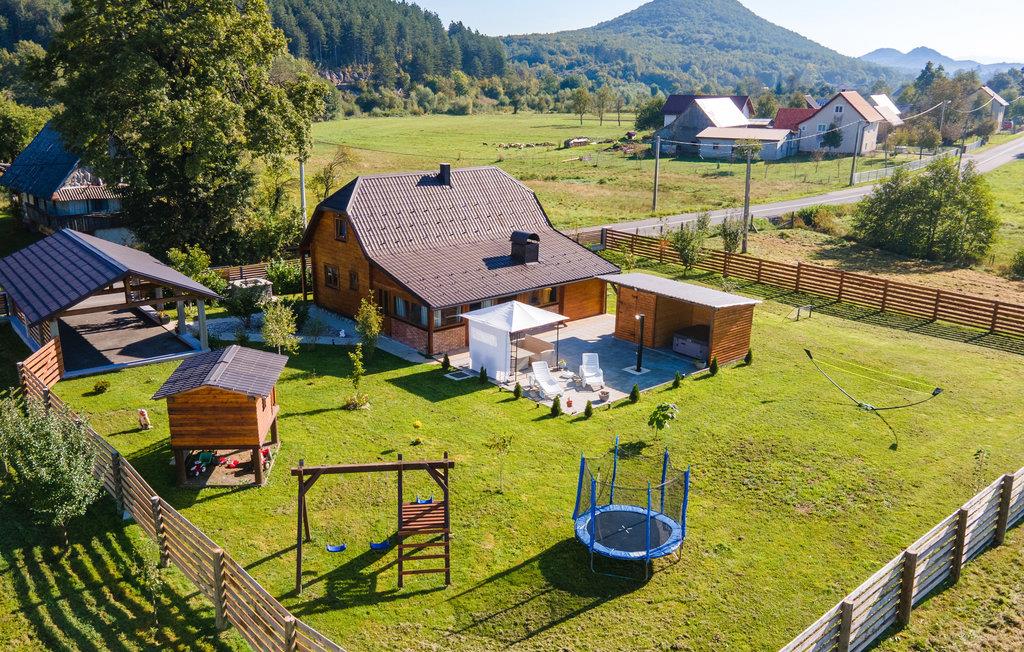 Tilbring en uforglemmelig ferie i dette komfortable og specielle feriehus. Dette indbydende feriehus byder velkommen i en tiltalende beliggenhed, det perfekte udgangspunkt for aktiviteter i naturen. Træhuset fortryller med en charmerende kontrast af moderne møbler og tunge trælofter og er det ideelle sted for en afslappende pause med dine kære. Her kan du finde dig rigtig godt tilpas, se frem til afslappende aftener i din ferieoase efter begivenhedsrige dage. Nyd solen og det fantastiske landskabspanorama i husets have, som er et legeparadis for børn. Du kan også vælge at tage dine måltider udenfor, komfortable loungemøbler inviterer dig til at slappe af på terrassen. Placeringen af huset giver dig mange aktiviteter. Der er flere floder og søer, der egner sig til svømning og fiskeri. Vandre- og cykelstier til Velebit og de omkringliggende bjerge er i nærheden. Du kan også nemt nå Plitvice Lakes National Park og havet herfra i bil. Zip-line, huler, adrenalinpark og quad-cykler tiltrækker eventyrlystne feriegæster. Du vil have gode minder fra din ferie i dette feriehus i lang tid.