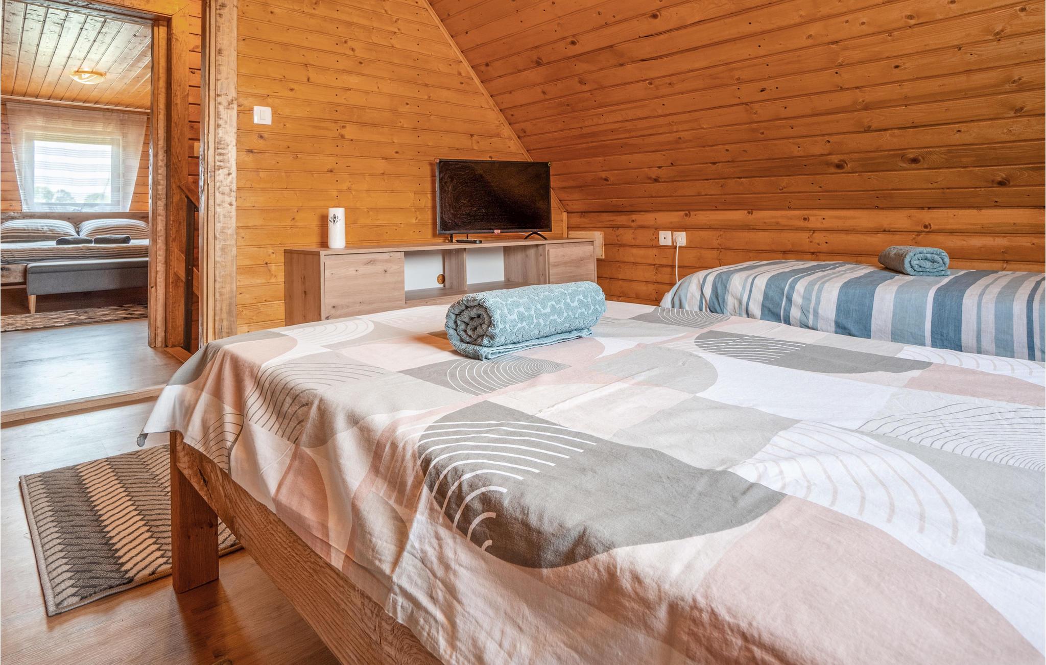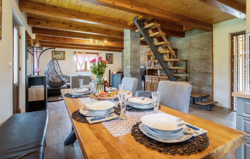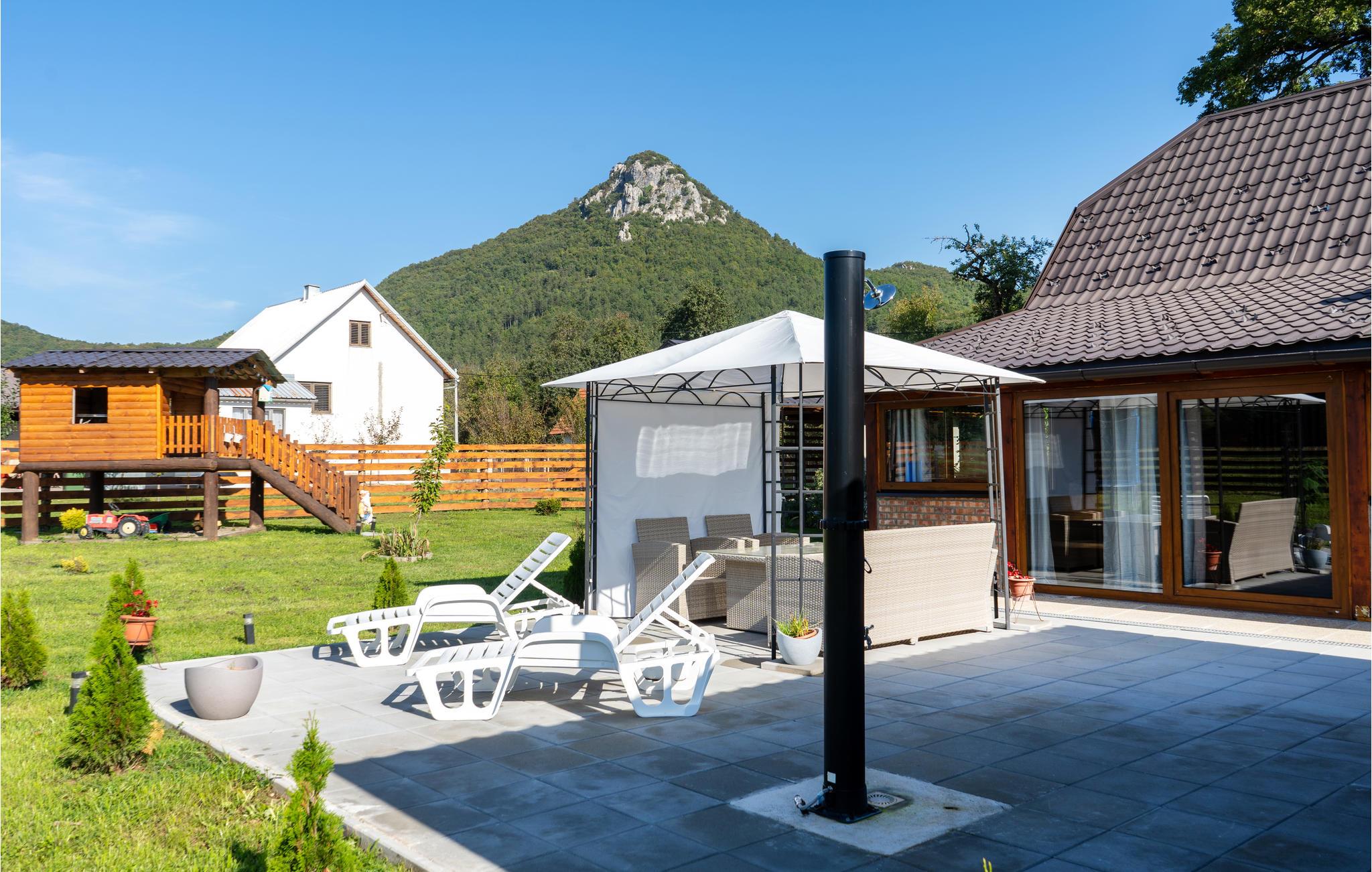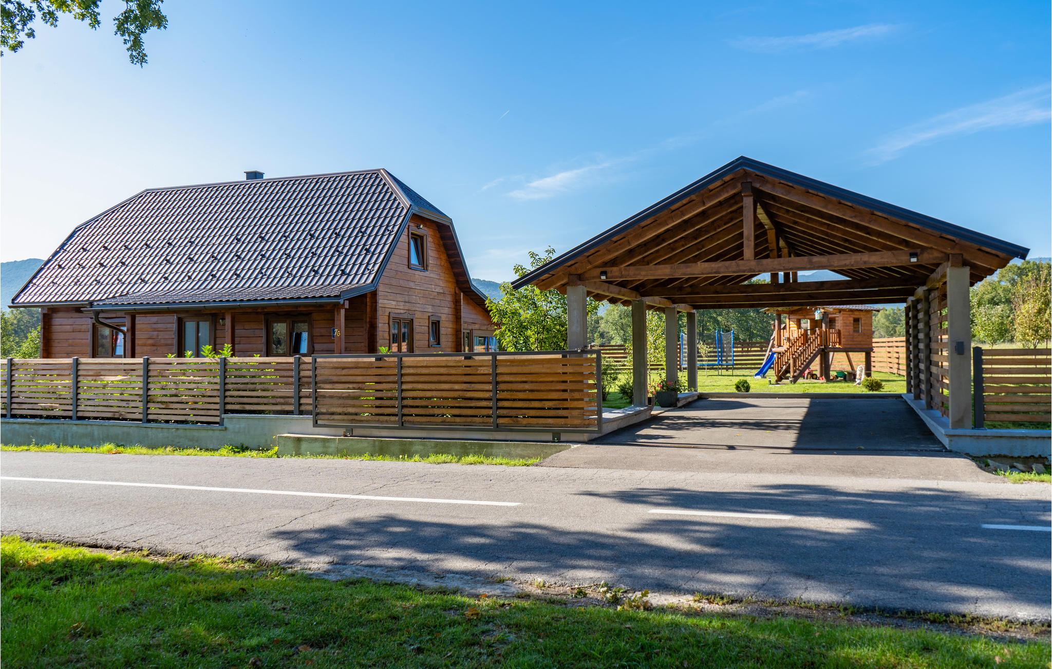 Tilbring en uforglemmelig ferie i dette komfortable og specielle feriehus. Dette indbydende feriehus byder velkommen i en tiltalende beliggenhed, det perfekte udgangspunkt for aktiviteter i naturen. Træhuset fortryller med en charmerende kontrast af moderne møbler og tunge trælofter og er det ideelle sted for en afslappende pause med dine kære. Her kan du finde dig rigtig godt tilpas, se frem til afslappende aftener i din ferieoase efter begivenhedsrige dage. Nyd solen og det fantastiske landskabspanorama i husets have, som er et legeparadis for børn. Du kan også vælge at tage dine måltider udenfor, komfortable loungemøbler inviterer dig til at slappe af på terrassen. Placeringen af huset giver dig mange aktiviteter. Der er flere floder og søer, der egner sig til svømning og fiskeri. Vandre- og cykelstier til Velebit og de omkringliggende bjerge er i nærheden. Du kan også nemt nå Plitvice Lakes National Park og havet herfra i bil. Zip-line, huler, adrenalinpark og quad-cykler tiltrækker eventyrlystne feriegæster. Du vil have gode minder fra din ferie i dette feriehus i lang tid.