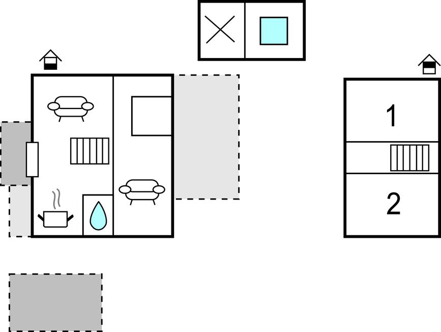 Opholdsstue/køkken 45m2 - 1 Soveplads. (Sofa, madras eller lignende).