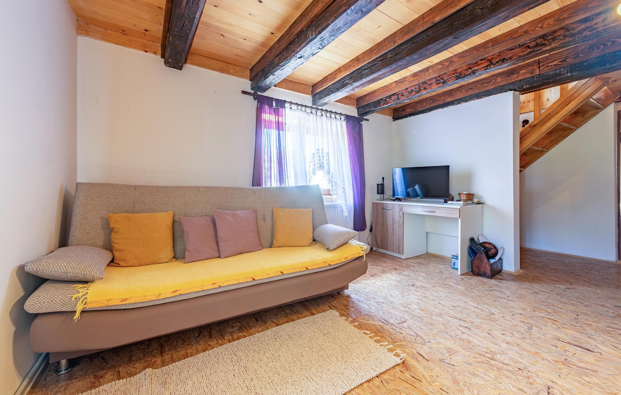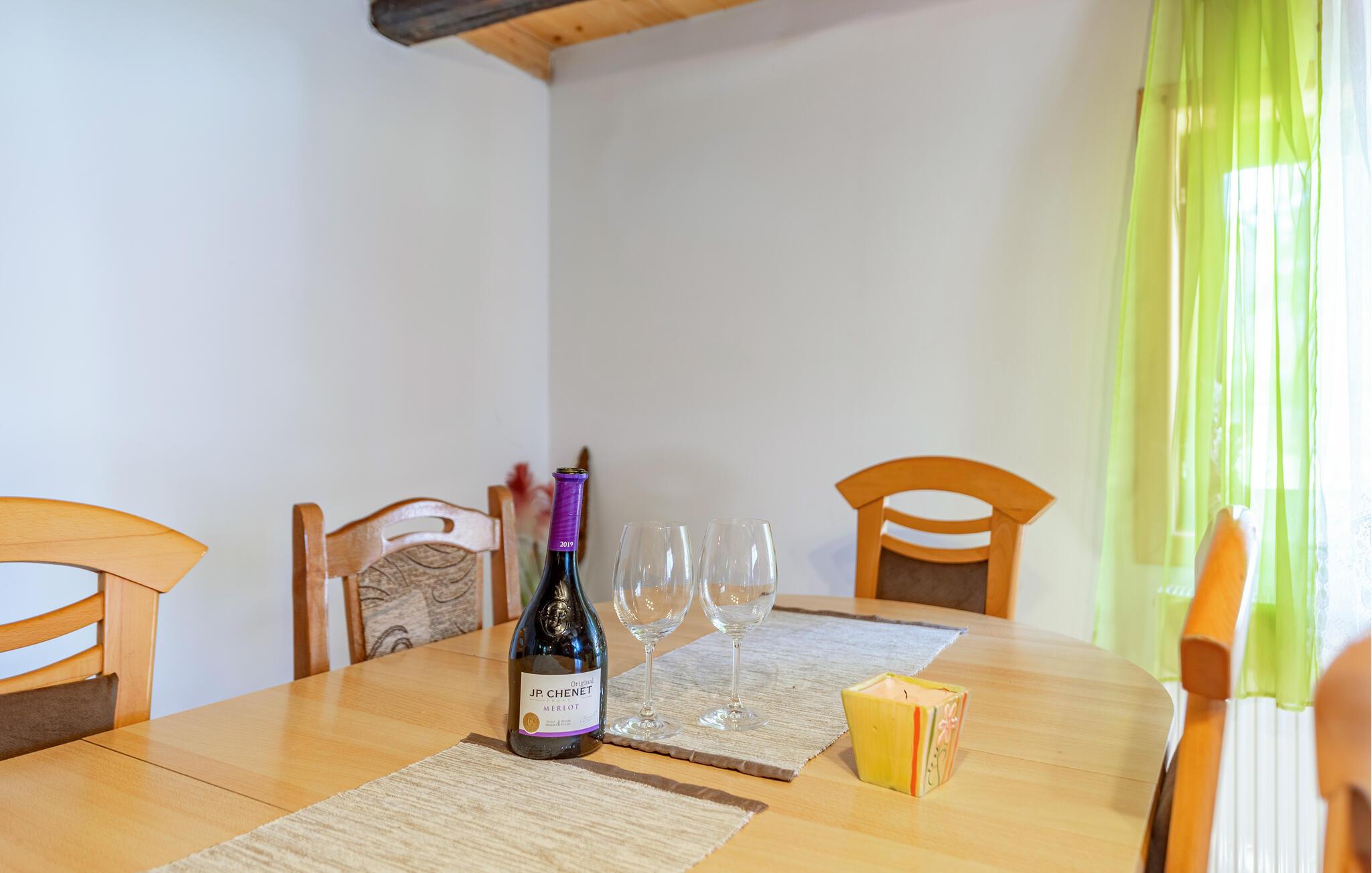 Velkommen til det indbydende hus, der ligger i skønne omgivelser og har en fantastisk udsigt over området og bjergene. Indvendigt emmer det af hygge med solide trælofter, åben stue og et veludstyret køkken, hvor I kan tilberede familiens livretter efter en dejlig dag på farten. Lad en dejlig dag gå på hæld med god mad og fælleshygge i sofaen, mens I lægger planer for de kommende dage.