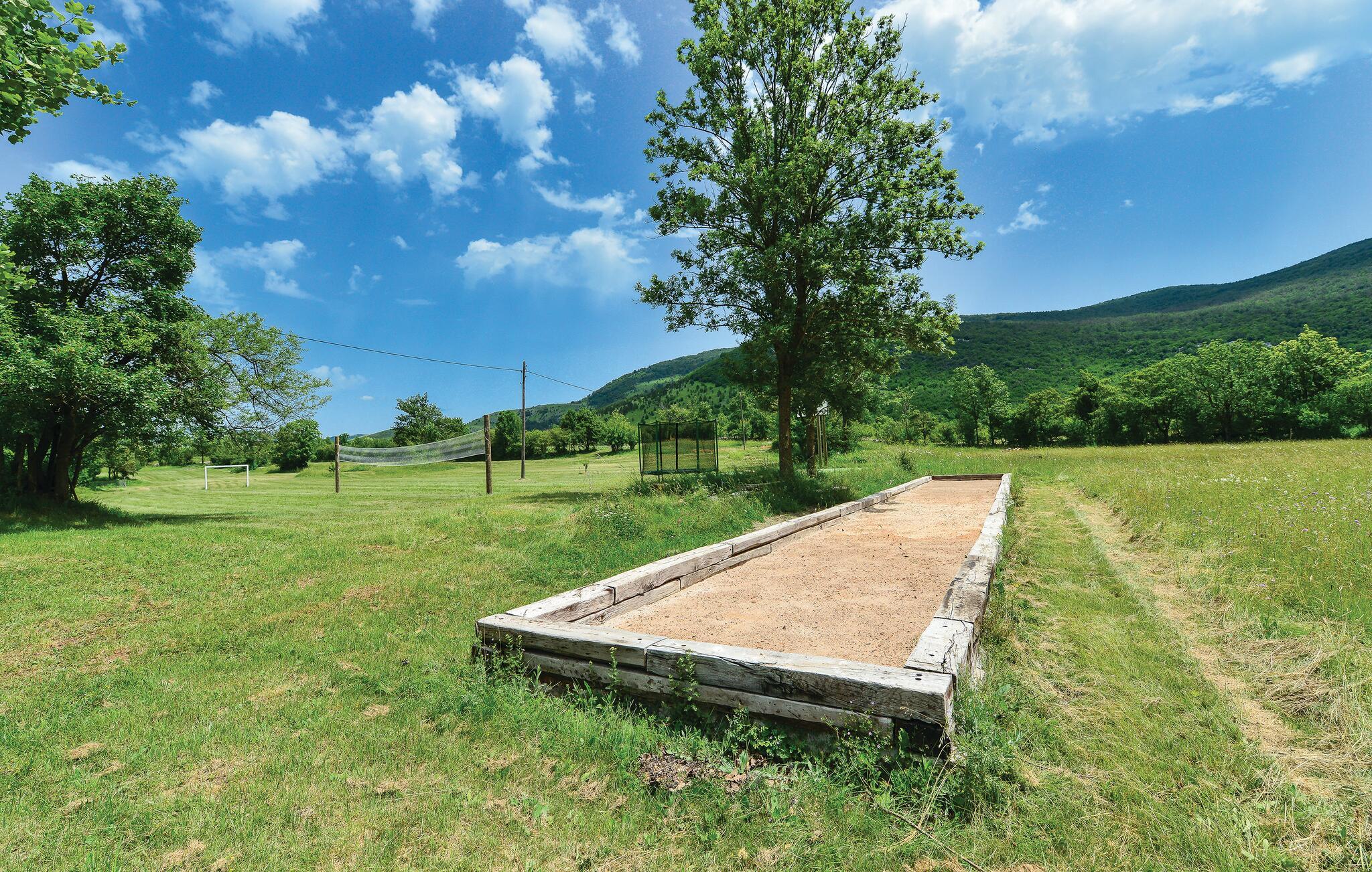Den store grund lokker med fortryllende udsigt over det omkringliggende landskab og tilbyder børnene en række muligheder for at lege og boltre sig. Køl jer ned i poolen, som I har lyst, spil basketball, badminton, fodbold eller boccia, og glæd jer til stemningsfulde grillaftener i den varme sommerluft.