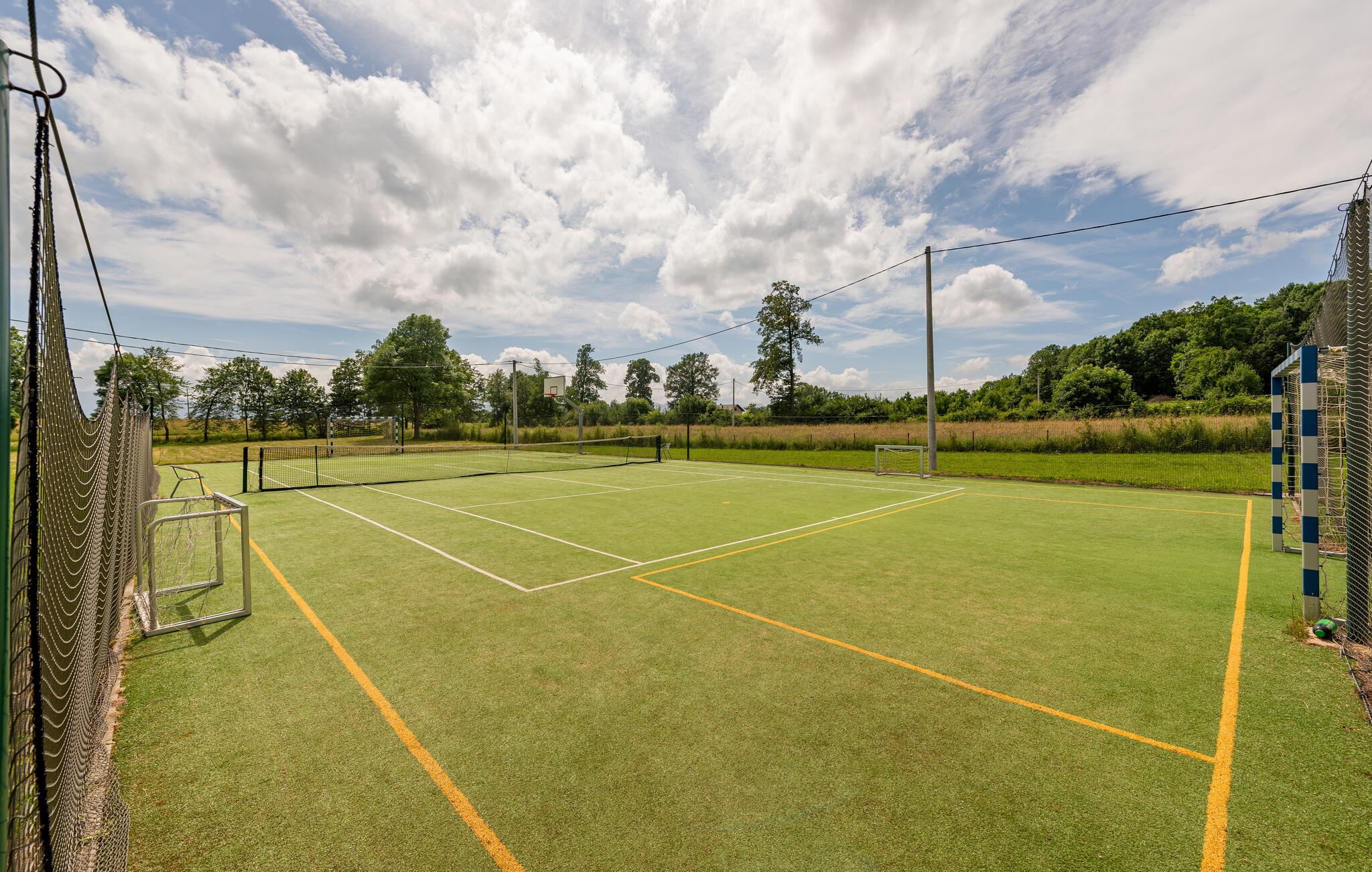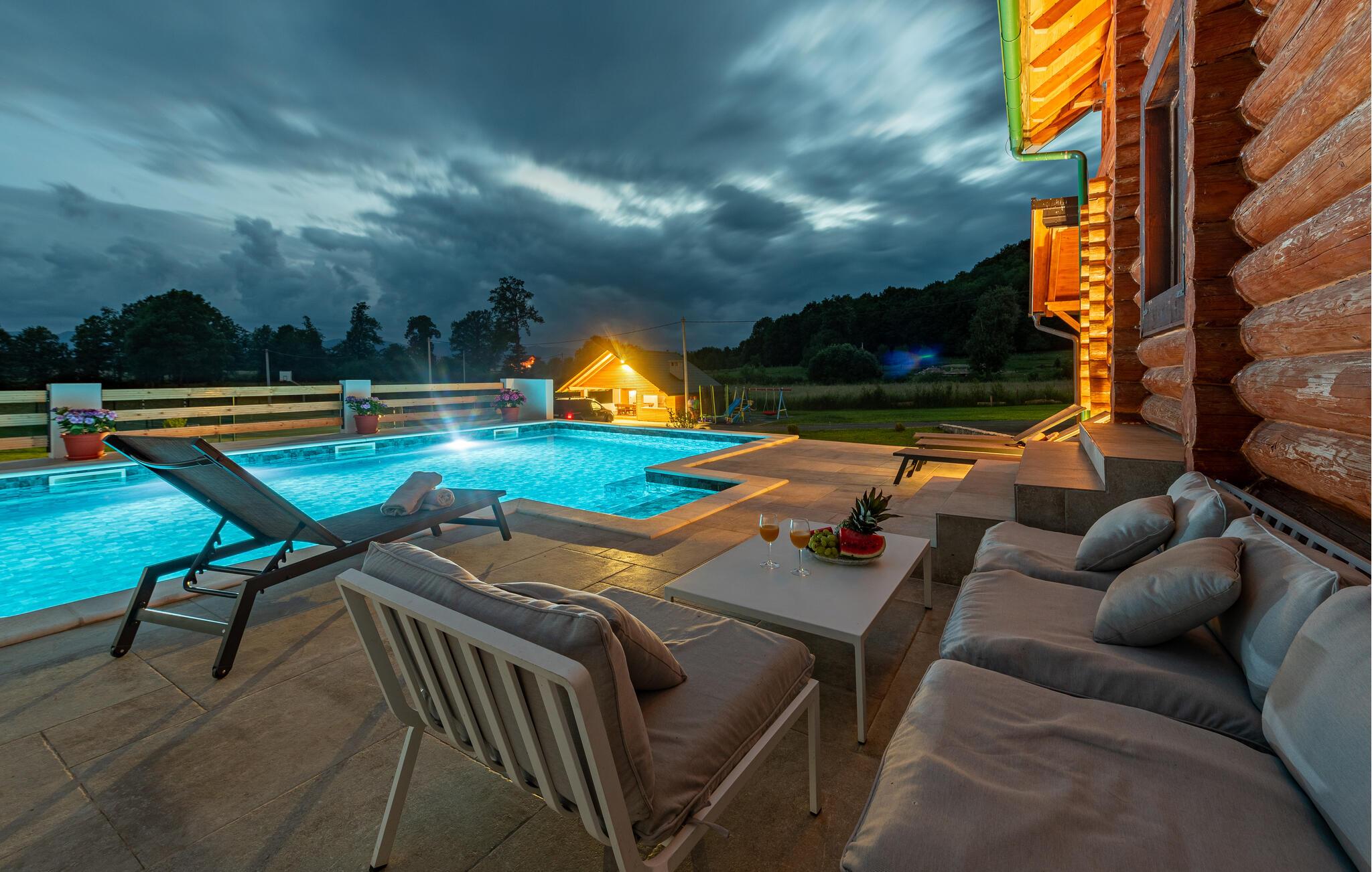 Når I kommer hjem fra en af jeres vandreture, venter jer en privat swimmingpool i haven. Til børnene er der både en legeplads og en særdeles veludstyret sportsplads, som I kommer til at dele med naboferiehuset.