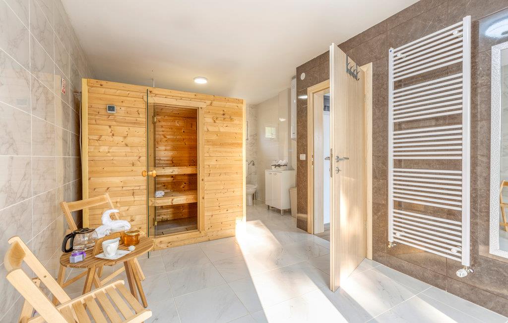 Dette nye hus tilbyder alle mulige aktiviteter. Indvendigt finder du moderne, lyse og smagfulde møbler samt alt, hvad du behøver for en vellykket ferie. 8 personer finder plads i 2 soveværelser, mens yderligere 2 senge er i den kombinerede spisestue / køkken. Der er også 2 badeværelser af høj kvalitet, hvoraf det ene har sauna. Ideelt, hvis du vil slappe af efter en aktiv dag.