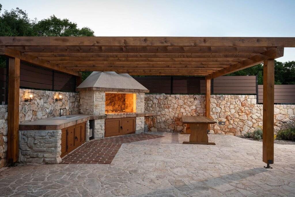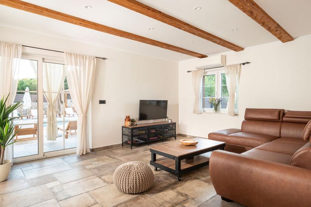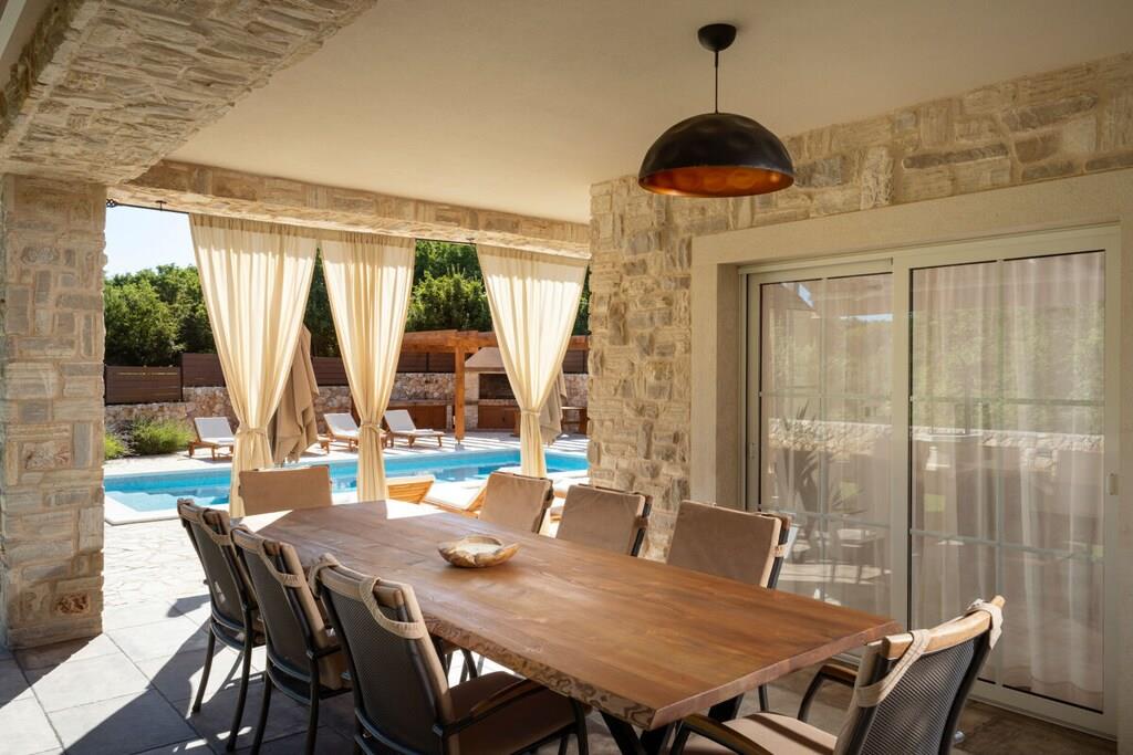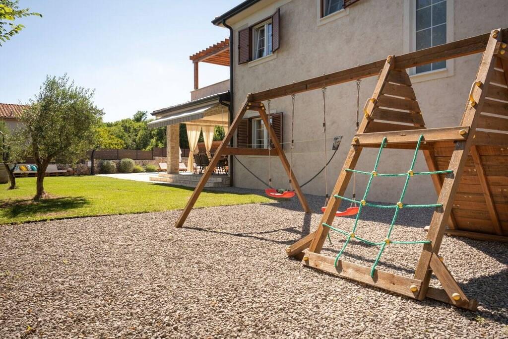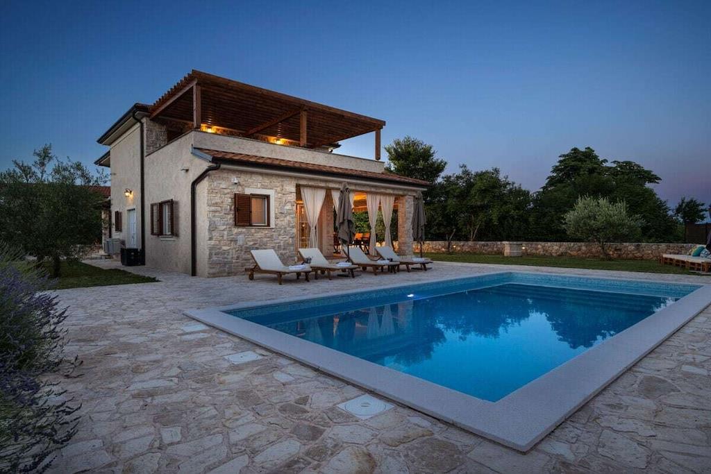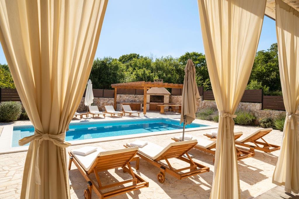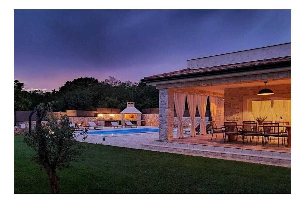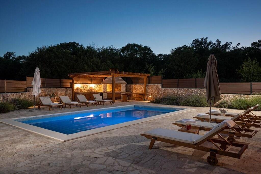 Villa LuLu på den maleriske ø Krk tilbyder det perfekte tilflugtssted for din ferie. Omgivet af smuk natur byder denne villa på en lille olivenlund, en legeplads, en udendørs pejs og en opvarmet pool med komfortable liggestole. Indenfor tilbyder villaen fire rummelige værelser, alle med eget badeværelse, aircondition og tv. Stueetagen har et moderne køkken, en spiseplads og en stue med aircondition og tv samt et separat toilet for ekstra komfort. Ovenpå er der tre yderligere værelser og en rummelig terrasse med en fantastisk udsigt over poolen og de omkringliggende grønne områder.