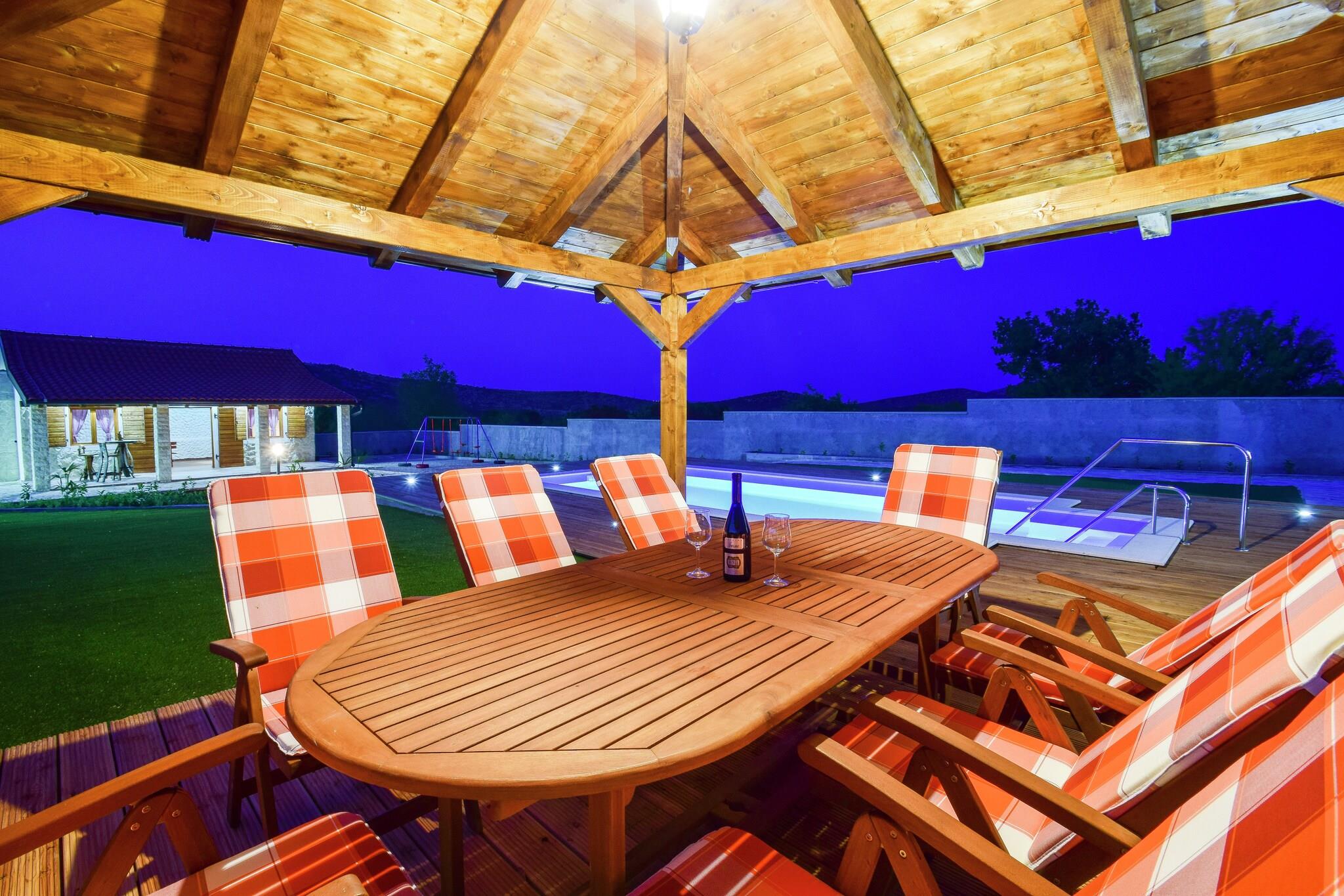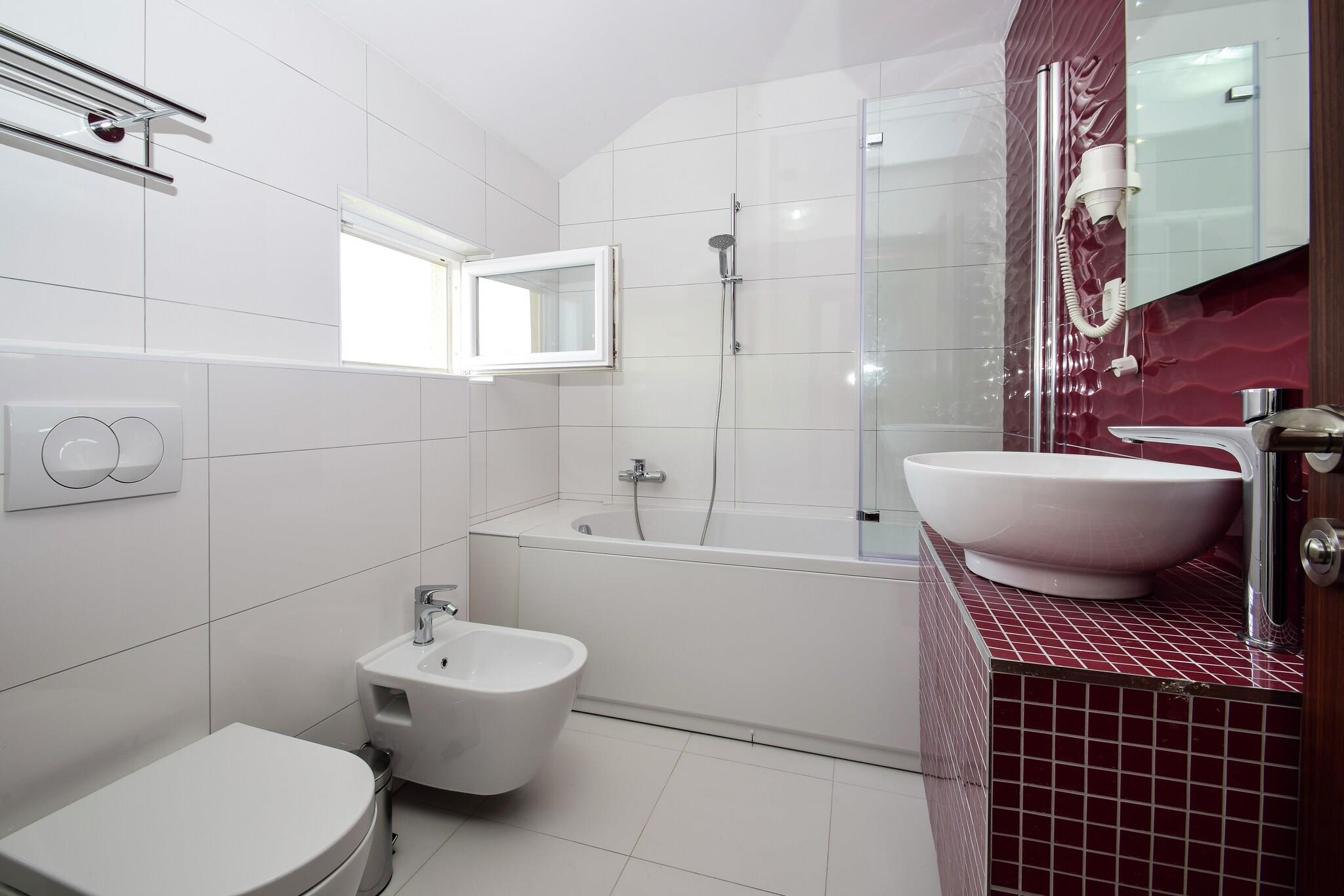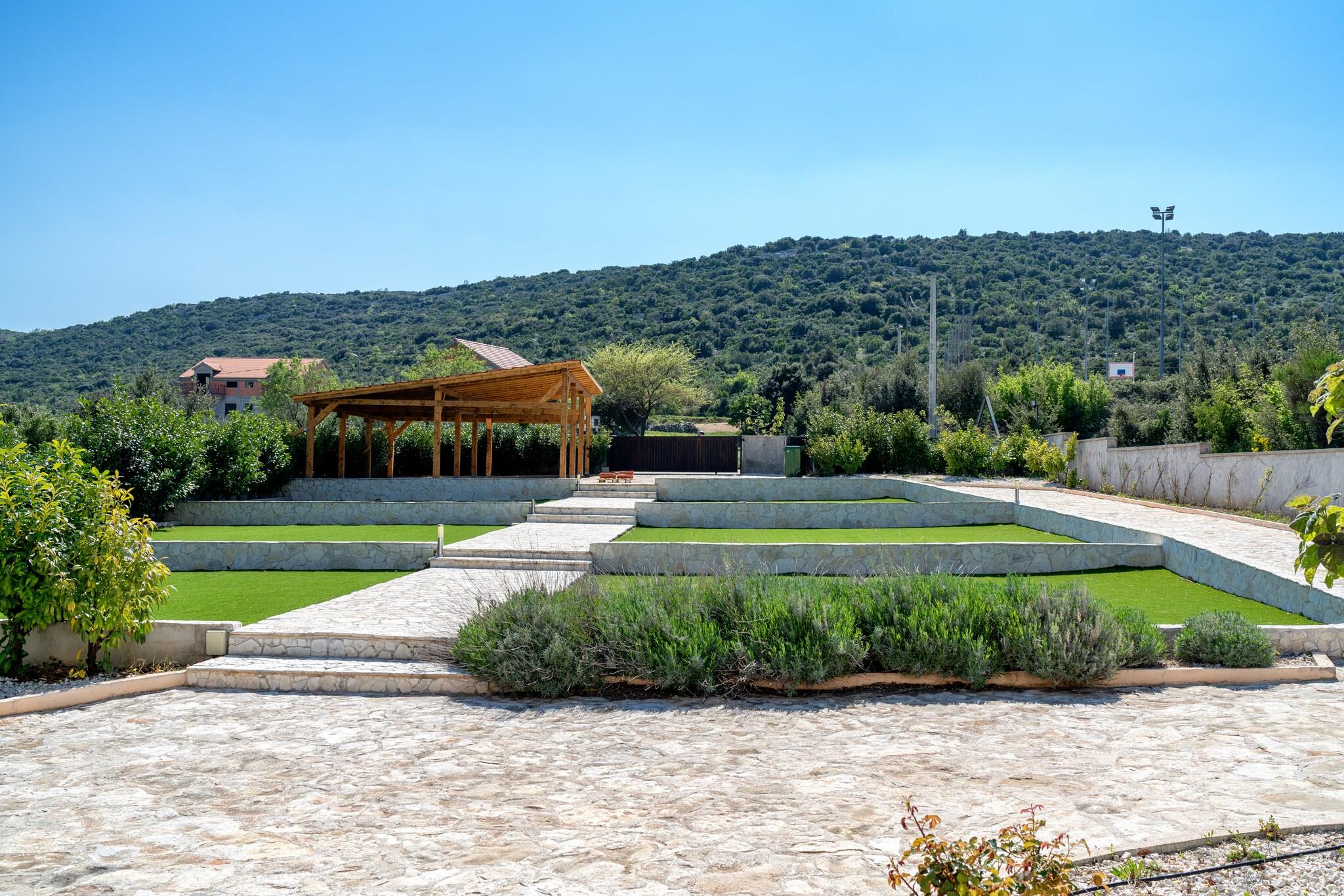 Forkæl dig selv med en fredelig flugt i denne rummelige 5-værelses villa i Zaton, ideel til familier eller grupper. Villaen er omgivet af en indhegnet have og har en privat swimmingpool og overdækkede terrasser, der er perfekte til at slappe af, spise eller nyde vin med udsigt. Indenfor finder du et fuldt udstyret køkken, hyggelige opholdsrum og fleksible sovearrangementer, herunder en børneseng og høj stol. Villaen ligger kun 8 km fra strandene i Nin og tilbyder nem adgang til havet, vandsport og lokale restauranter. Udforsk området på cykel, nyd nattelivet i nærliggende pubber, eller slap af, mens børnene leger i haven eller på boulebanen. En grillopsætning tilføjer charmen ved udendørs aftener. Med Zadar Lufthavn 50 km væk og Split Lufthavn på 70 km, er denne villa en fredfyldt, men alligevel godt forbundet base for din kroatiske ferie. Uanset om du leder efter natur, kultur eller kystsjov, leverer denne villa det hele i komfort og stil.