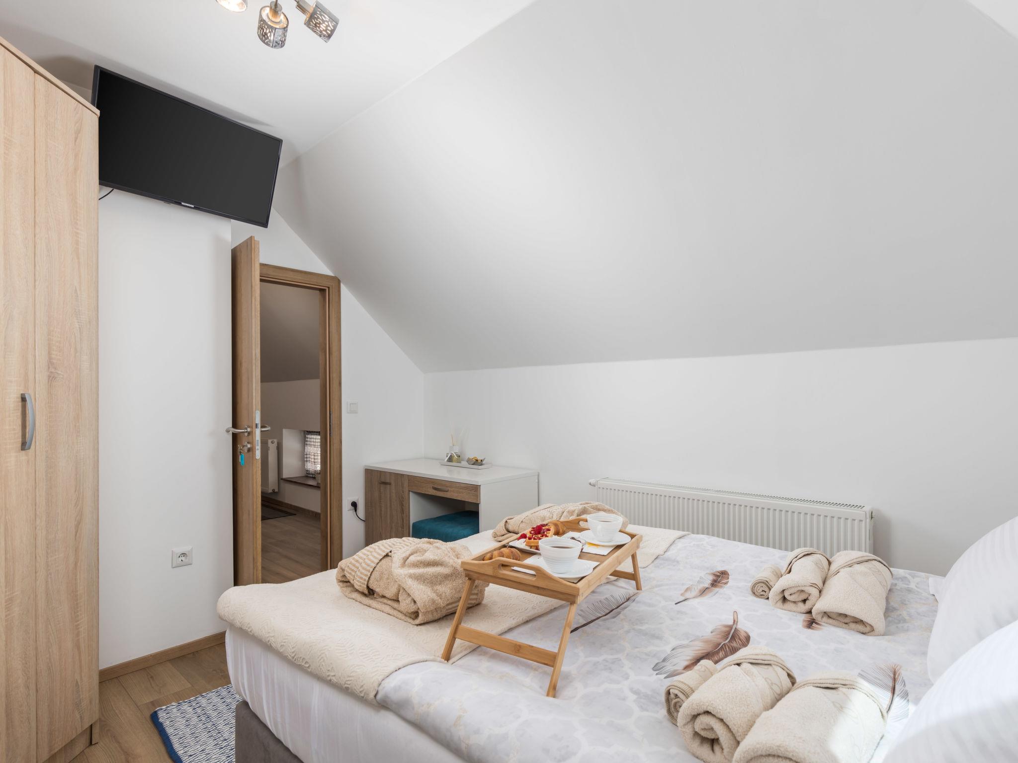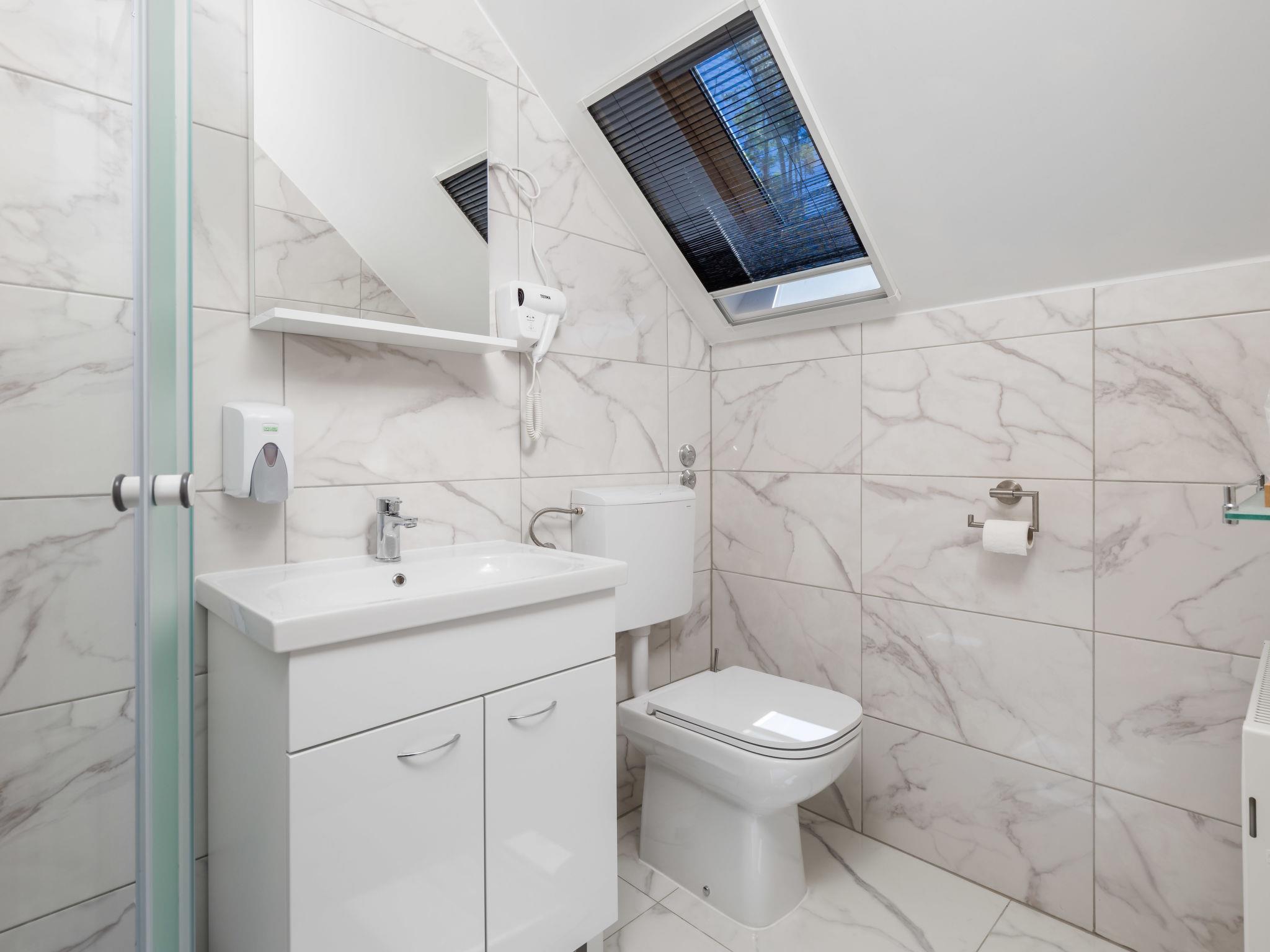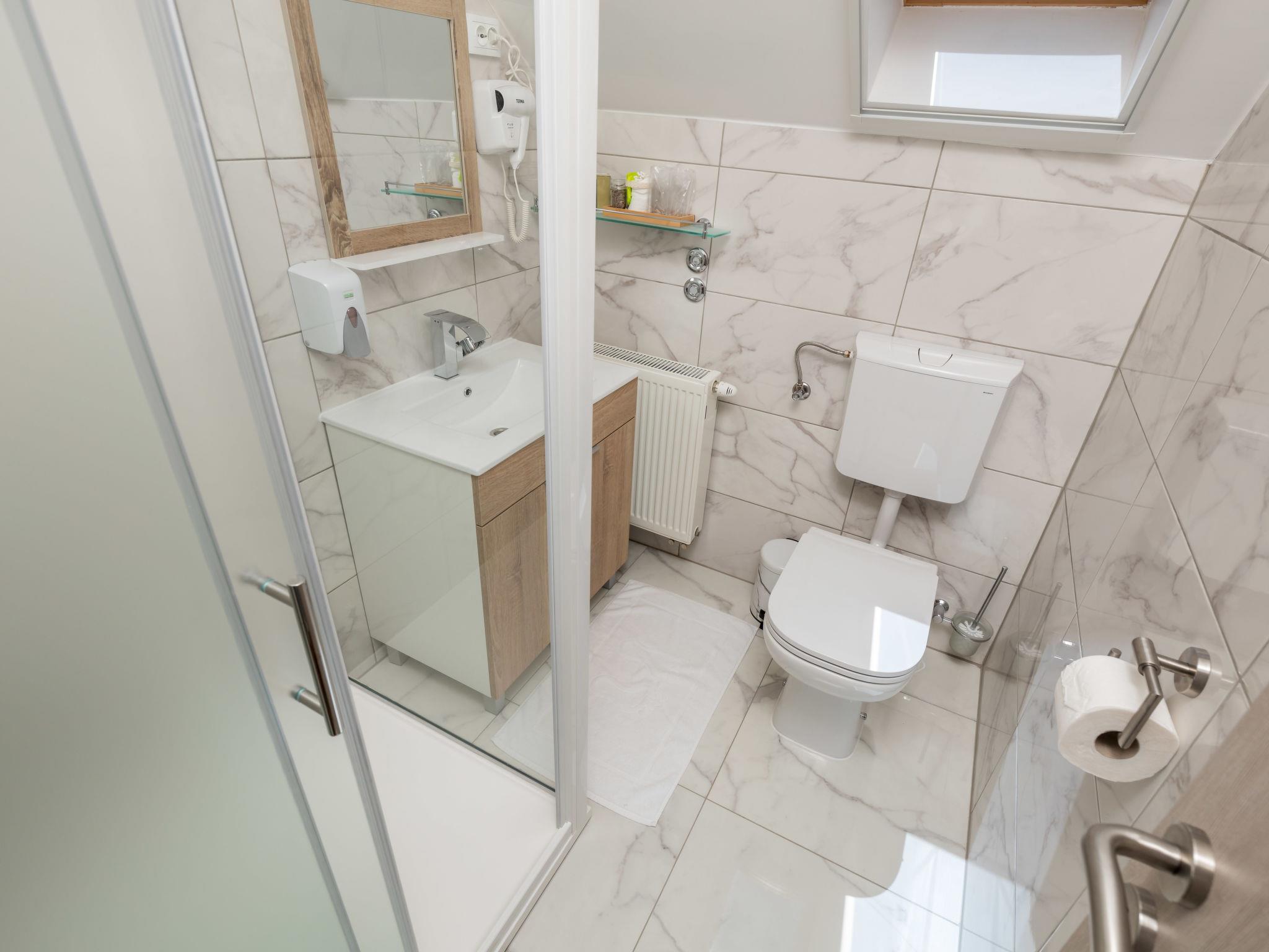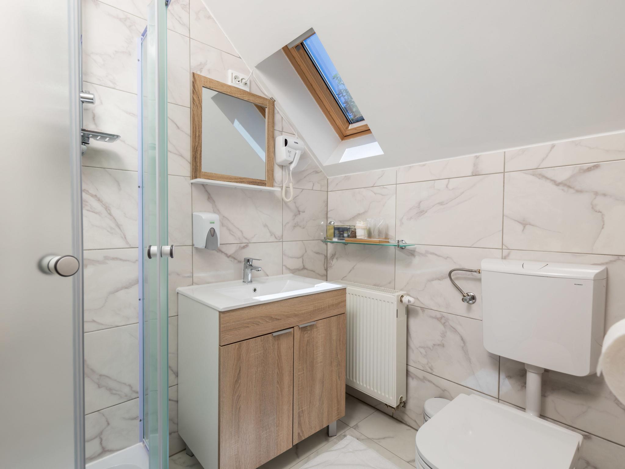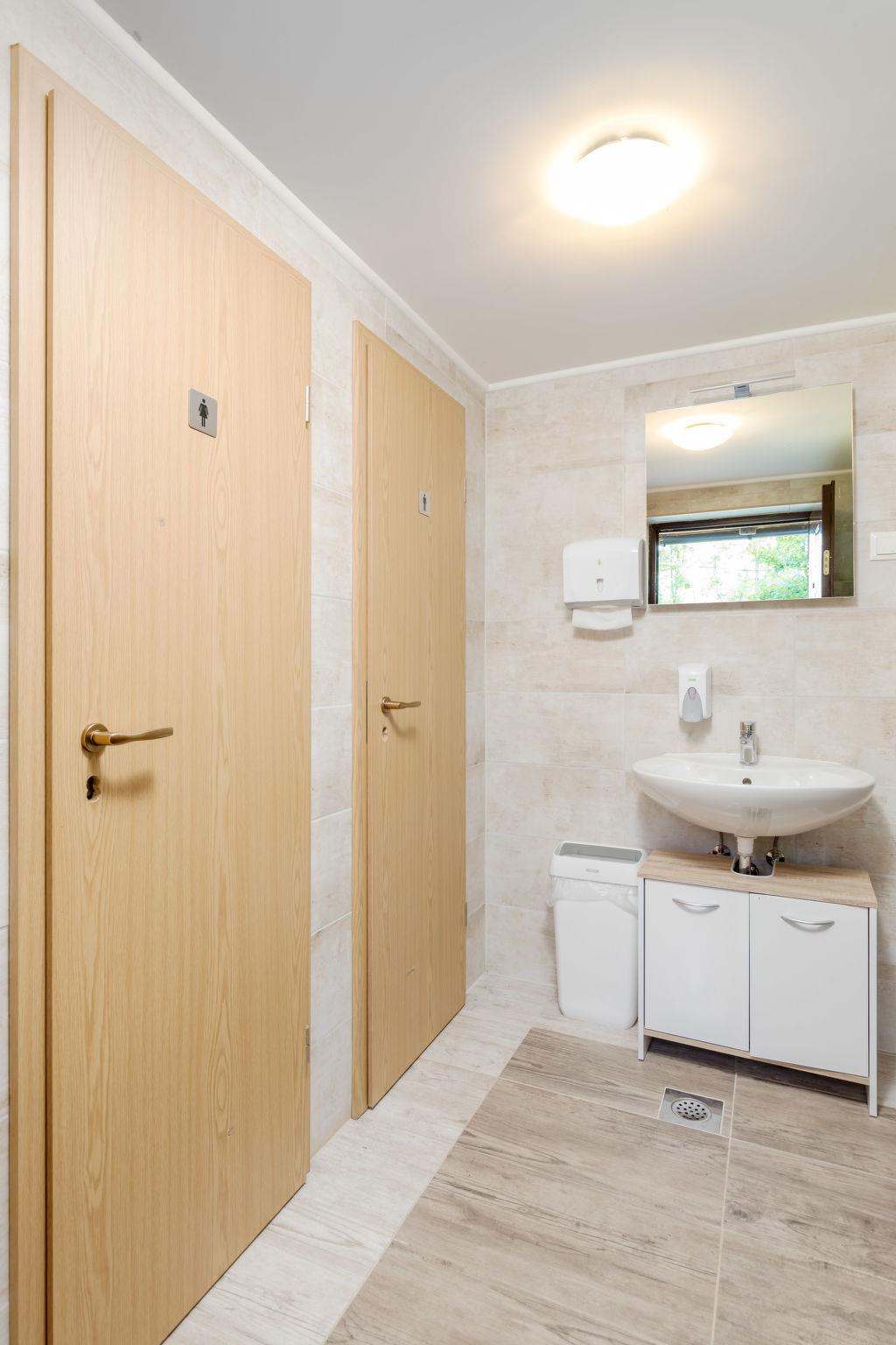 Large, comfortable country house "Relax Lika", 3 storeys, surrounded by trees and fields. In the hamlet Tomingaj 6 km from the centre of Gracac, in a secluded position, 45 km from the sea, 12 km from the lake, in the countryside, in the woods. Private: natural state property 2'000 m2, well-kept garden with wildlife garden and trees, swimming pool angular, heated (32 m2, depth 150 cm, seasonal availability: 01.May. - 01.Oct.) with internal staircase and salt-electrolysis pool-cleaning system. Outdoor shower, badminton, garden furniture, barbecue, children's playground (slide), pool maintenance by the owner/gardener. In the house: internet access, sauna, spa area, air conditioning, washing machine. Parking (for 5 cars) at the house on the premises. Shop 6 km, restaurant 5 km, bus stop 5 km, railway station 6 km, pebble beach "Rovanjska" 45 km, lake Ricica 12 km. Nearby attractions: Cerovacke Špilje 10 km, Jezero Ricice 12 km. Please note: car recommended. Groups of teenagers on request only. The owner lives on the same property. Animals in the neighbourhood. Motorway 50 km from the property. Railway line 6 km from the property. Airfield 70 km from the property. The wellness area on the ground floor consists of a steam and bio Finnish sauna, a heated hot tub for 6 people, warm benches, a cold barrel and two showers.