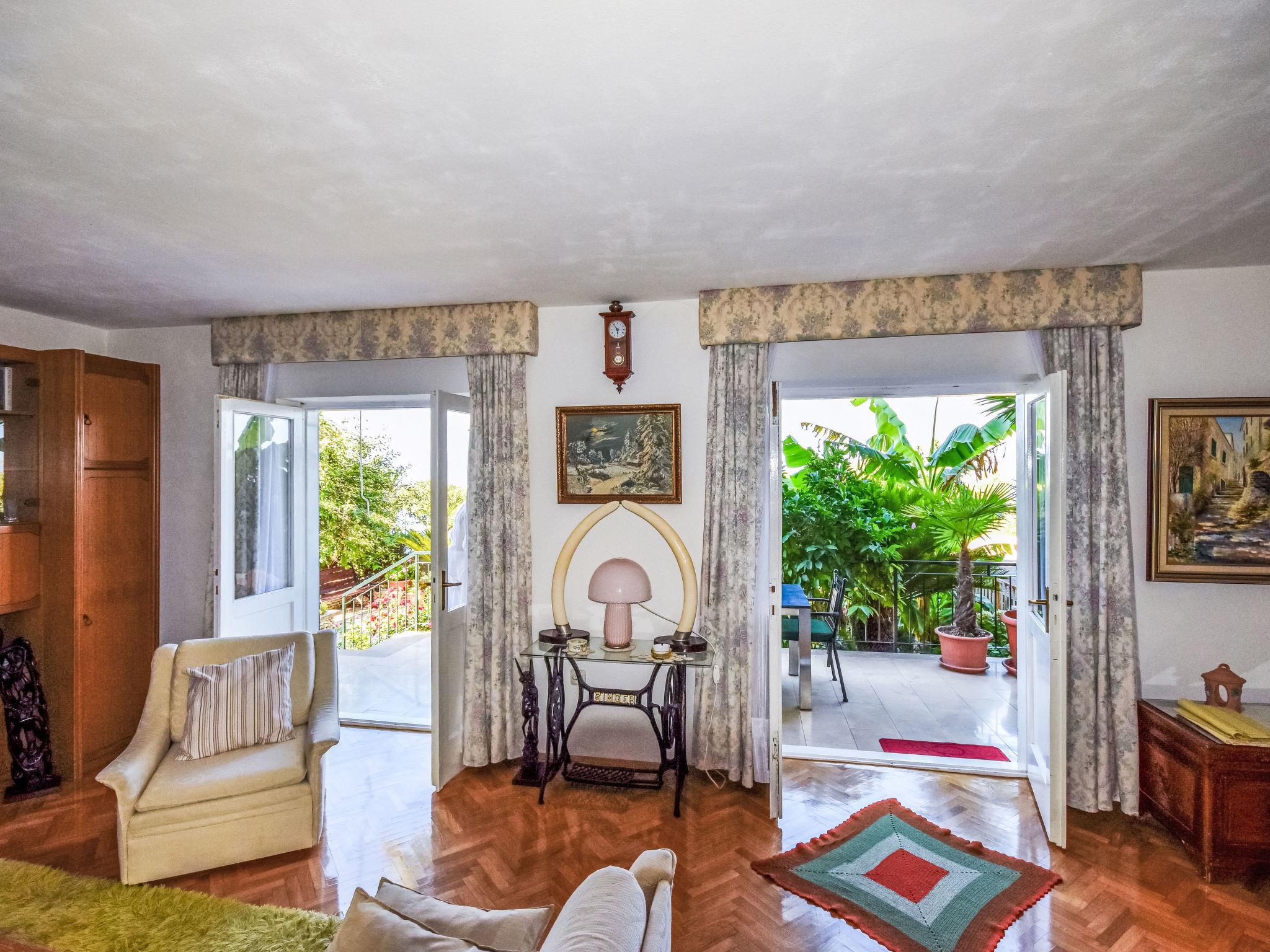5-room house 240 m2, south facing position. Living/sleeping room with 1 french bed (180 cm, length 200 cm), dining table, kitchen corner, shower/WC and satellite TV (flat screen), air conditioning. Exit to the terrace. Living/dining room with TV and air conditioning. Exit to the terrace. Kitchen (4 hot plates, oven, dishwasher, toaster, kettle, microwave, freezer) with dining table. Bath/WC. Upper floor: 1 room with 1 french bed (180 cm, length 200 cm), air conditioning. Exit to the balcony. 1 room with 2 beds (90 cm, length 200 cm), air conditioning. Exit to the balcony. 1 room with 2 beds (80 cm, length 190 cm). Bath/bidet/WC. No heating option. Balcony 10 m2, terrace 15 m2 partly roofed. Terrace furniture, barbecue, deck chairs. Beautiful view of the sea. Facilities: washing machine. Internet (WiFi, free). One house with living/dining area with exit to terrace and kitchen on the ground floor, 3 bedrooms on the first floor. The other house with living/sleeping room and open kitchen on the ground floor.