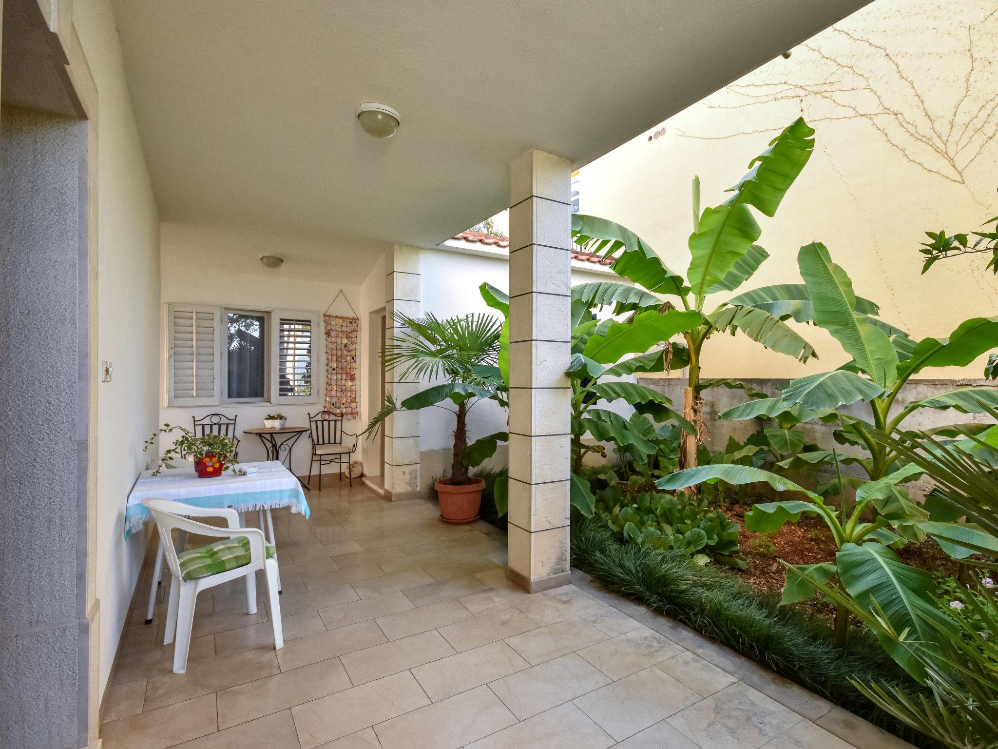 Single-family house "Lui", 2 storeys. In the resort 500 m from the centre of Gradac, in a sunny position, 5 m from the sea, 5 m from the beach, direct access to the beach, in a pedestrian area. Private: property 500 m2 (fenced), garden. In the house: internet access. Parking (for 2 cars) at 100 m. Supermarket 200 m, restaurant 5 m, 8 minute walk to the centre, bus stop 200 m, pebble beach 5 m. Please note: Loading and unloading of baggage is possible at the holiday house. The unit consists of 2 apartments, rented as one unit.