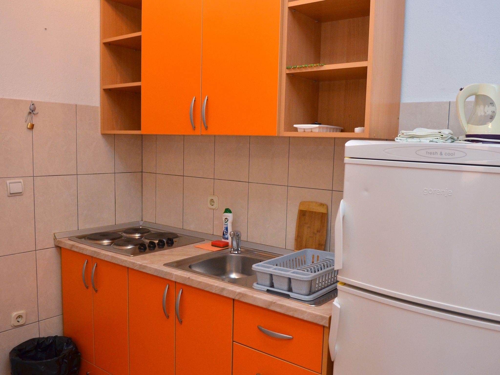 Ferienwohnung bietet Platz für 6 Gäste. Die Betten sind in Schlafzimmern, die es 2 gibt, und in Esszimmer, innerhalb einer Gesamtfläche von 33m2, angeordnet. Es ist erlaubt, Speisen auf dem Gemeinschafts-Grill vorzubereiten. Die reservierte Unterkunftseinheit verfügt über einen gemeinsame Terrasse. IM PREIS INBEGRIFFEN: Kurtaxe, Endreinigung, Klimatisierung, Parkplatz, Internet, Kinderbett. VERBINDLICHE ZUSÄTZLICHE KOSTEN: Aufzahlung für Kurzaufenthalte (prozentualer Zuschlag pro Nächtigungsanzahl: 30% - 1, 20% - 2, 10% - 3). UNVERBINDLICHE ZUSÄTZLICHE KOSTEN: Wäschewaschen (5,00 € Waschen). Die Verfügbarkeit zusätzlicher Dienstleistungen in Ihrem reservierten Termin und die Preise derselben (falls nicht aufgeführt) müssen im Voraus überprüft werden. Zusätzliche Dienstleistungen die in der Zahlungsaufforderung nicht aufgeführt sind werden direkt beim Vermieter bezahlt, angenommen der Gast nutzt auch diese. Ermäßigung auf den Grundpreis: Gratistag 21=19 (bei einem Aufenthalt von 21 Tagen oder mehr erhalten Sie 2 Gratistage für den Aufenthalt bis 31.12.26).
