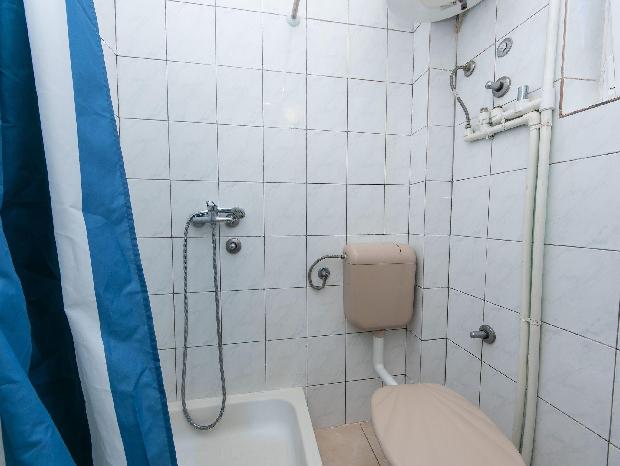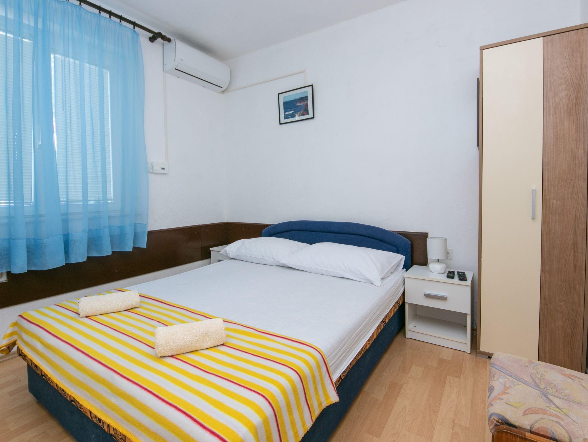 Studio bietet Platz für 2 Gäste. Die Betten sind in Schlafzimmern, die es 1 gibt, innerhalb einer Gesamtfläche von 16m2, angeordnet. Das Studio-Apartment bietet Meerblick. Es ist erlaubt, Speisen auf dem Gemeinschafts-Grill vorzubereiten. Die reservierte Unterkunftseinheit verfügt über einen gemeinsame Terrasse. IM PREIS INBEGRIFFEN: Kurtaxe, Endreinigung, Parkplatz, Internet, Bügeleisen, Bügelbrett, Föhn, tragbarer Grill. VERBINDLICHE ZUSÄTZLICHE KOSTEN: Aufzahlung für Kurzaufenthalte (prozentualer Zuschlag pro Nächtigungsanzahl: 30% - 1, 20% - 2, 10% - 3). UNVERBINDLICHE ZUSÄTZLICHE KOSTEN: Klimatisierung (0,80 € pro Stunde). Die Verfügbarkeit zusätzlicher Dienstleistungen in Ihrem reservierten Termin und die Preise derselben (falls nicht aufgeführt) müssen im Voraus überprüft werden. Zusätzliche Dienstleistungen die in der Zahlungsaufforderung nicht aufgeführt sind werden direkt beim Vermieter bezahlt, angenommen der Gast nutzt auch diese.