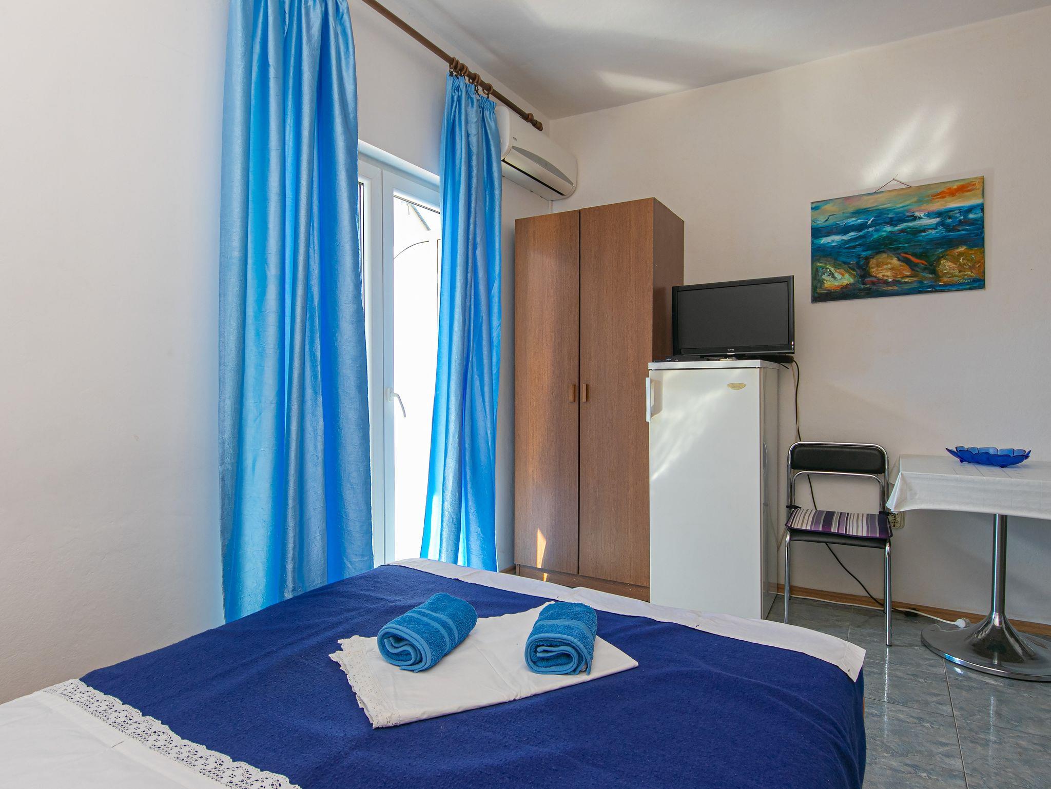 Studio bietet Platz für 2 Gäste. Die Betten sind in Schlafzimmern, die es 1 gibt, innerhalb einer Gesamtfläche von 16m2, angeordnet. Die Gäste haben einen eigenen Balkon zur Verfügung, auf der sie in warmen Sommernächten genießen können. Das Studio-Apartment bietet Meerblick. Es ist erlaubt, Speisen auf dem Gemeinschafts-Grill vorzubereiten. IM PREIS INBEGRIFFEN: Kurtaxe, Endreinigung, Klimatisierung, Parkplatz, Internet, Bügeleisen, Bügelbrett, Föhn. Die Verfügbarkeit zusätzlicher Dienstleistungen in Ihrem reservierten Termin und die Preise derselben (falls nicht aufgeführt) müssen im Voraus überprüft werden. Zusätzliche Dienstleistungen die in der Zahlungsaufforderung nicht aufgeführt sind werden direkt beim Vermieter bezahlt, angenommen der Gast nutzt auch diese. Ermäßigung auf den Grundpreis: Gratistag 14=13 (bei einem Aufenthalt von 14 Tagen oder mehr erhalten Sie einen Gratistag für den Aufenthalt bis 31.12.26).