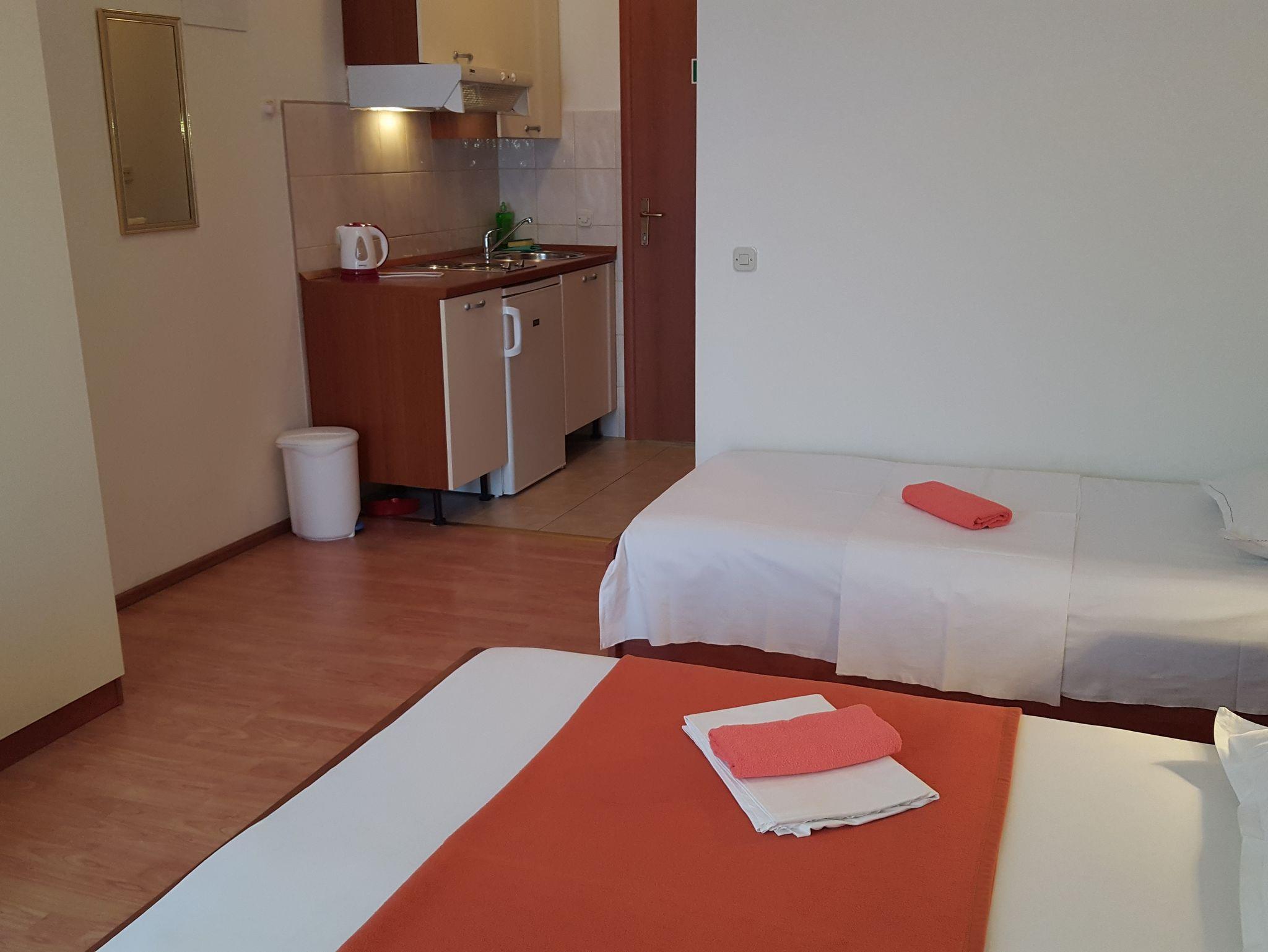 Studio bietet Platz für 3 Gäste. Die Betten sind in Schlafzimmern, die es 1 gibt, innerhalb einer Gesamtfläche von 26m2, angeordnet. Die Gäste haben eine eigene Terrasse zur Verfügung, auf der sie in warmen Sommernächten genießen können. Das Studio-Apartment bietet Meerblick. Es ist erlaubt, Speisen auf dem Gemeinschafts-Grill vorzubereiten. IM PREIS INBEGRIFFEN: Kurtaxe, Endreinigung, Parkplatz, Internet, Bügeleisen, Bügelbrett. VERBINDLICHE ZUSÄTZLICHE KOSTEN: Aufzahlung für Kurzaufenthalte (prozentualer Zuschlag pro Nächtigungsanzahl: 30% - 1, 20% - 2, 10% - 3). UNVERBINDLICHE ZUSÄTZLICHE KOSTEN: Wäschewaschen (5,00 € Waschen). Die Verfügbarkeit zusätzlicher Dienstleistungen in Ihrem reservierten Termin und die Preise derselben (falls nicht aufgeführt) müssen im Voraus überprüft werden. Zusätzliche Dienstleistungen die in der Zahlungsaufforderung nicht aufgeführt sind werden direkt beim Vermieter bezahlt, angenommen der Gast nutzt auch diese.