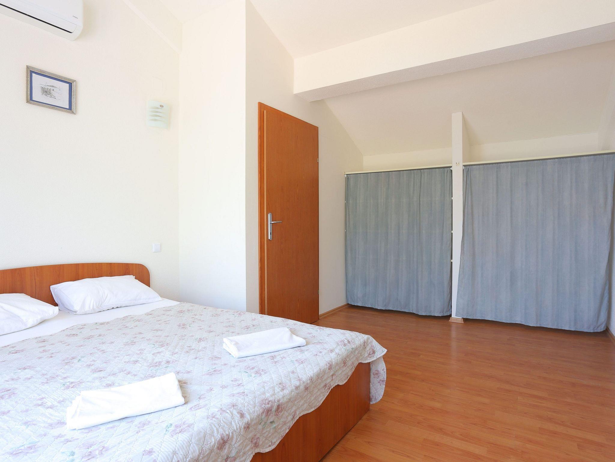 Ferienwohnung bietet Platz für 5 Gäste. Die Betten sind in Schlafzimmern, die es 1 gibt, und in Wohnzimmer, innerhalb einer Gesamtfläche von 40m2, angeordnet. Die Gäste haben einen eigenen Balkon zur Verfügung, auf der sie in warmen Sommernächten genießen können. Das Apartment bietet Meerblick. Es ist erlaubt, Speisen auf dem Gemeinschafts-Grill vorzubereiten. In der Unterkunftseinheit besteht die Möglichkeit des Mitbringens von Haustieren gegen Aufpreis. IM PREIS INBEGRIFFEN: Kurtaxe, Endreinigung, Klimatisierung, Internet, Bügeleisen, Bügelbrett, Föhn. UNVERBINDLICHE ZUSÄTZLICHE KOSTEN: Haustiere (5,00 € pro Nacht). Die Verfügbarkeit zusätzlicher Dienstleistungen in Ihrem reservierten Termin und die Preise derselben (falls nicht aufgeführt) müssen im Voraus überprüft werden. Zusätzliche Dienstleistungen die in der Zahlungsaufforderung nicht aufgeführt sind werden direkt beim Vermieter bezahlt, angenommen der Gast nutzt auch diese.