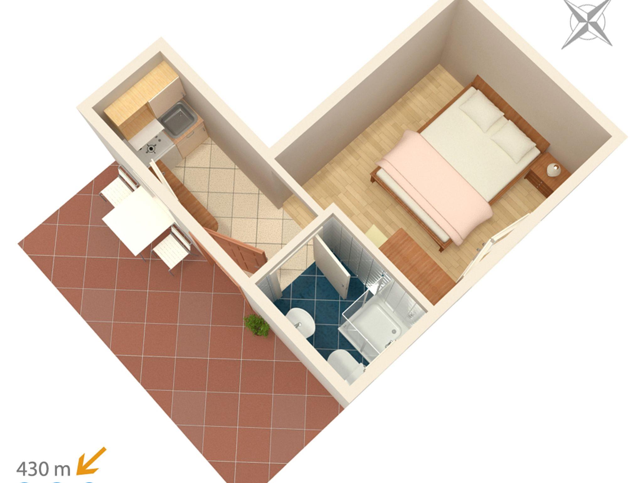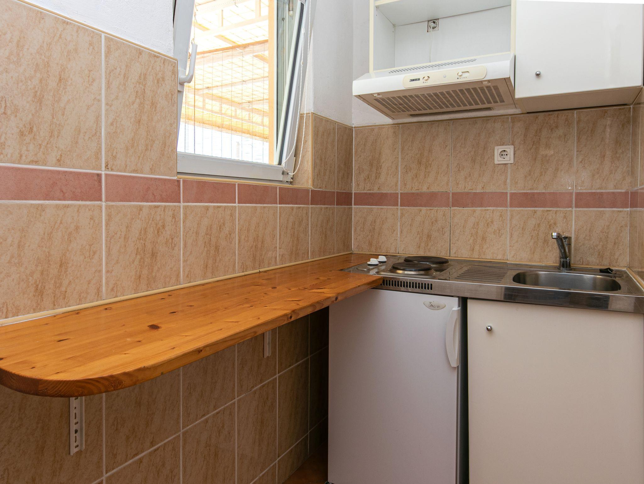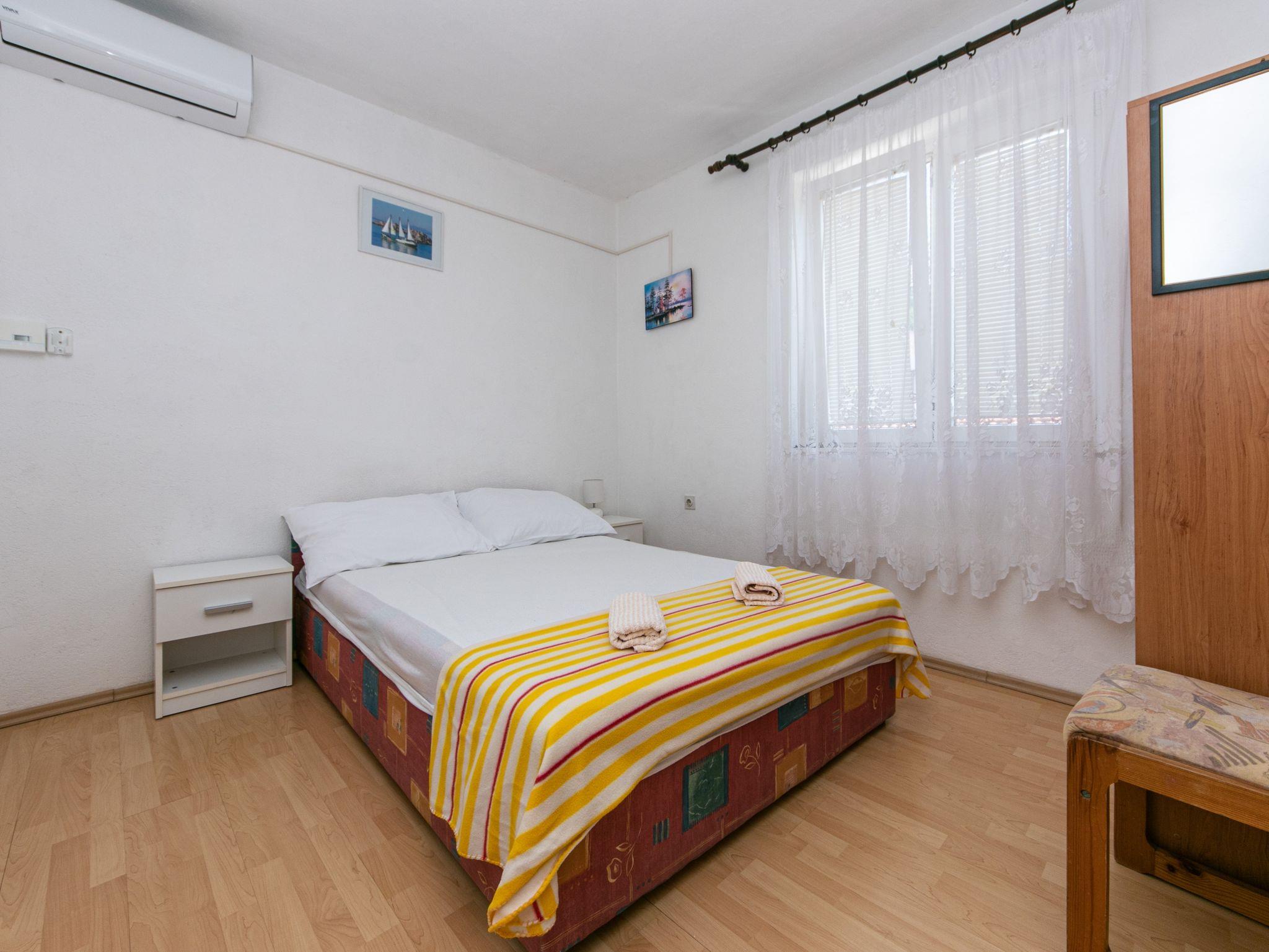 Studio bietet Platz für 2 Gäste. Die Betten sind in Schlafzimmern, die es 1 gibt, innerhalb einer Gesamtfläche von 15m2, angeordnet. Das Studio-Apartment bietet Meerblick. Es ist erlaubt, Speisen auf dem Gemeinschafts-Grill vorzubereiten. Die reservierte Unterkunftseinheit verfügt über einen gemeinsame Terrasse. IM PREIS INBEGRIFFEN: Kurtaxe, Endreinigung, Parkplatz, Internet, Bügeleisen, Bügelbrett, Föhn, tragbarer Grill. VERBINDLICHE ZUSÄTZLICHE KOSTEN: Aufzahlung für Kurzaufenthalte (prozentualer Zuschlag pro Nächtigungsanzahl: 30% - 1, 20% - 2, 10% - 3). UNVERBINDLICHE ZUSÄTZLICHE KOSTEN: Klimatisierung (0,80 € pro Stunde). Die Verfügbarkeit zusätzlicher Dienstleistungen in Ihrem reservierten Termin und die Preise derselben (falls nicht aufgeführt) müssen im Voraus überprüft werden. Zusätzliche Dienstleistungen die in der Zahlungsaufforderung nicht aufgeführt sind werden direkt beim Vermieter bezahlt, angenommen der Gast nutzt auch diese.