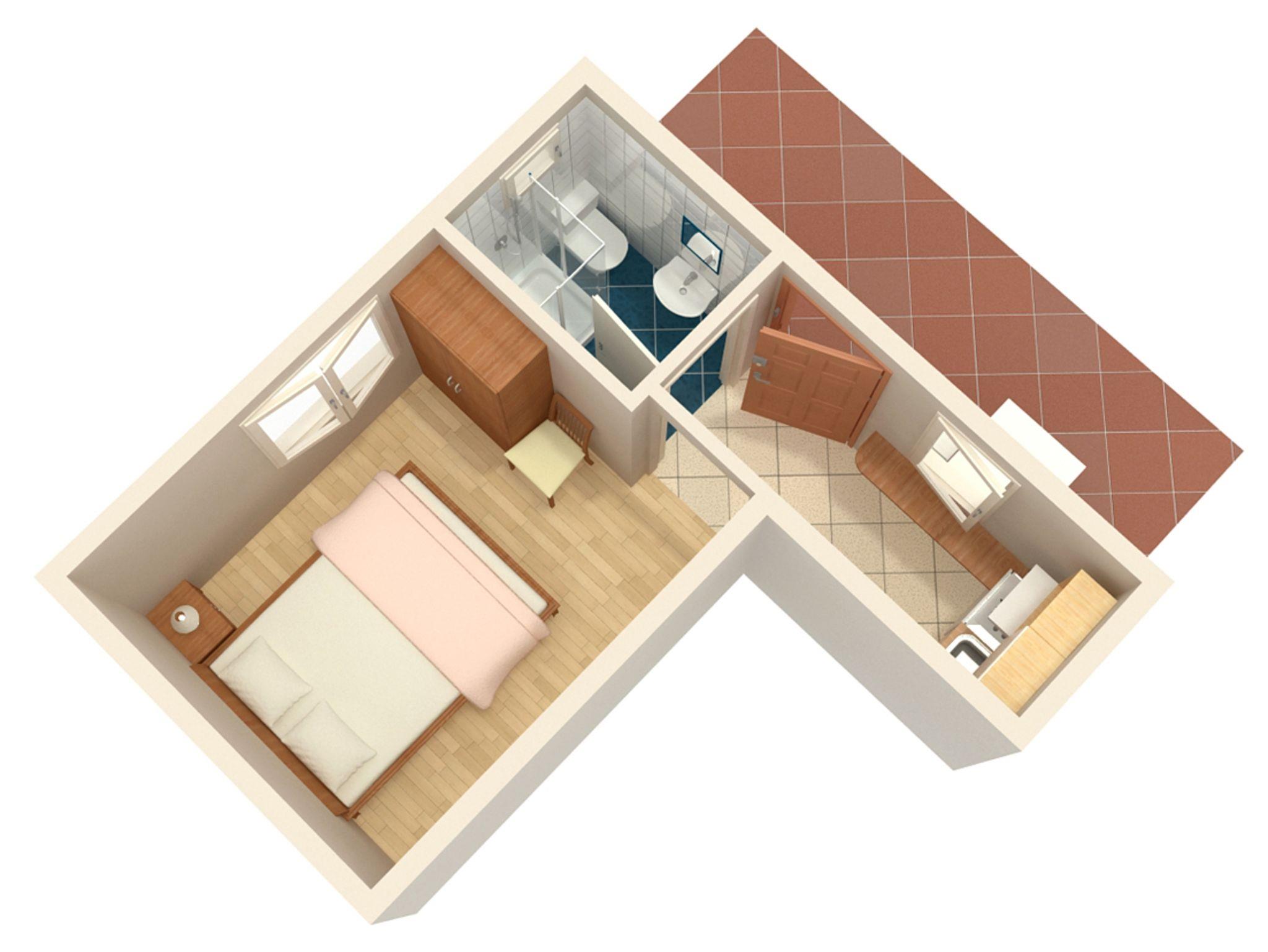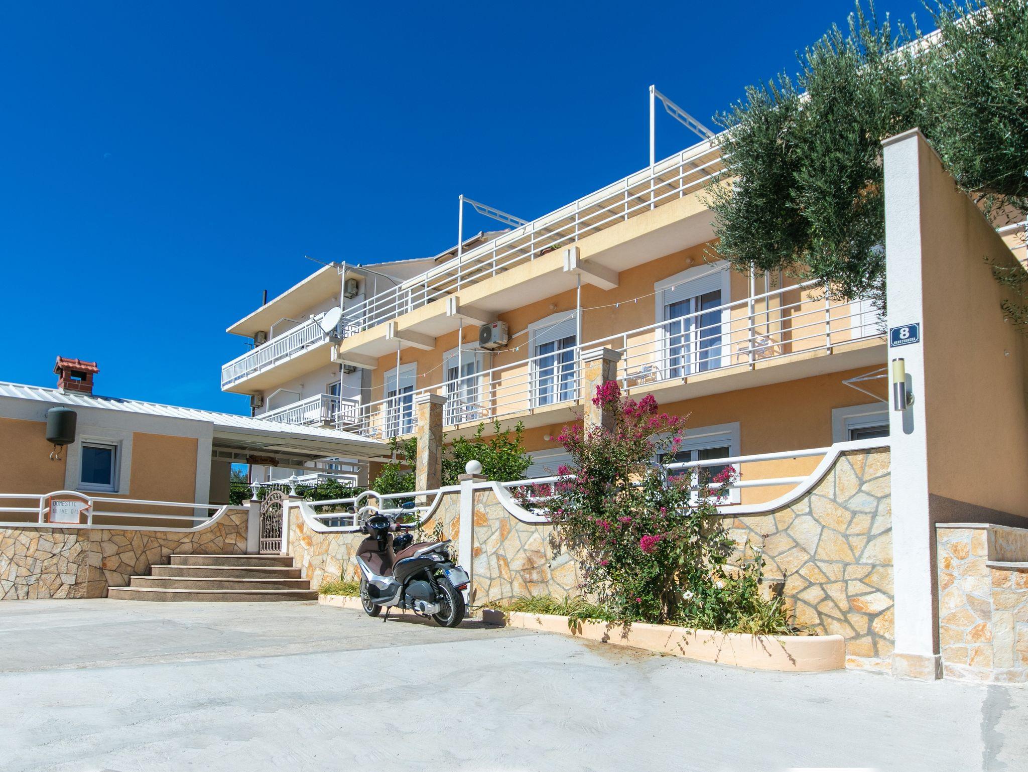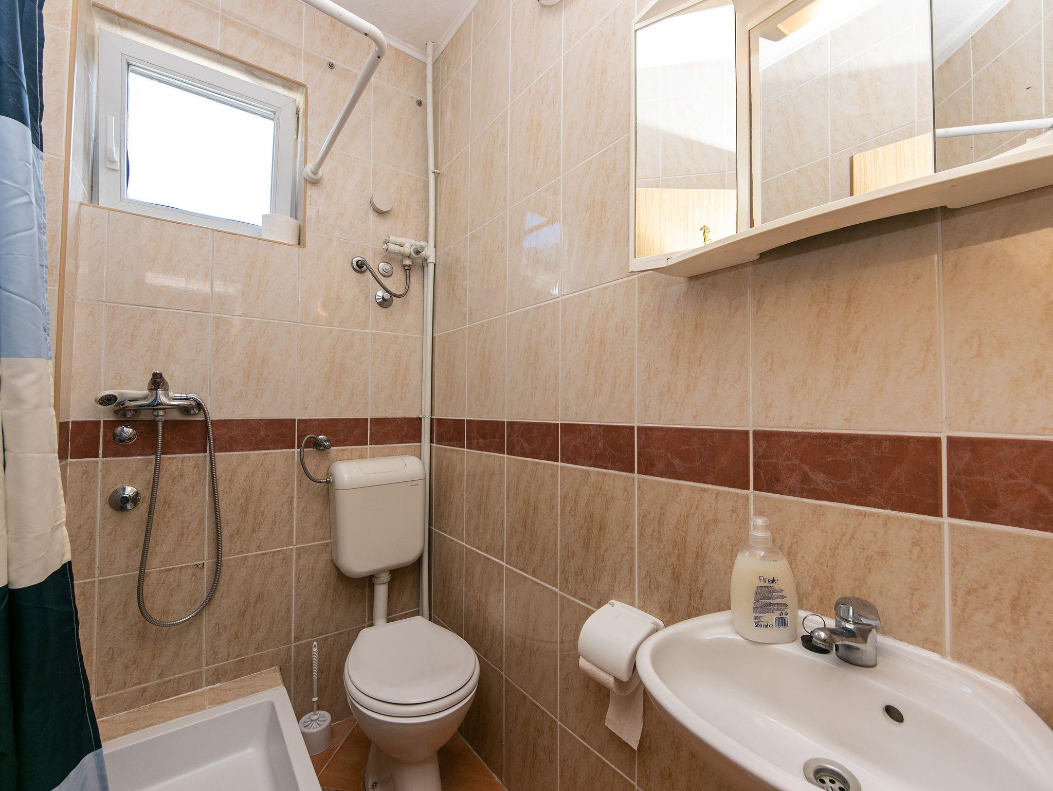 Studio bietet Platz für 2 Gäste. Die Betten sind in Schlafzimmern, die es 1 gibt, innerhalb einer Gesamtfläche von 15m2, angeordnet. Das Studio-Apartment bietet Meerblick. Es ist erlaubt, Speisen auf dem Gemeinschafts-Grill vorzubereiten. Die reservierte Unterkunftseinheit verfügt über einen gemeinsame Terrasse. IM PREIS INBEGRIFFEN: Kurtaxe, Endreinigung, Parkplatz, Internet, Bügeleisen, Bügelbrett, Föhn, tragbarer Grill. VERBINDLICHE ZUSÄTZLICHE KOSTEN: Aufzahlung für Kurzaufenthalte (prozentualer Zuschlag pro Nächtigungsanzahl: 30% - 1, 20% - 2, 10% - 3). UNVERBINDLICHE ZUSÄTZLICHE KOSTEN: Klimatisierung (0,80 € pro Stunde). Die Verfügbarkeit zusätzlicher Dienstleistungen in Ihrem reservierten Termin und die Preise derselben (falls nicht aufgeführt) müssen im Voraus überprüft werden. Zusätzliche Dienstleistungen die in der Zahlungsaufforderung nicht aufgeführt sind werden direkt beim Vermieter bezahlt, angenommen der Gast nutzt auch diese.