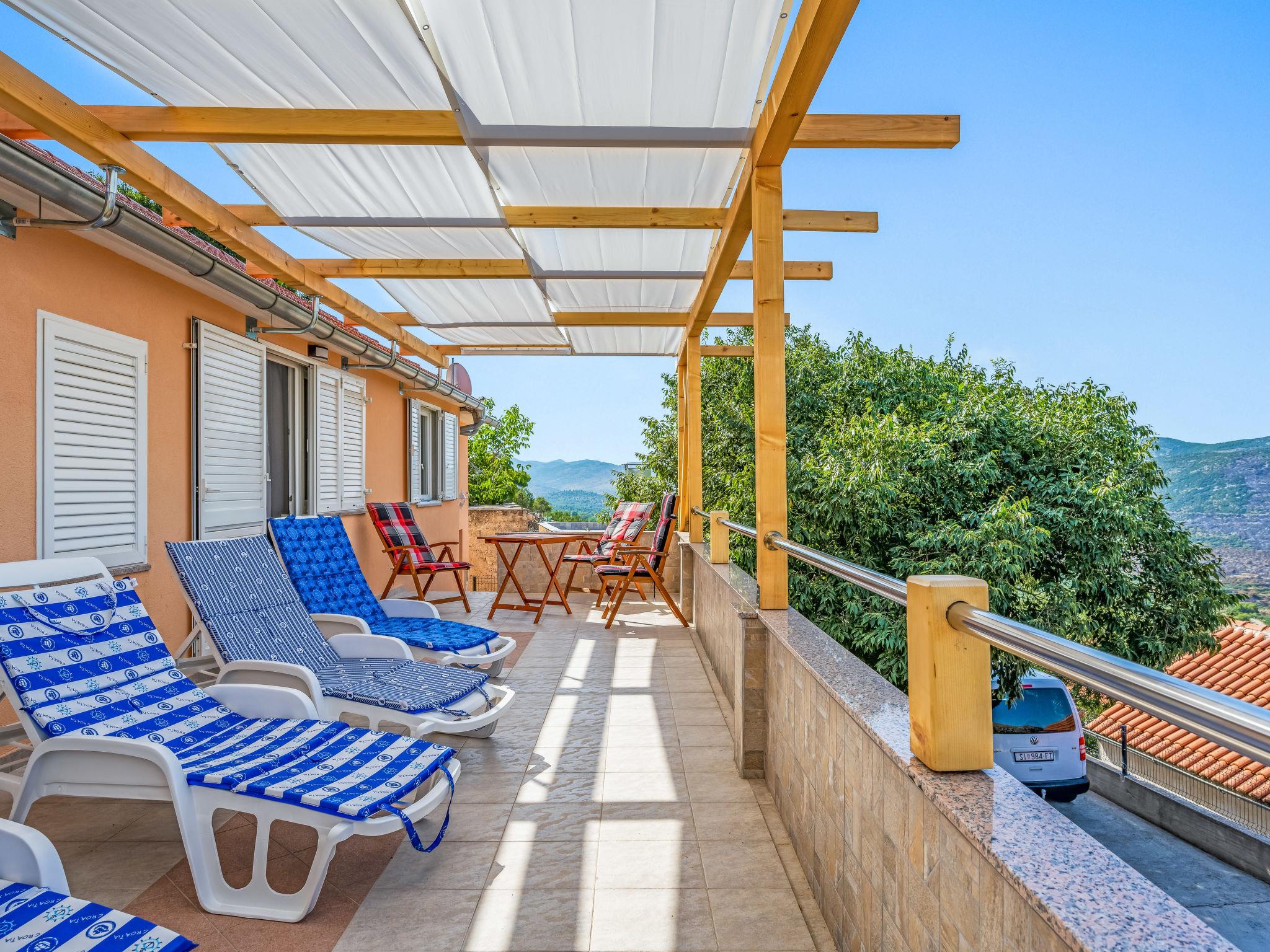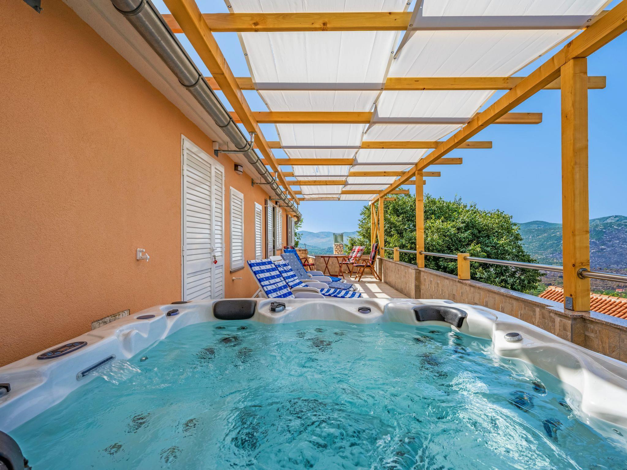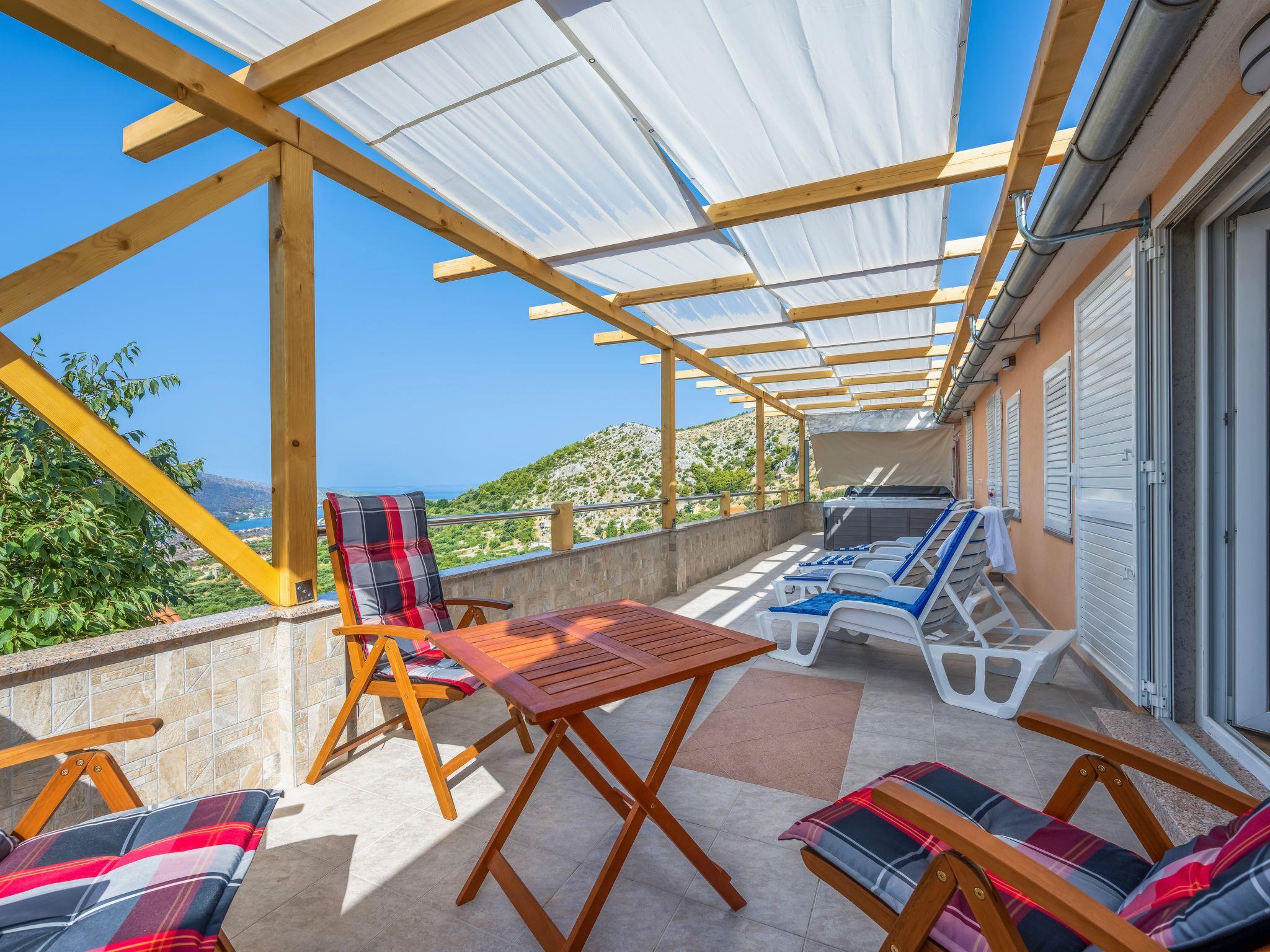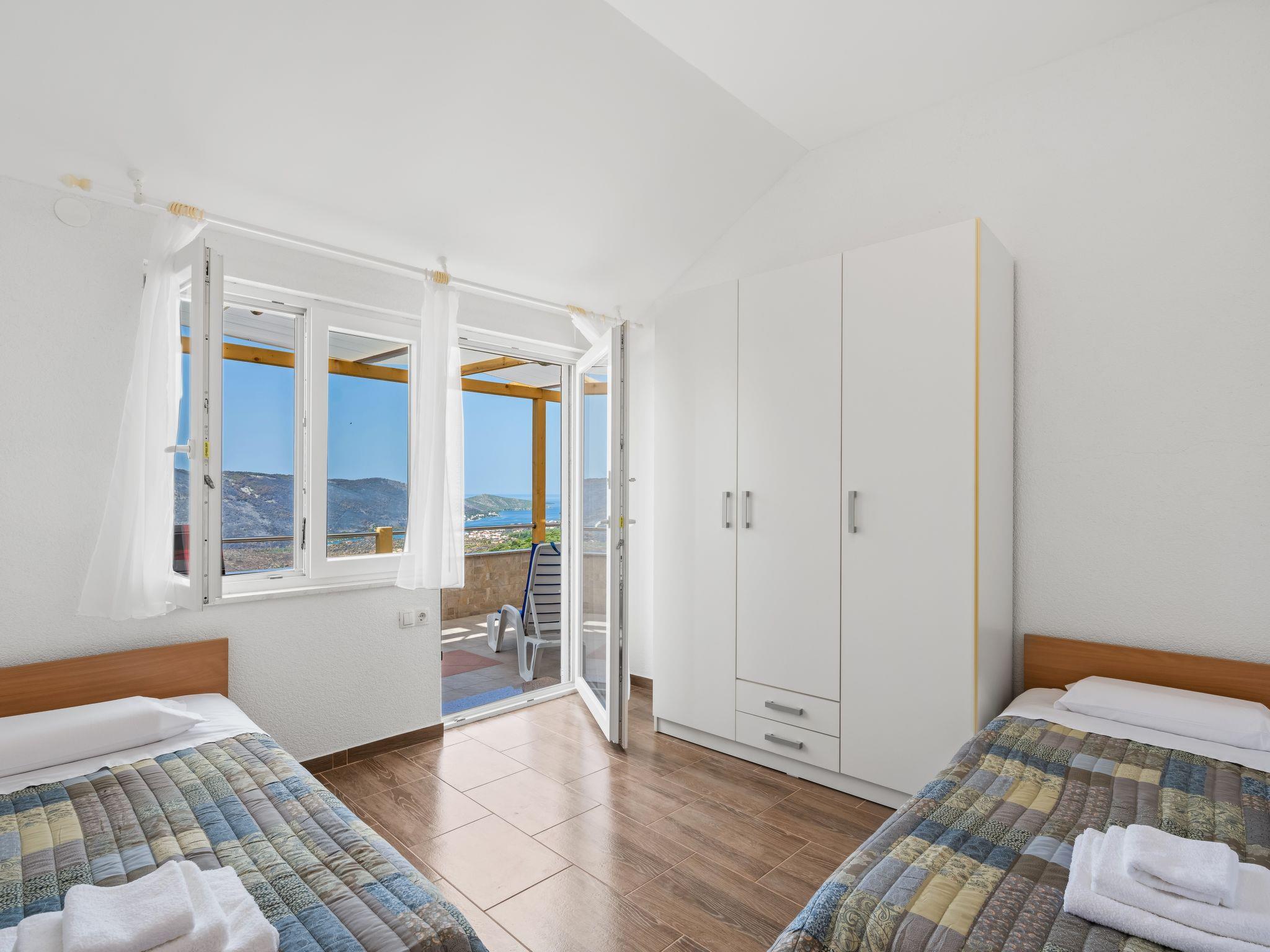 Semi-detached house "Panoramic View", 2 storeys. In a quiet, sunny position, 3 km from the sea, 3 km from the beach. Private: property 740 m2. Outdoor shower, hot tub, terrace (30 m2), garden furniture, barbecue house. In the house: internet access, washing machine. Parking (for 2 cars) at the house. Shop 3 km, restaurant 2.7 km, bus stop 850 m, pebble beach 3 km.