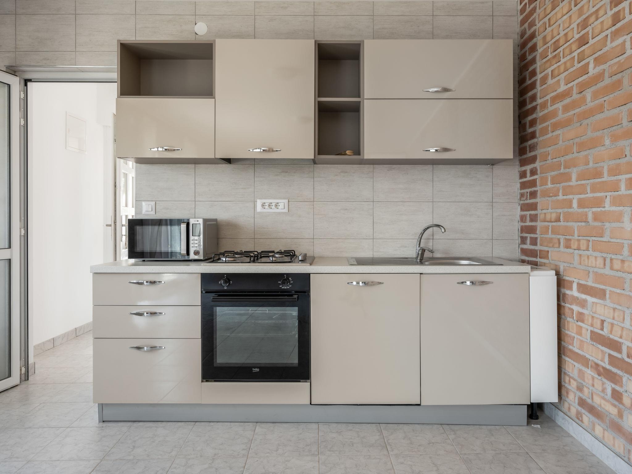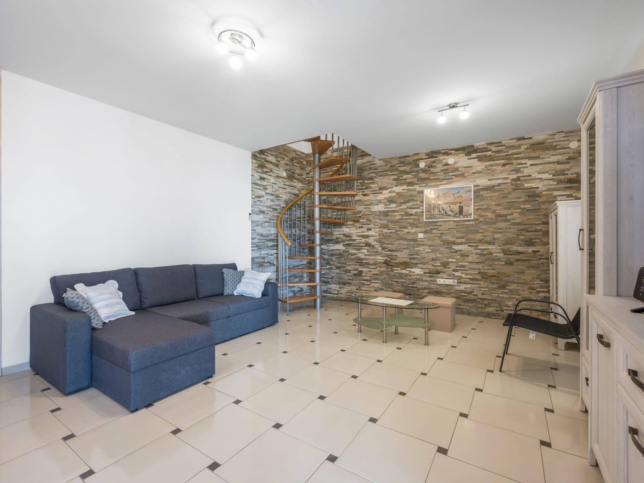 3-room semi-detached house 54 m2 on 2 levels, south-west facing position. Living/dining room with satellite TV (flat screen), air conditioning. Exit to the terrace. Open kitchen (1 hot plate, oven, dishwasher, 3 gas rings, toaster, kettle, microwave, freezer, electric coffee machine). Upper floor: (spiral staircase) entrance hall with air conditioning. 1 room with 2 beds (90 cm, length 200 cm). Exit to the terrace. 1 room with 1 french bed (160 cm, length 200 cm). Exit to the terrace. Bath/WC. Forced-air heating. Terrace 30 m2. Terrace furniture, deck chairs. Facilities: iron, children's high chair, baby cot, hair dryer. Internet (WiFi, free).