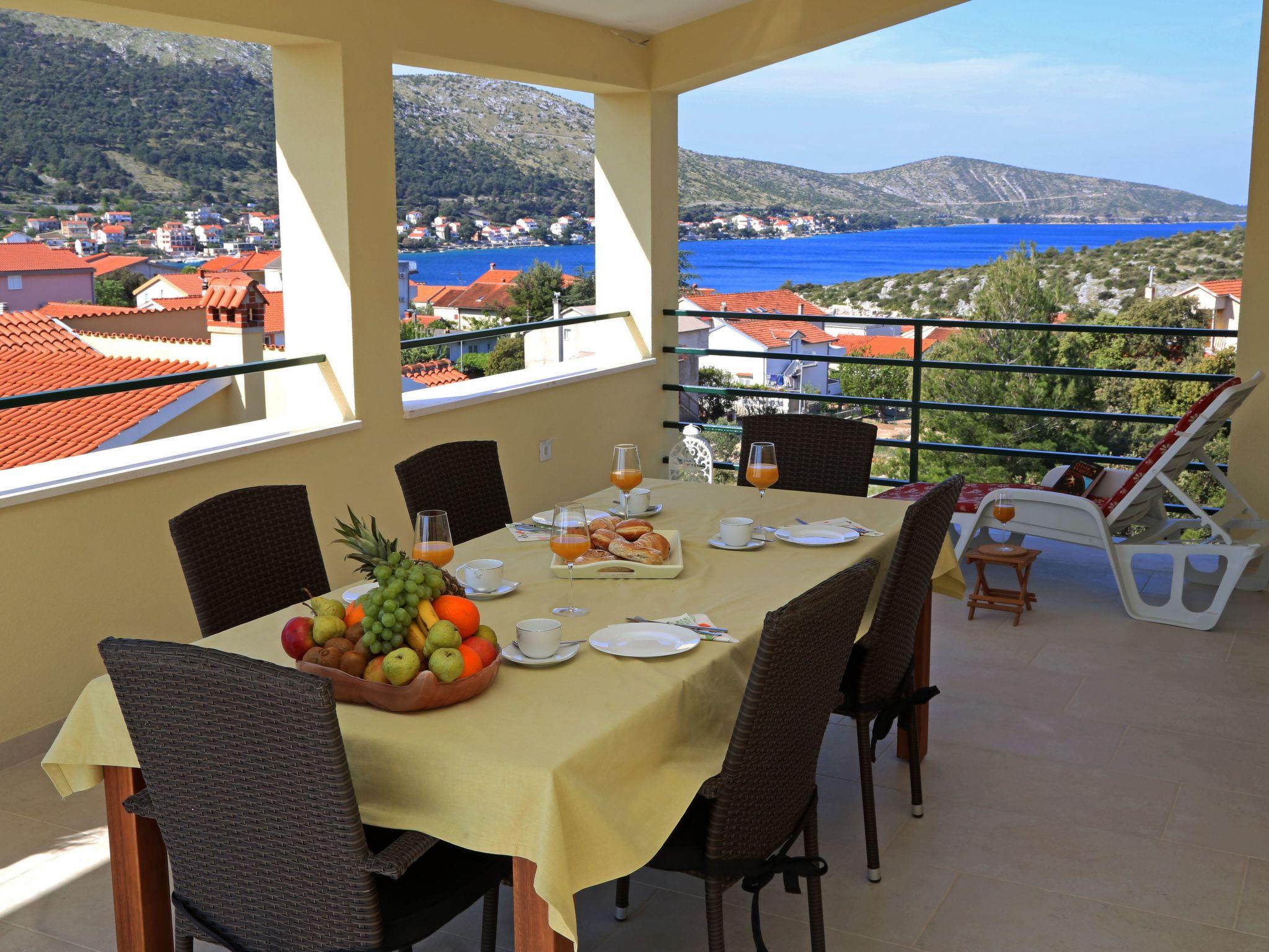 In front of the living room is a large and spacious balcony (30m2) with a big dining table and a deck chair to relax on. The balcony offers a view on the beautiful coast of Grebaštica, nearby islands and beautiful azure open sea. There is a children's playground in the yard.