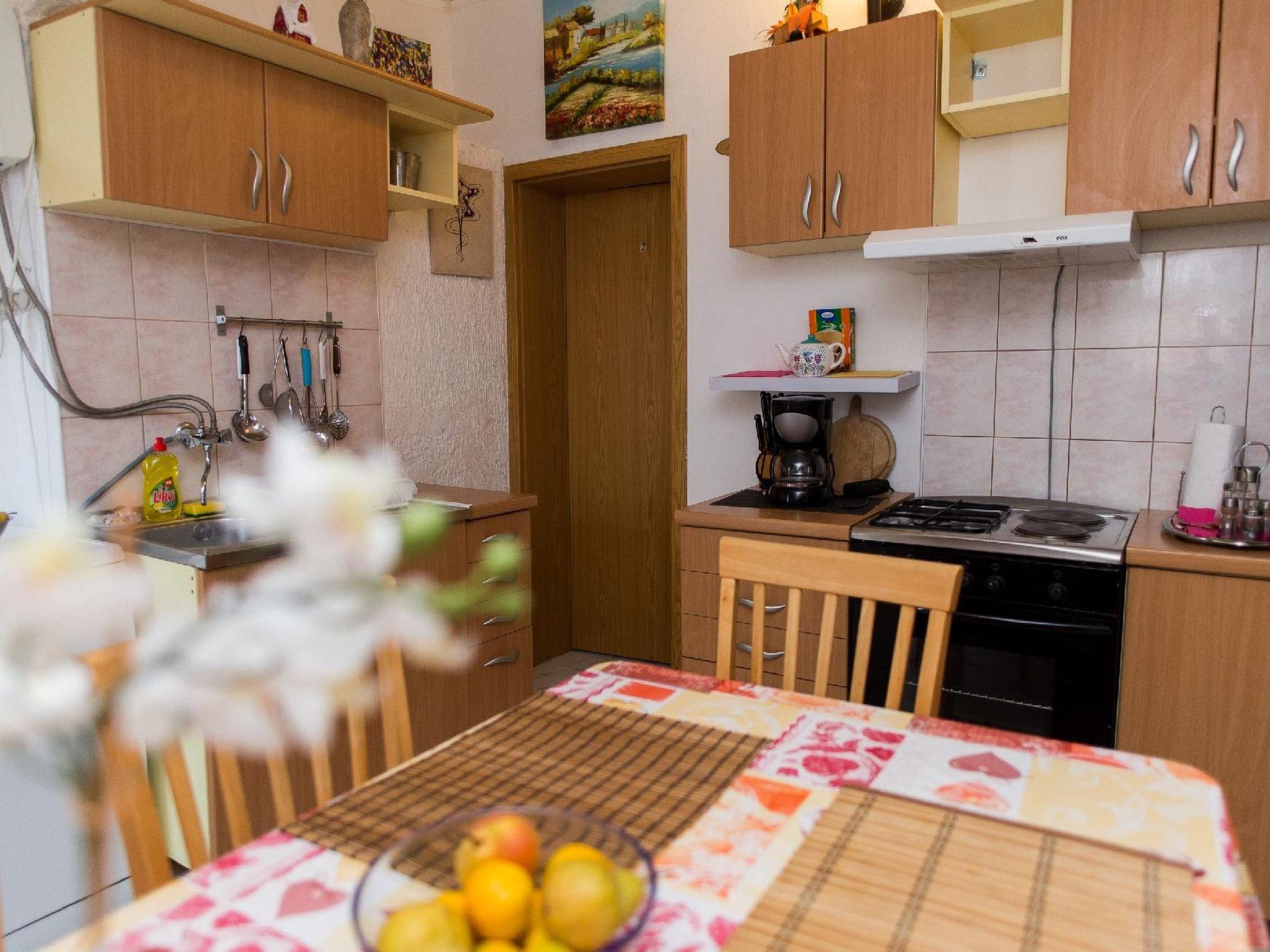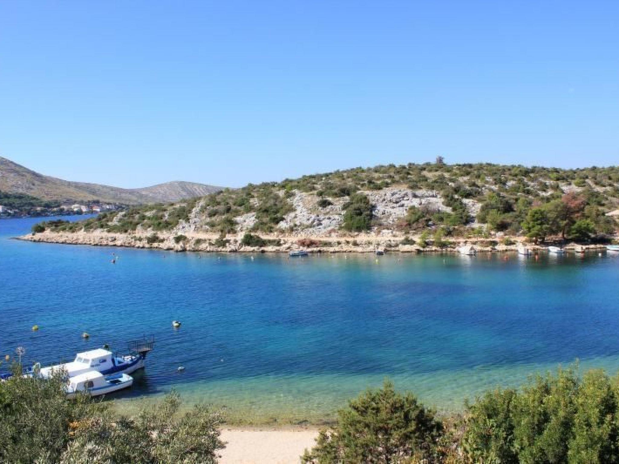 Grebastica is a small tourist place between Sibenik and Primosten, 10 km away, and the holiday home is located in a bay surrounded by forest. The sea is crystal clear and azure blue. Very nice beach ideal for both children and adults. You can reach the beach/pebbles by simply walking through the courtyard garden and you can swim in really crystal clear water. Quiet location, only a few minutes walk to the beach, centre/market, shops, restaurants, pizzeria. This cosy apartment is located on the 1st floor, comfortable 48 sqm. Holiday flat for 4 persons, covered terrace/loggia. 2 bedrooms, living room/kitchen, TV-SAT, air conditioning, bath/shower/cabin/WC, additionally a second toilet/WC in rooms, fully equipped kitchen. 2 gas hobs, 4 ring hob, oven, fridge/freezer, coffee machine, hoover, toaster. The following additional costs are included: bed linen, weekly change, small towels and kitchen towels, energy, water, air conditioning, final cleaning, car park, boat mooring, washing machine and gas barbecue are easy to use. In the courtyard - ground floor there is a Yacuzzi with water temperature up to 40 degrees C possible and bubbling water. Ideal in the low season, the apartment has a 4-star national category. The landlord also offers you a barbecue, fish on olive oil and wine when you book holiday flat A 2. Promenade near the beach about 5 km-walk with dog. Nearby are the old towns of Sibenik, Primosten, Trogir, Split, and the Krka National Park with waterfalls and the island of Kornati. A few interesting sights in the neighbourhood: the monastery of Sv. Luce, the church of Marija from the 15th century. Cycling routes Grebastica-Primosten 31.5 km with route markings. Boat mooring available. Directions: google maps Villa Polajner When you arrive at the shopping centre, please turn right at "Pizzeria Mali Lovre" and after about 200 m you will reach the holiday home Villa Polajner.