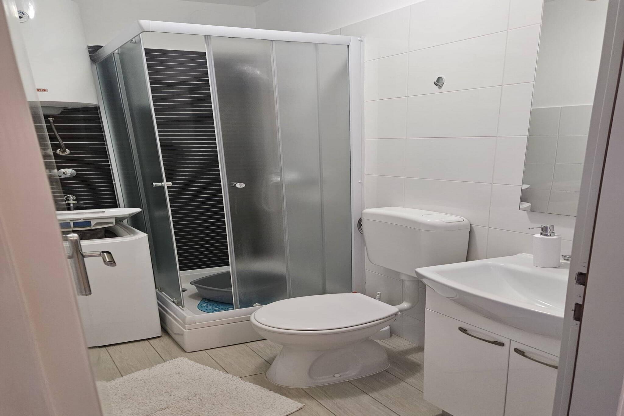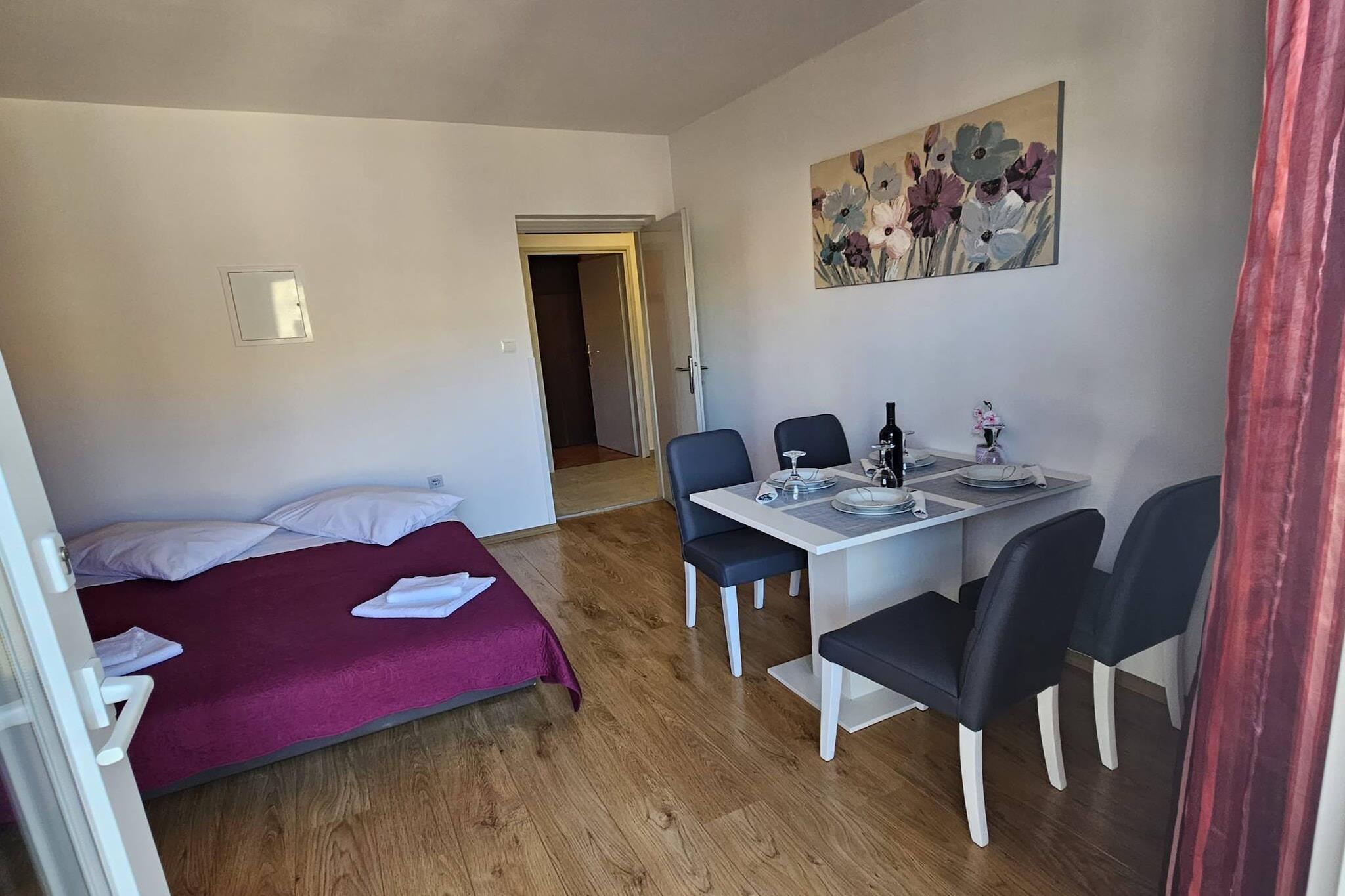 Hyggelig lejlighed beliggende i den fredelige kystby Grebaštica, dette feriehus med 1 soveværelse er et indbydende tilflugtssted for op til fire gæster. Sovearrangementerne omfatter en queen-size seng i soveværelset og en dobbelt sovesofa i opholdsområdet, hvilket gør den ideel til små familier eller par. Lejligheden tillader ikke kæledyr eller rygning indendørs og er udstyret med gratis aircondition og WiFi. En barneseng, strygejern og strygebræt er tilgængelige efter anmodning, og gæsterne får en gratis parkeringsplads på stedet. Lejligheden ligger kun 700 meter fra sand- og klippestranden Gusca og tilbyder en bekvem base for at nyde Adriaterhavskysten. I nærheden vil gæsterne finde et supermarked, restauranter og caféer til daglige behov, mens familievenlige attraktioner såsom et lokalt vandland og den bemærkelsesværdige Krka Nationalpark er inden for rækkevidde. Den naturskønne Lake Dragon's Eye tilbyder også en fredfyldt flugt, perfekt til en afslappet eftermiddag ved vandet. Lejligheden har et funktionelt køkken med komfur, køleskab, fryser og væsentligt køkkenudstyr, hvilket giver mulighed for nem selvforplejning. Gæsterne kan nyde udendørs spisning i det fælles haveområde, som omfatter en grill og havemøbler. Familier med børn vil sætte pris på den fælles legeplads, og for et strejf af eventyr kan der arrangeres guidede quad-cykler med ejendommens ejer.