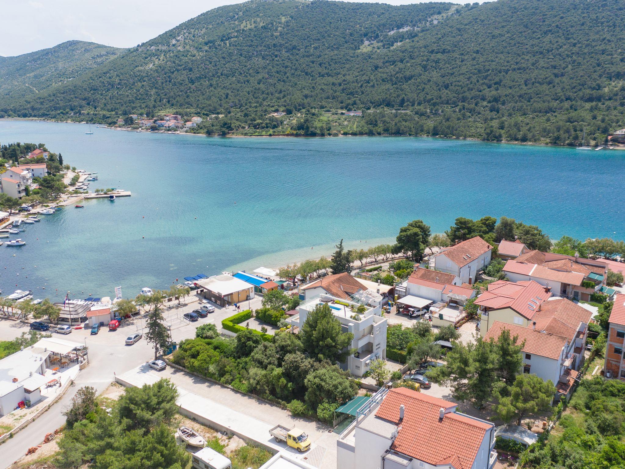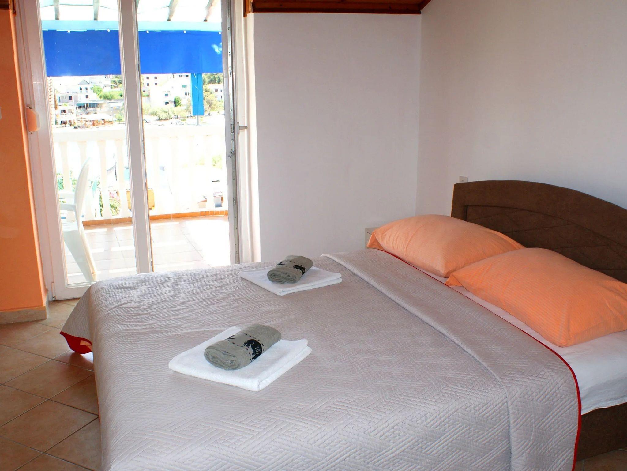 Ferienwohnung bietet Platz für 4 Gäste. Die Betten sind in Schlafzimmern, die es 2 gibt, innerhalb einer Gesamtfläche von 39m2, angeordnet. Die Gäste haben eine eigene Terrasse zur Verfügung, auf der sie in warmen Sommernächten genießen können. Das Apartment bietet Meerblick. Es ist erlaubt, Speisen auf dem Gemeinschafts-Grill vorzubereiten. IM PREIS INBEGRIFFEN: Kurtaxe, Endreinigung, Klimatisierung, Parkplatz, Internet, Wäschewaschen, Bootsanlegeplatz, Kinderbett, Bügeleisen, Bügelbrett, Föhn, tragbarer Grill. VERBINDLICHE ZUSÄTZLICHE KOSTEN: Aufzahlung für Kurzaufenthalte (prozentualer Zuschlag pro Nächtigungsanzahl: 30% - 1, 20% - 2, 10% - 3). UNVERBINDLICHE ZUSÄTZLICHE KOSTEN: Zusatzbett (8,00 € pro Nacht). Die Verfügbarkeit zusätzlicher Dienstleistungen in Ihrem reservierten Termin und die Preise derselben (falls nicht aufgeführt) müssen im Voraus überprüft werden. Zusätzliche Dienstleistungen die in der Zahlungsaufforderung nicht aufgeführt sind werden direkt beim Vermieter bezahlt, angenommen der Gast nutzt auch diese. Ermäßigung auf den Grundpreis: Gratistag 14=13 (bei einem Aufenthalt von 14 Tagen oder mehr erhalten Sie einen Gratistag für den Aufenthalt bis 31.12.26).