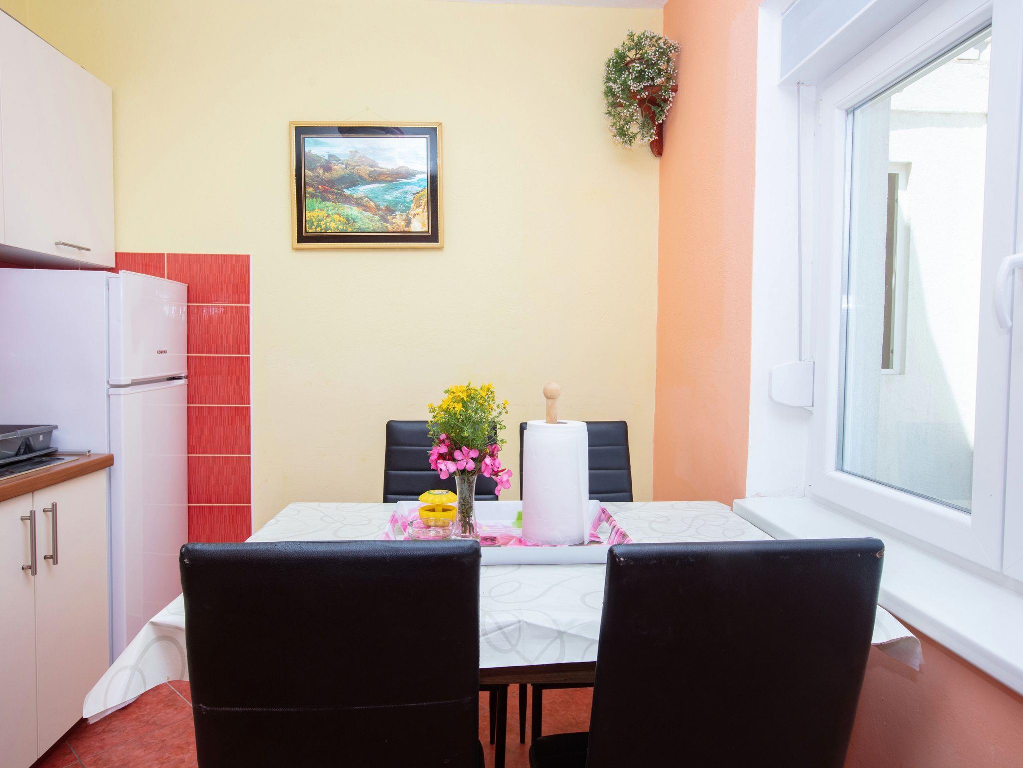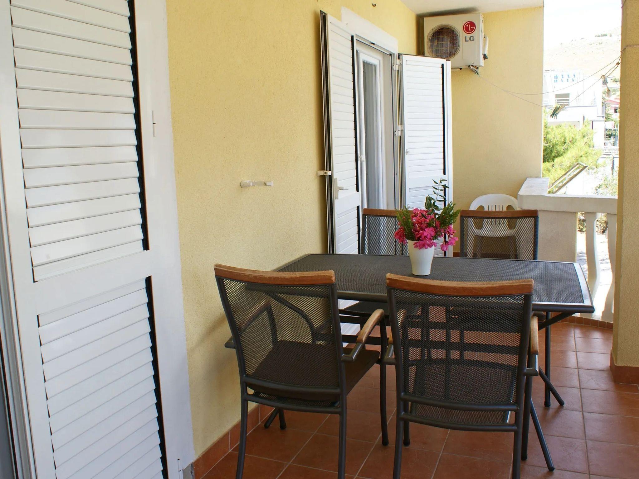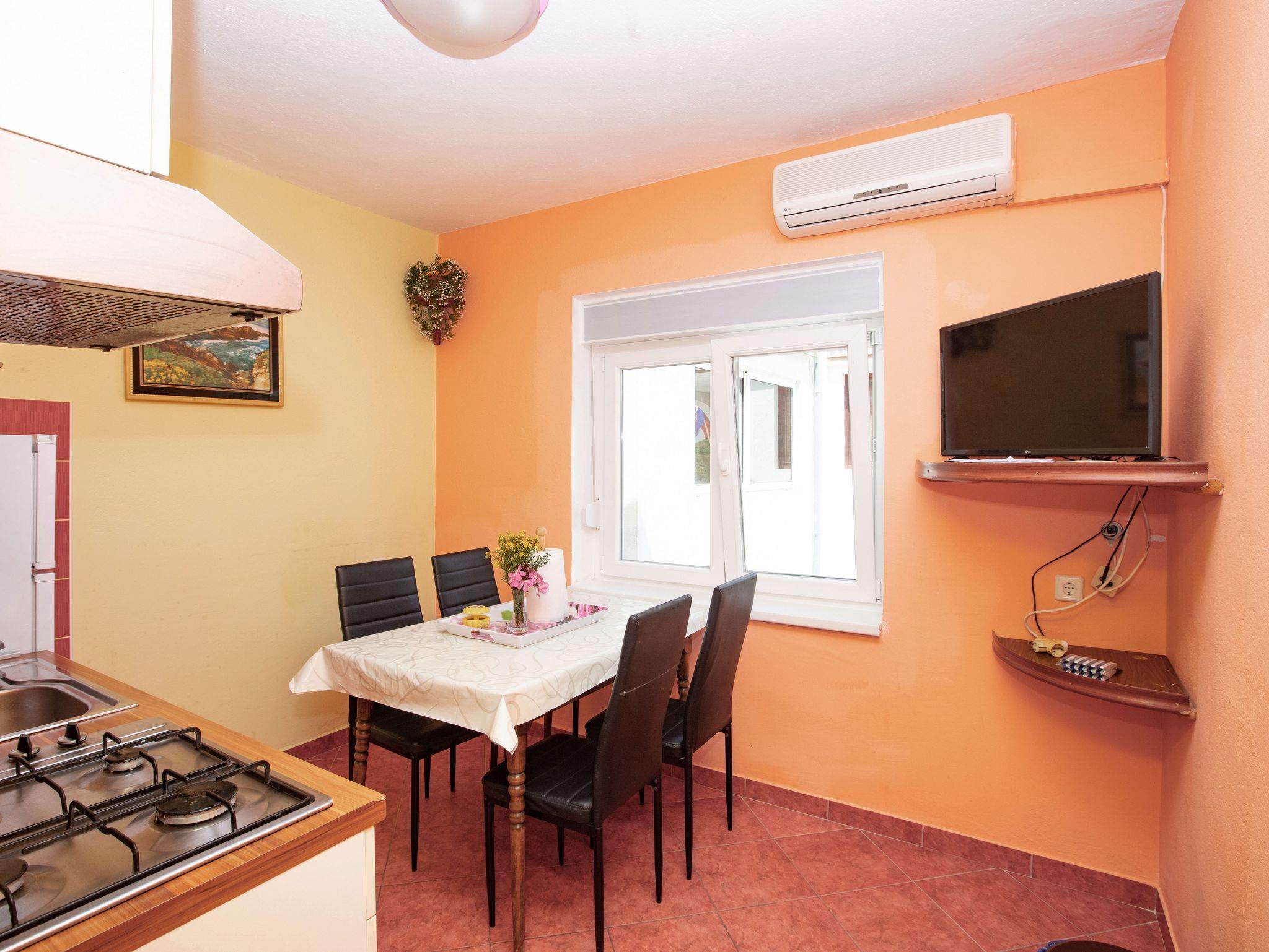 Ferienwohnung bietet Platz für 4 Gäste. Die Betten sind in Schlafzimmern, die es 2 gibt, innerhalb einer Gesamtfläche von 39m2, angeordnet. Die Gäste haben eine eigene Terrasse zur Verfügung, auf der sie in warmen Sommernächten genießen können. Das Apartment bietet Meerblick. Es ist erlaubt, Speisen auf dem Gemeinschafts-Grill vorzubereiten. IM PREIS INBEGRIFFEN: Kurtaxe, Endreinigung, Klimatisierung, Parkplatz, Internet, Wäschewaschen, Bootsanlegeplatz, Kinderbett, Bügeleisen, Bügelbrett, Föhn, tragbarer Grill. VERBINDLICHE ZUSÄTZLICHE KOSTEN: Aufzahlung für Kurzaufenthalte (prozentualer Zuschlag pro Nächtigungsanzahl: 30% - 1, 20% - 2, 10% - 3). UNVERBINDLICHE ZUSÄTZLICHE KOSTEN: Zusatzbett (8,00 € pro Nacht). Die Verfügbarkeit zusätzlicher Dienstleistungen in Ihrem reservierten Termin und die Preise derselben (falls nicht aufgeführt) müssen im Voraus überprüft werden. Zusätzliche Dienstleistungen die in der Zahlungsaufforderung nicht aufgeführt sind werden direkt beim Vermieter bezahlt, angenommen der Gast nutzt auch diese. Ermäßigung auf den Grundpreis: Gratistag 14=13 (bei einem Aufenthalt von 14 Tagen oder mehr erhalten Sie einen Gratistag für den Aufenthalt bis 31.12.26).