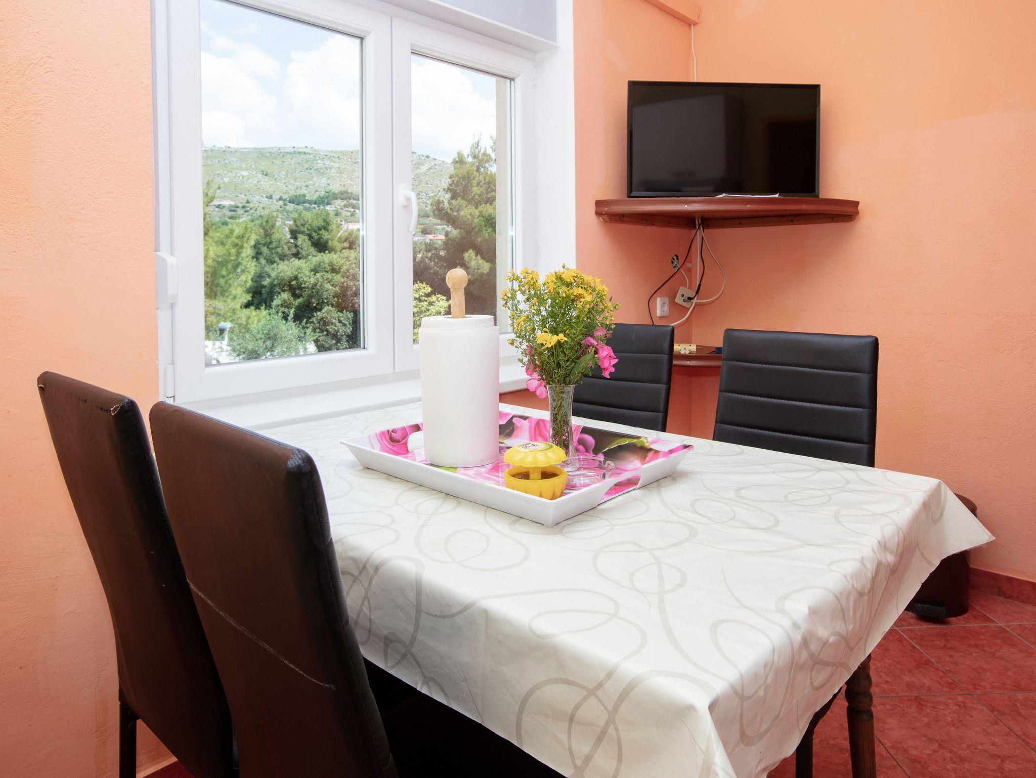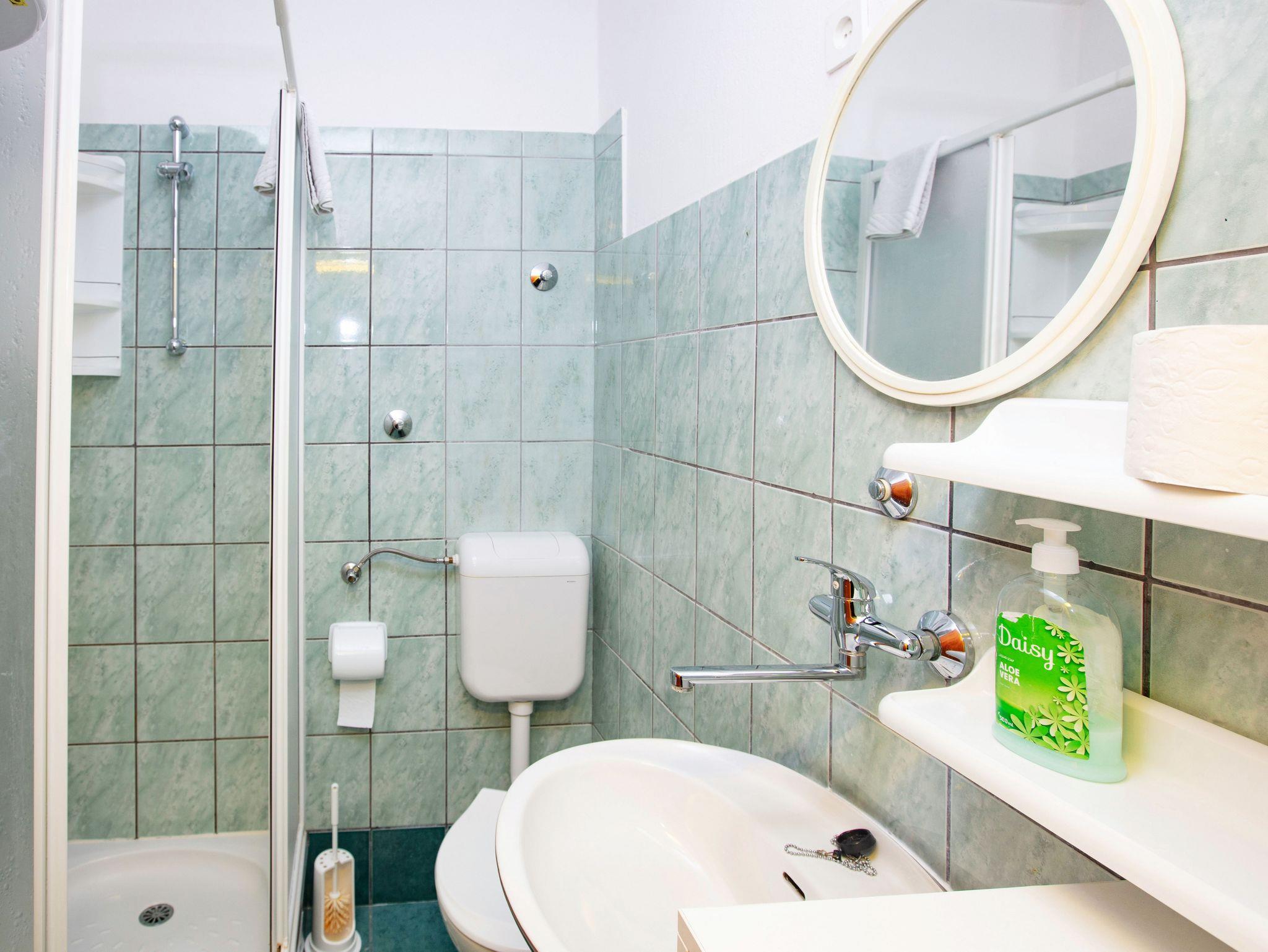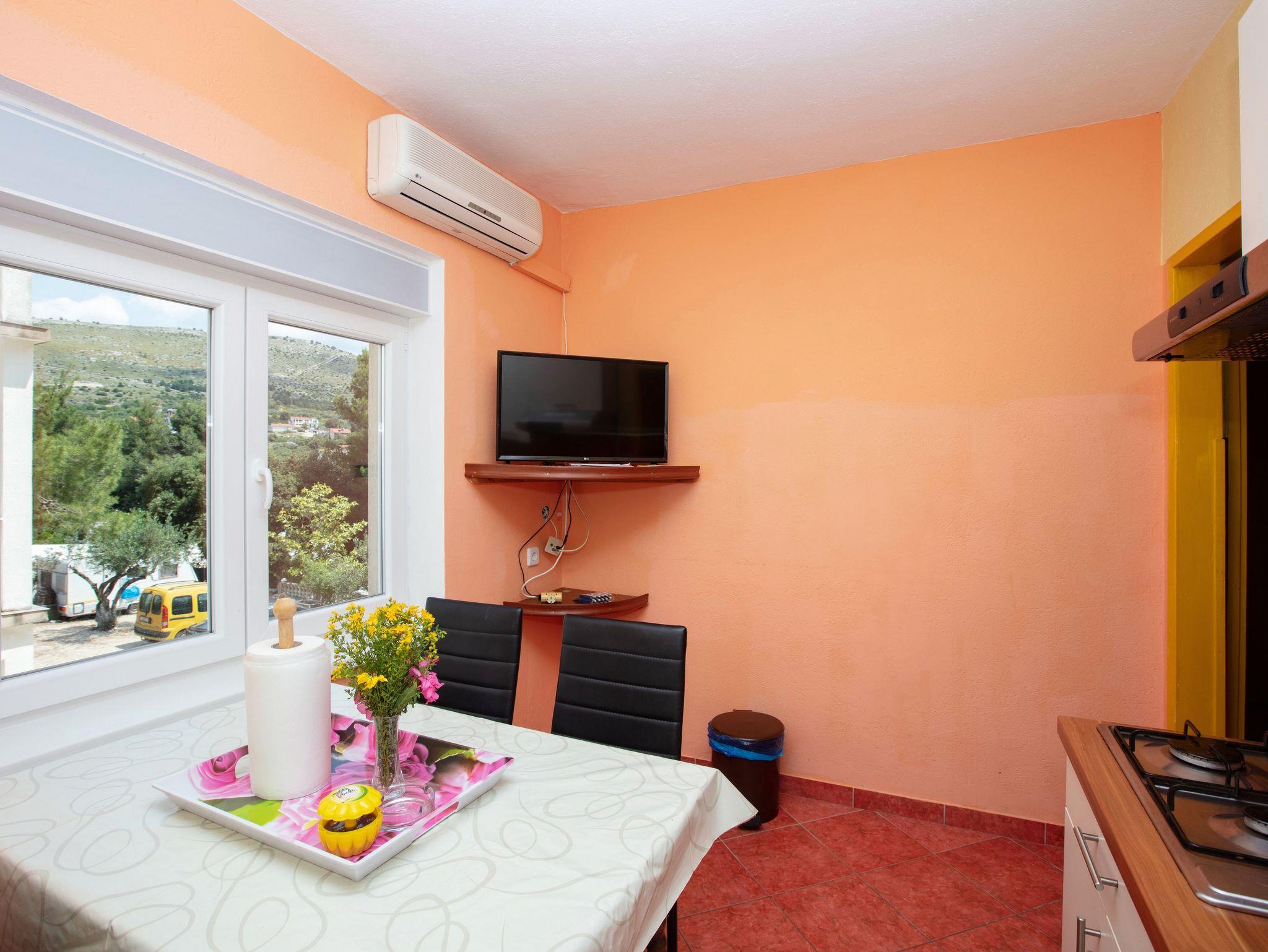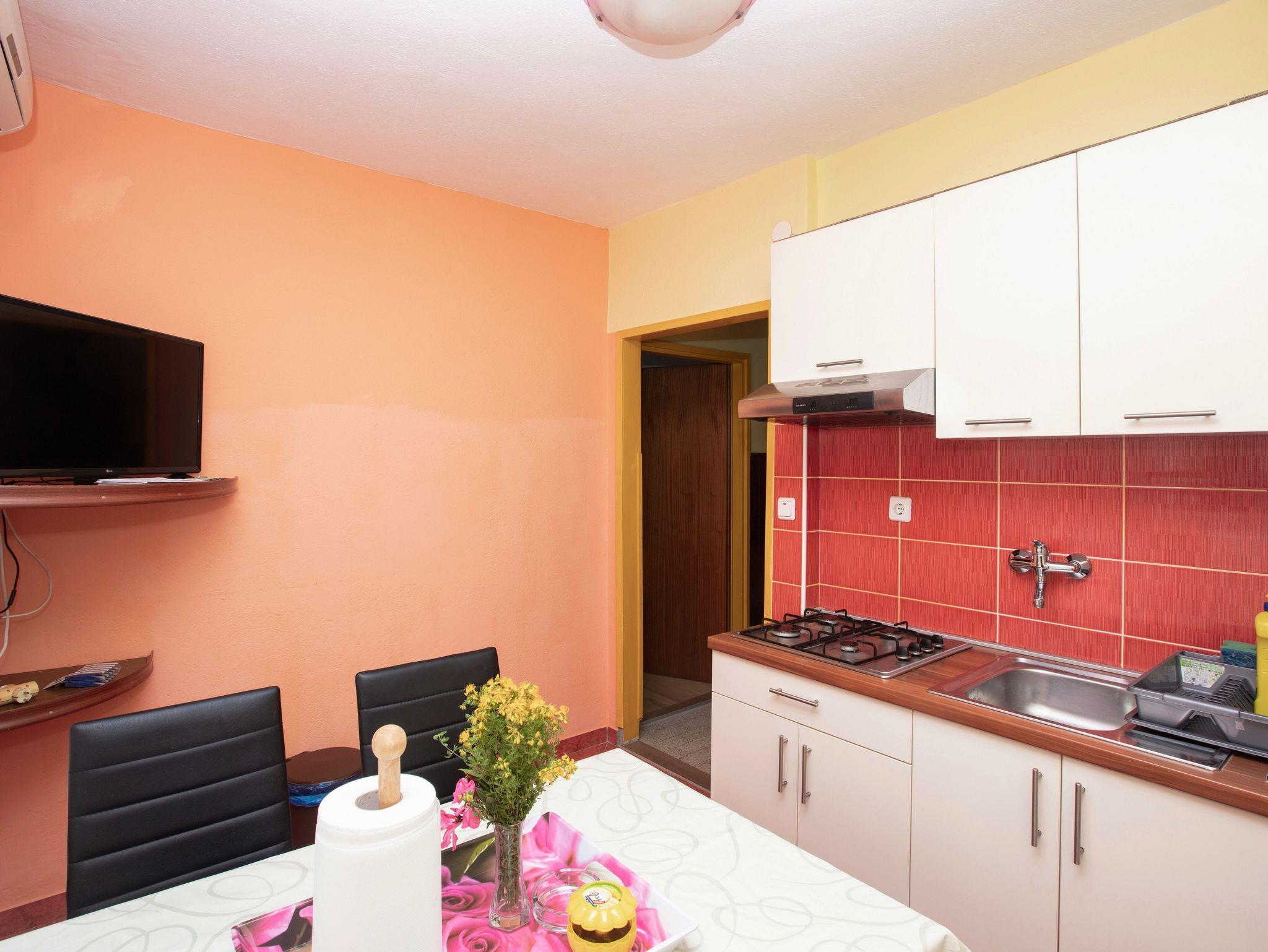Ferienwohnung bietet Platz für 4 Gäste. Die Betten sind in Schlafzimmern, die es 2 gibt, innerhalb einer Gesamtfläche von 39m2, angeordnet. Die Gäste haben eine eigene Terrasse zur Verfügung, auf der sie in warmen Sommernächten genießen können. Das Apartment bietet Meerblick. Es ist erlaubt, Speisen auf dem Gemeinschafts-Grill vorzubereiten. IM PREIS INBEGRIFFEN: Kurtaxe, Endreinigung, Klimatisierung, Parkplatz, Internet, Wäschewaschen, Bootsanlegeplatz, Kinderbett, Bügeleisen, Bügelbrett, Föhn, tragbarer Grill. VERBINDLICHE ZUSÄTZLICHE KOSTEN: Aufzahlung für Kurzaufenthalte (prozentualer Zuschlag pro Nächtigungsanzahl: 30% - 1, 20% - 2, 10% - 3). UNVERBINDLICHE ZUSÄTZLICHE KOSTEN: Zusatzbett (8,00 € pro Nacht). Die Verfügbarkeit zusätzlicher Dienstleistungen in Ihrem reservierten Termin und die Preise derselben (falls nicht aufgeführt) müssen im Voraus überprüft werden. Zusätzliche Dienstleistungen die in der Zahlungsaufforderung nicht aufgeführt sind werden direkt beim Vermieter bezahlt, angenommen der Gast nutzt auch diese. Ermäßigung auf den Grundpreis: Gratistag 14=13 (bei einem Aufenthalt von 14 Tagen oder mehr erhalten Sie einen Gratistag für den Aufenthalt bis 31.12.26).