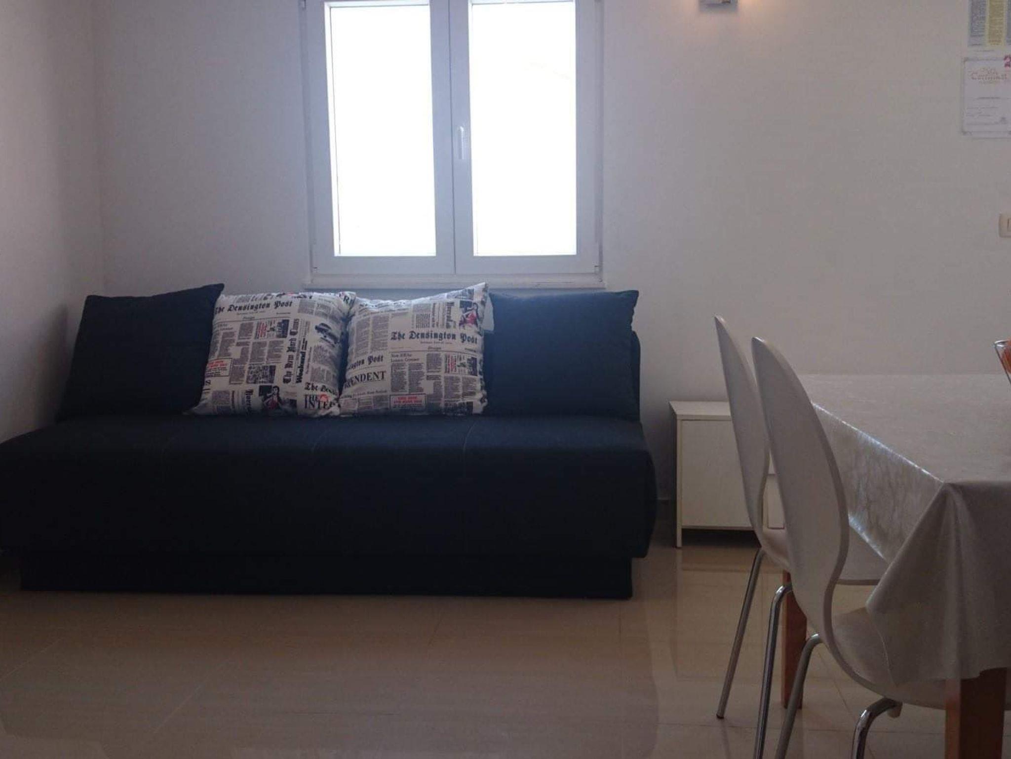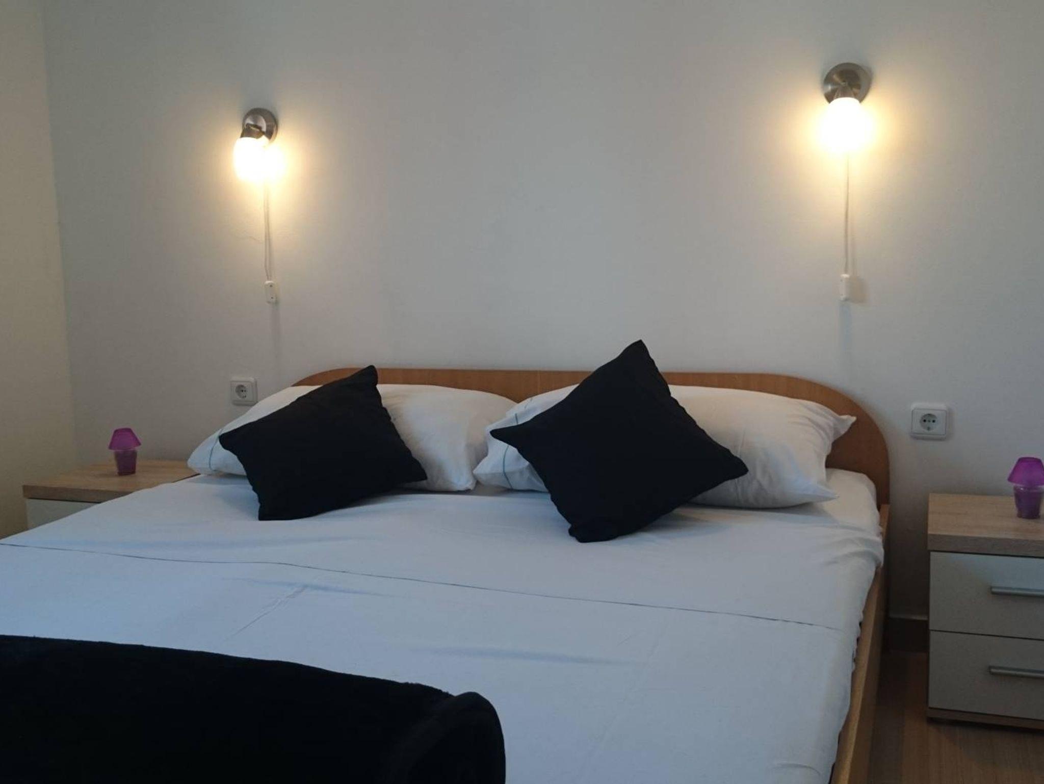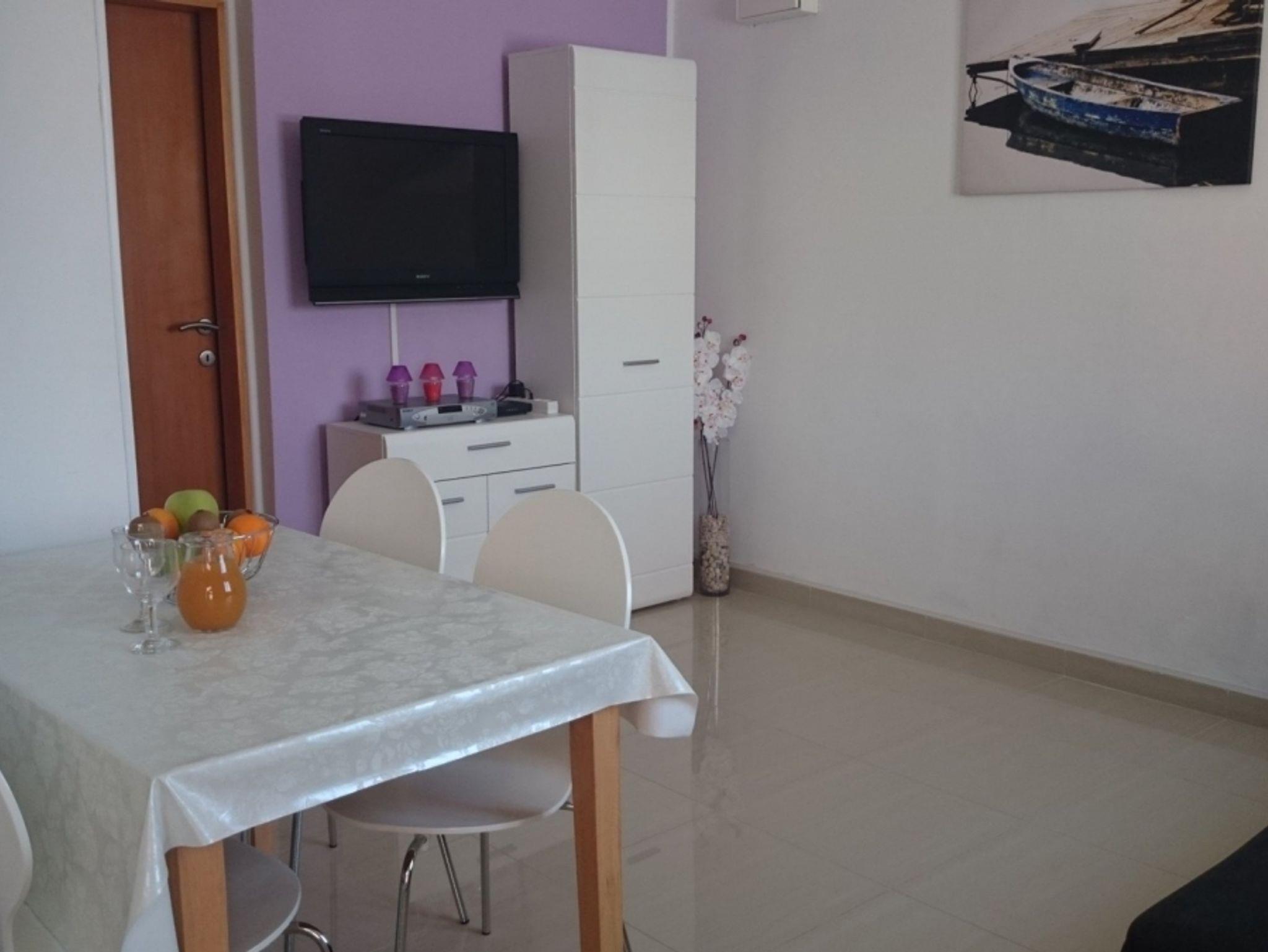 Ferienwohnung bietet Platz für 8 Gäste. Die Betten sind in Schlafzimmern, die es 3 gibt, und in Wohnzimmer, innerhalb einer Gesamtfläche von 76m2, angeordnet. Die Gäste haben eine eigene Terrasse zur Verfügung, auf der sie in warmen Sommernächten genießen können. Das Apartment bietet Meerblick. Es ist erlaubt, Speisen auf dem Gemeinschafts-Grill vorzubereiten. IM PREIS INBEGRIFFEN: Kurtaxe, Endreinigung, Klimatisierung, Parkplatz, Internet, Bootsanlegeplatz, Bügeleisen, Bügelbrett, Föhn, tragbarer Grill, Sonnenschirm, Liegestühle. VERBINDLICHE ZUSÄTZLICHE KOSTEN: Aufzahlung für Kurzaufenthalte (prozentualer Zuschlag pro Nächtigungsanzahl: 30% - 1, 20% - 2, 10% - 3). Die Verfügbarkeit zusätzlicher Dienstleistungen in Ihrem reservierten Termin und die Preise derselben (falls nicht aufgeführt) müssen im Voraus überprüft werden. Zusätzliche Dienstleistungen die in der Zahlungsaufforderung nicht aufgeführt sind werden direkt beim Vermieter bezahlt, angenommen der Gast nutzt auch diese.