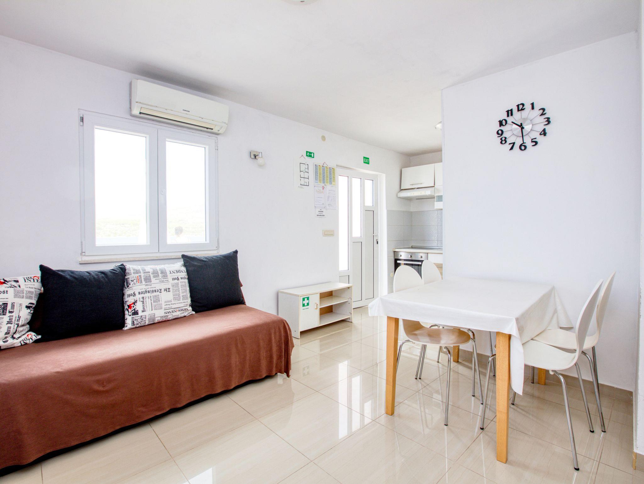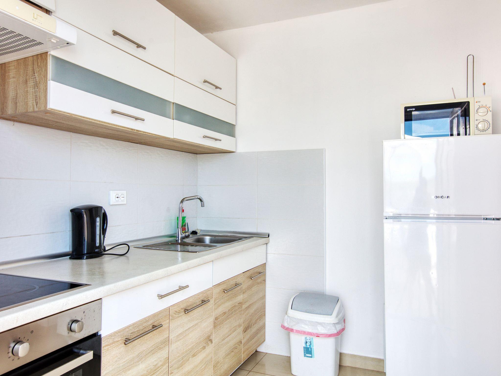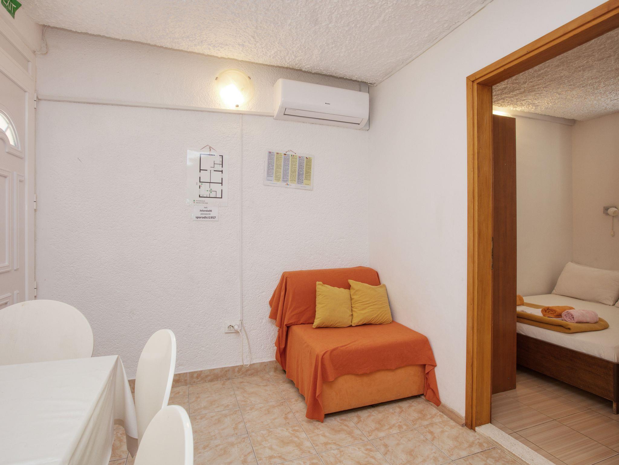 Ferienwohnung bietet Platz für 8 Gäste. Die Betten sind in Schlafzimmern, die es 3 gibt, und in Wohnzimmer, innerhalb einer Gesamtfläche von 76m2, angeordnet. Die Gäste haben eine eigene Terrasse zur Verfügung, auf der sie in warmen Sommernächten genießen können. Das Apartment bietet Meerblick. Es ist erlaubt, Speisen auf dem Gemeinschafts-Grill vorzubereiten. IM PREIS INBEGRIFFEN: Kurtaxe, Endreinigung, Klimatisierung, Parkplatz, Internet, Bootsanlegeplatz, Bügeleisen, Bügelbrett, Föhn, tragbarer Grill, Sonnenschirm, Liegestühle. VERBINDLICHE ZUSÄTZLICHE KOSTEN: Aufzahlung für Kurzaufenthalte (prozentualer Zuschlag pro Nächtigungsanzahl: 30% - 1, 20% - 2, 10% - 3). Die Verfügbarkeit zusätzlicher Dienstleistungen in Ihrem reservierten Termin und die Preise derselben (falls nicht aufgeführt) müssen im Voraus überprüft werden. Zusätzliche Dienstleistungen die in der Zahlungsaufforderung nicht aufgeführt sind werden direkt beim Vermieter bezahlt, angenommen der Gast nutzt auch diese.