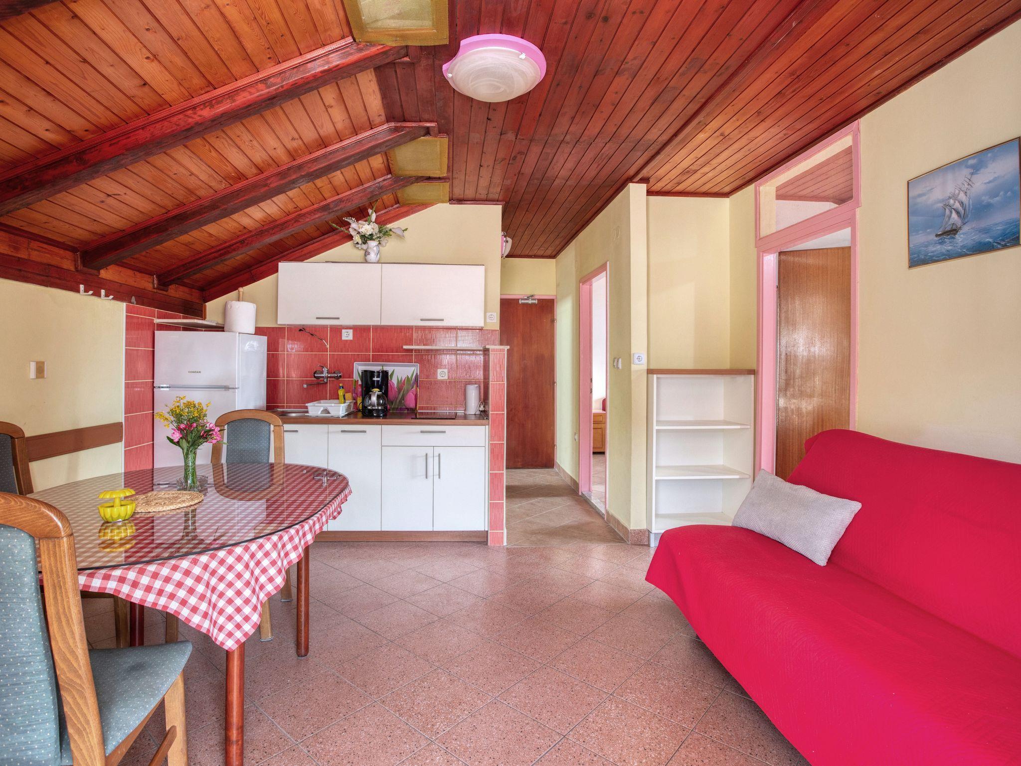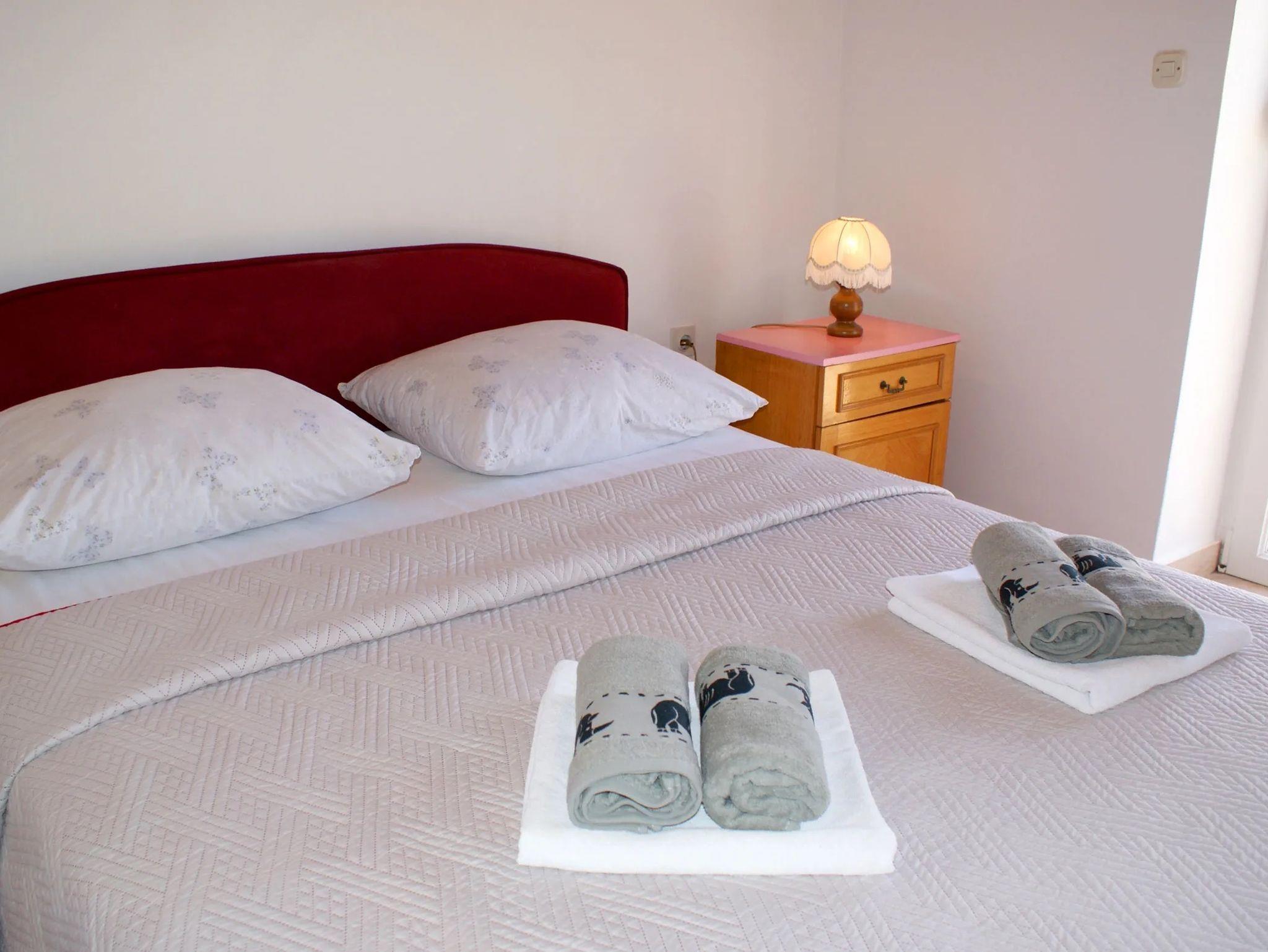 Ferienwohnung bietet Platz für 4 Gäste. Die Betten sind in Schlafzimmern, die es 2 gibt, innerhalb einer Gesamtfläche von 46m2, angeordnet. Die Gäste haben eine eigene Terrasse zur Verfügung, auf der sie in warmen Sommernächten genießen können. Das Apartment bietet Meerblick. Es ist erlaubt, Speisen auf dem Gemeinschafts-Grill vorzubereiten. IM PREIS INBEGRIFFEN: Kurtaxe, Endreinigung, Klimatisierung, Parkplatz, Internet, Wäschewaschen, Bootsanlegeplatz, Kinderbett, Bügeleisen, Bügelbrett, Föhn, tragbarer Grill. VERBINDLICHE ZUSÄTZLICHE KOSTEN: Aufzahlung für Kurzaufenthalte (prozentualer Zuschlag pro Nächtigungsanzahl: 30% - 1, 20% - 2, 10% - 3). UNVERBINDLICHE ZUSÄTZLICHE KOSTEN: Zusatzbett (8,00 € pro Nacht). Die Verfügbarkeit zusätzlicher Dienstleistungen in Ihrem reservierten Termin und die Preise derselben (falls nicht aufgeführt) müssen im Voraus überprüft werden. Zusätzliche Dienstleistungen die in der Zahlungsaufforderung nicht aufgeführt sind werden direkt beim Vermieter bezahlt, angenommen der Gast nutzt auch diese. Ermäßigung auf den Grundpreis: Gratistag 14=13 (bei einem Aufenthalt von 14 Tagen oder mehr erhalten Sie einen Gratistag für den Aufenthalt bis 31.12.26).