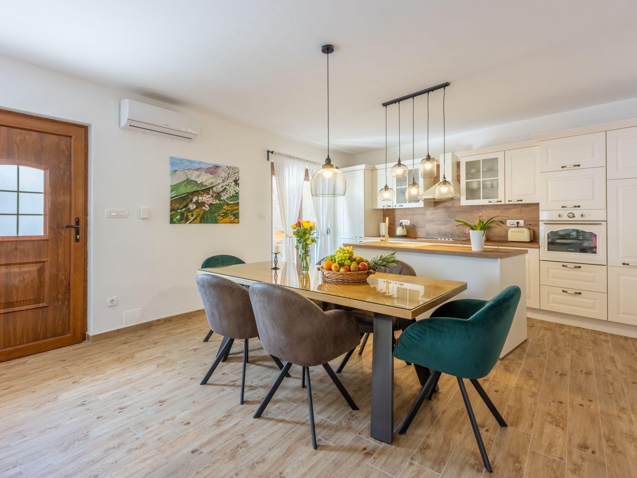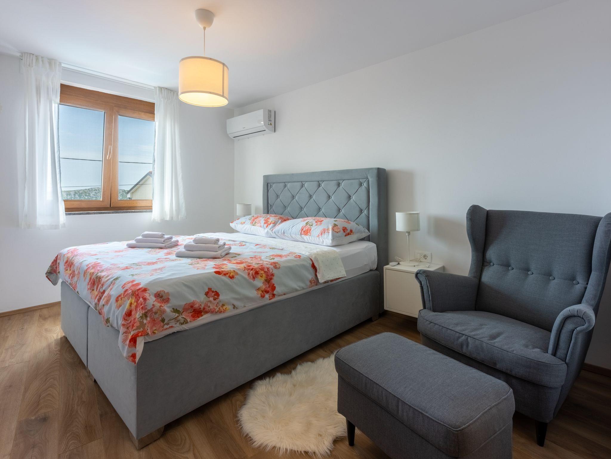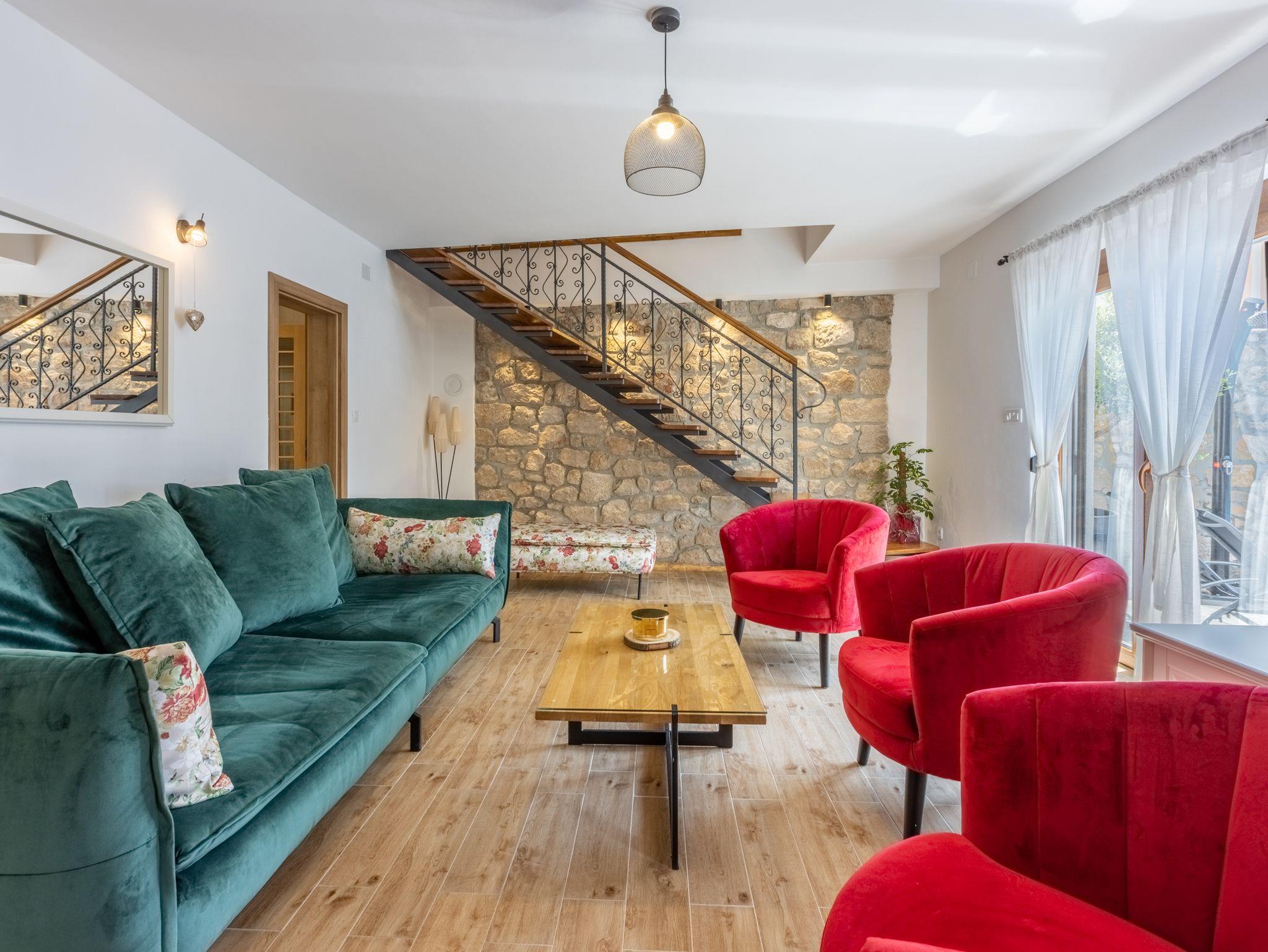 Haus bietet Platz für 6 Gäste. Die Betten sind in Schlafzimmern, die es 3 gibt, innerhalb einer Gesamtfläche von 127m2, angeordnet. Die Gäste haben eine eigene Terrasse zur Verfügung, auf der sie in warmen Sommernächten genießen können. Das Haus bietet Meerblick. Für vollen Genuss und Entspannung gibt es einen privaten Grill für Gäste dieser Unterkunft. Während ihres Aufenthalts können sich Gäste im privaten Schwimmbad entspannen. In der gebuchten Unterkunftseinheit zahlt man am Ort ein Depositum ( der Preis ist an der Internetseite angeführt ). IM PREIS INBEGRIFFEN: Kurtaxe, Endreinigung, Klimatisierung, Zentralheizung, Pool, Parkplatz, Internet, Föhn. VERBINDLICHE ZUSÄTZLICHE KOSTEN: Kaution (200,00 € Einmalzahlung), Aufzahlung für Kurzaufenthalte (prozentualer Zuschlag pro Nächtigungsanzahl: 30% - 1, 20% - 2, 10% - 3). Die Verfügbarkeit zusätzlicher Dienstleistungen in Ihrem reservierten Termin und die Preise derselben (falls nicht aufgeführt) müssen im Voraus überprüft werden. Zusätzliche Dienstleistungen die in der Zahlungsaufforderung nicht aufgeführt sind werden direkt beim Vermieter bezahlt, angenommen der Gast nutzt auch diese. Ermäßigung auf den Grundpreis: Gratistag 14=13 (bei einem Aufenthalt von 14 Tagen oder mehr erhalten Sie einen Gratistag für den Aufenthalt bis 31.12.26).