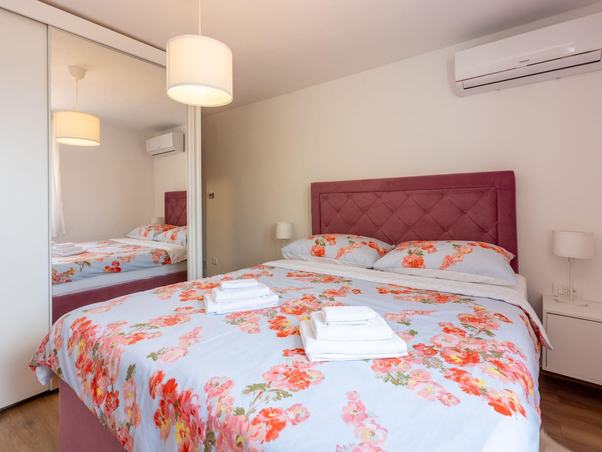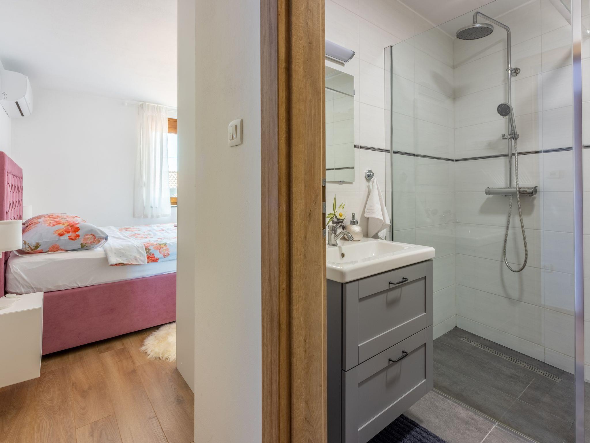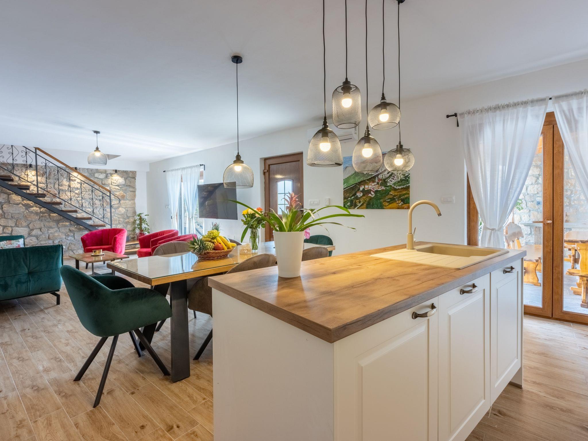 Haus bietet Platz für 6 Gäste. Die Betten sind in Schlafzimmern, die es 3 gibt, innerhalb einer Gesamtfläche von 127m2, angeordnet. Die Gäste haben eine eigene Terrasse zur Verfügung, auf der sie in warmen Sommernächten genießen können. Das Haus bietet Meerblick. Für vollen Genuss und Entspannung gibt es einen privaten Grill für Gäste dieser Unterkunft. Während ihres Aufenthalts können sich Gäste im privaten Schwimmbad entspannen. In der gebuchten Unterkunftseinheit zahlt man am Ort ein Depositum ( der Preis ist an der Internetseite angeführt ). IM PREIS INBEGRIFFEN: Kurtaxe, Endreinigung, Klimatisierung, Zentralheizung, Pool, Parkplatz, Internet, Föhn. VERBINDLICHE ZUSÄTZLICHE KOSTEN: Kaution (200,00 € Einmalzahlung), Aufzahlung für Kurzaufenthalte (prozentualer Zuschlag pro Nächtigungsanzahl: 30% - 1, 20% - 2, 10% - 3). Die Verfügbarkeit zusätzlicher Dienstleistungen in Ihrem reservierten Termin und die Preise derselben (falls nicht aufgeführt) müssen im Voraus überprüft werden. Zusätzliche Dienstleistungen die in der Zahlungsaufforderung nicht aufgeführt sind werden direkt beim Vermieter bezahlt, angenommen der Gast nutzt auch diese. Ermäßigung auf den Grundpreis: Gratistag 14=13 (bei einem Aufenthalt von 14 Tagen oder mehr erhalten Sie einen Gratistag für den Aufenthalt bis 31.12.26).
